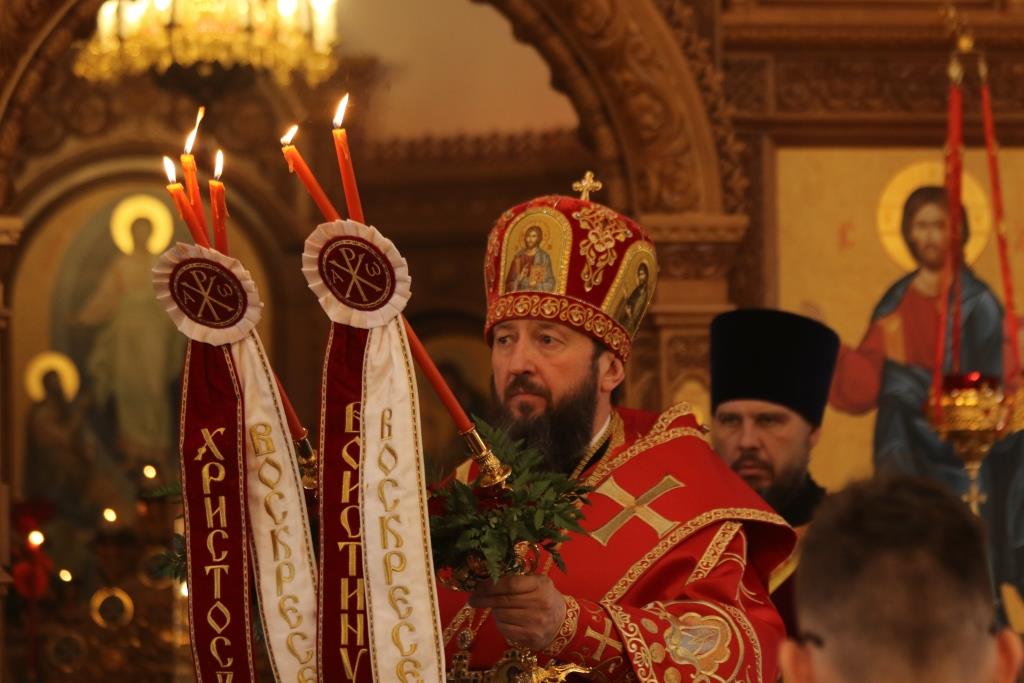 После окончания вечерни благочинный Усть-Каменогорского церковного округа иерей Алексий Анищенко огласил Пасхальное послание епископа Усть-Каменогорского и Семипалатинского Амфилохия, в котором Архипастырь отметил: «Для каждого верующего Воскресение Христово является центральным моментом всей мировой истории и, вместе с тем, величайшим личным духовным торжеством, поскольку именно этим евангельским событием преодолена пропасть, отделявшая людей от Бога, и человек, отпавший некогда от своего Небесного Отца, становится причастником Божественной жизни. И мы, прежде ветхие, поражённые грехами, бывшие рабами своих страстей, через Воскресение Спасителя действительно становимся народом Христа, родом избранным, царственным священством, людьми, взятыми в удел, дабы возвещать совершенства Призвавшего нас из тьмы в чудный Свой свет (ср. 1 Пет.2:9)».