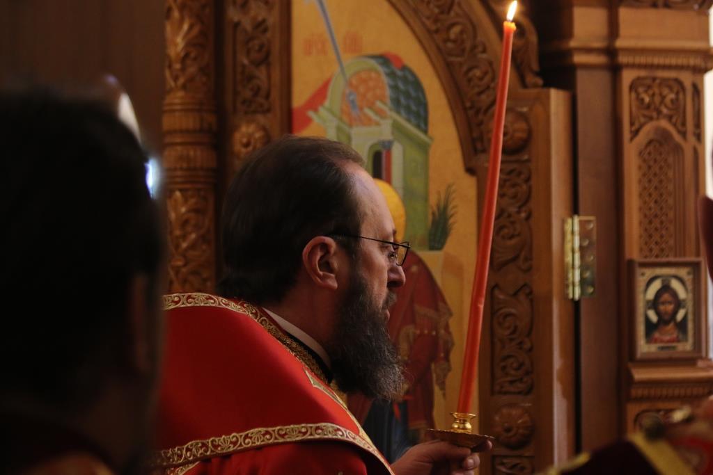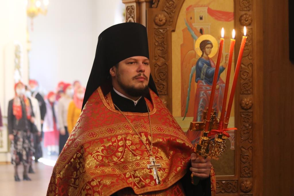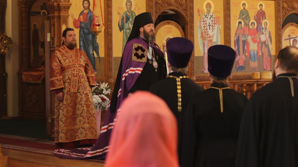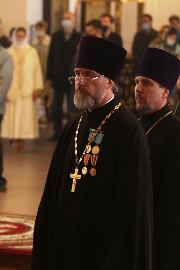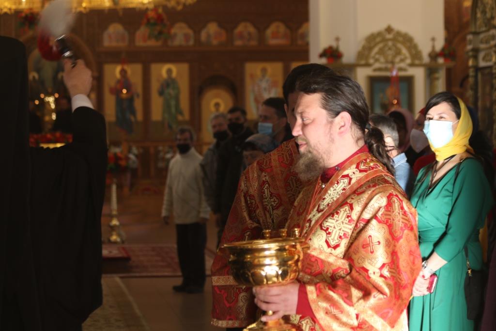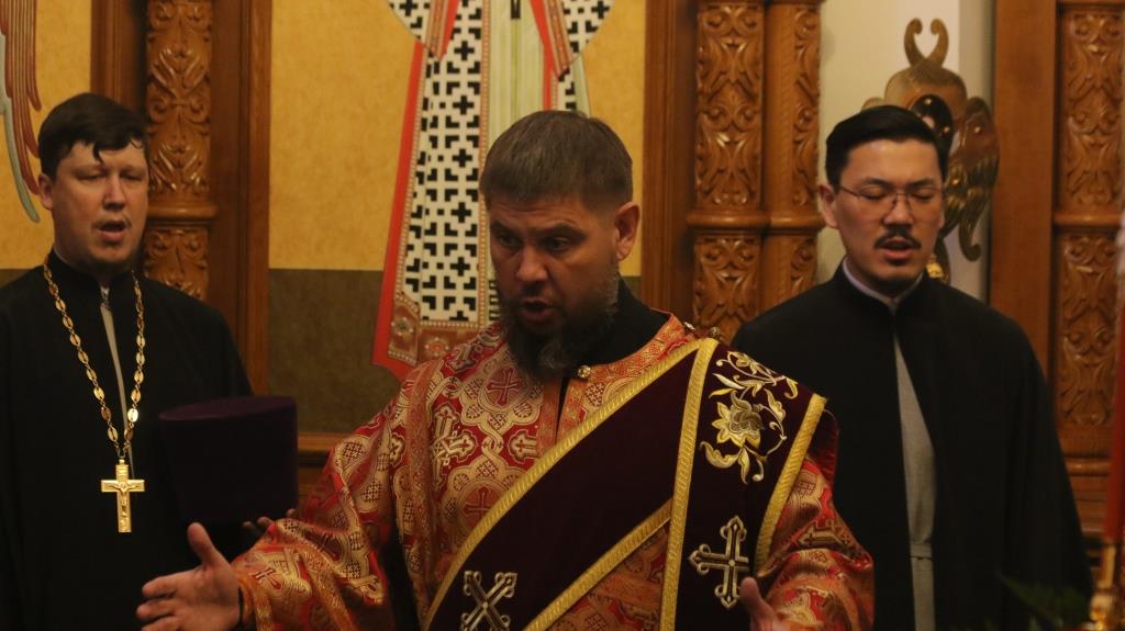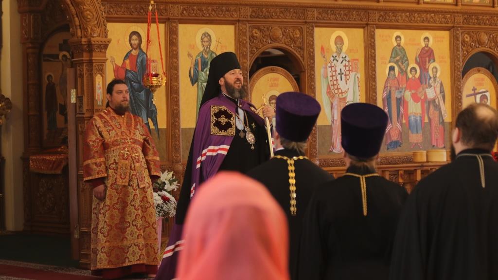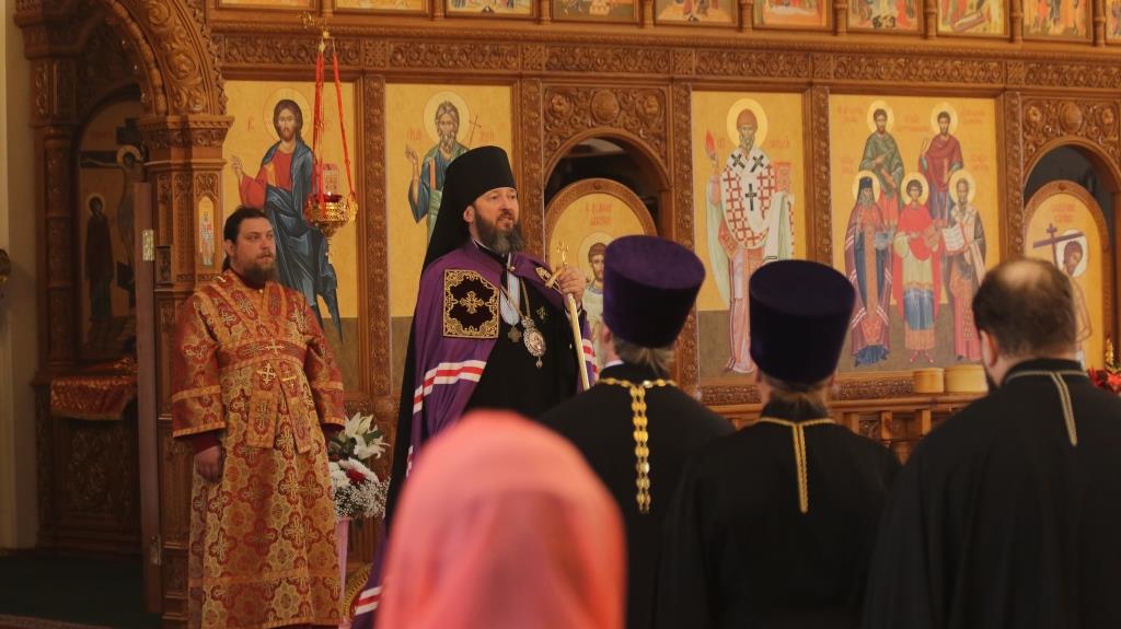 На вечернем богослужении молились сотрудники епархиального управления, братия Свято-Троицкой мужской обители города Усть-Каменогорска и прихожане кафедрального собора. За богослужением епископ Амфилохий прочитал Евангельское зачало о явлении Воскресшего Христа ученикам (Ин. 20:19-25).