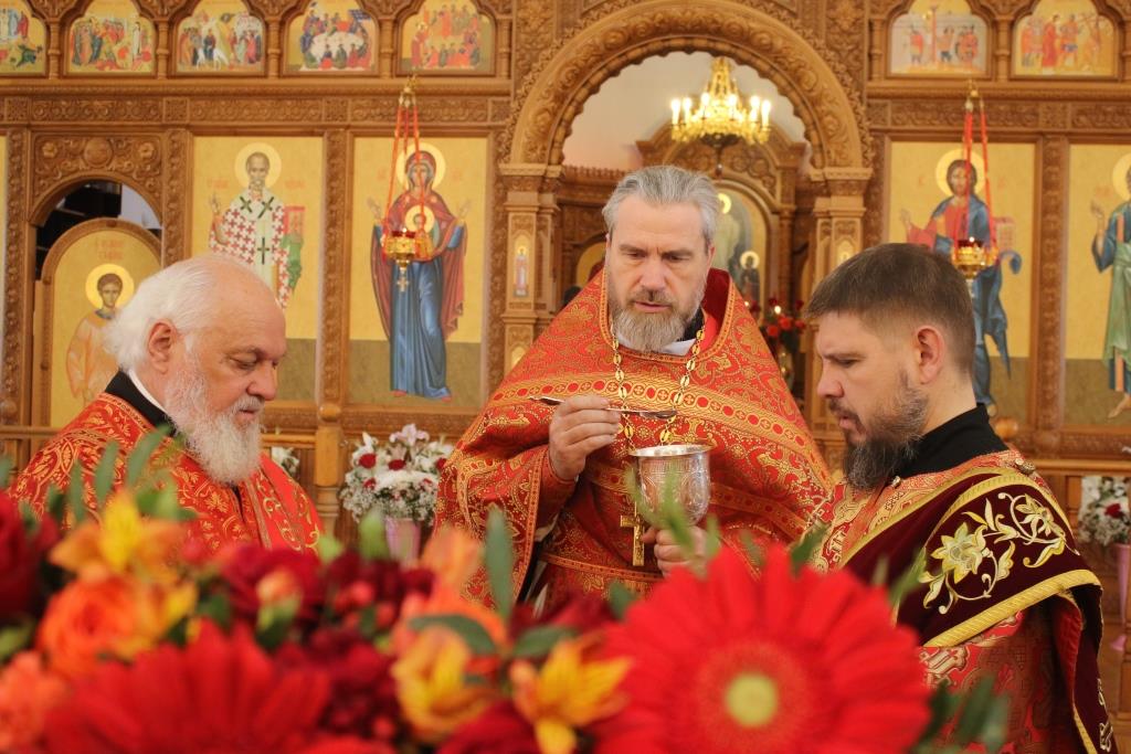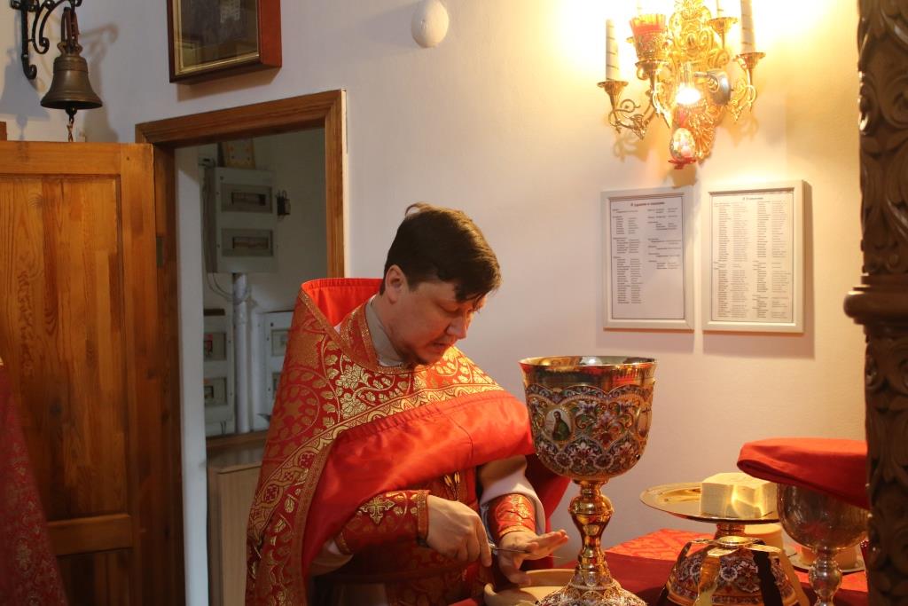 Перед причастием мирян проповедовал иеромонах Агапит (Никонов).