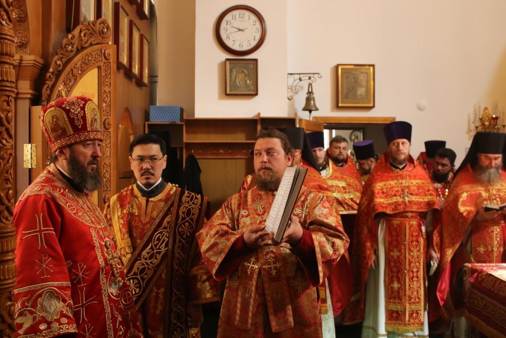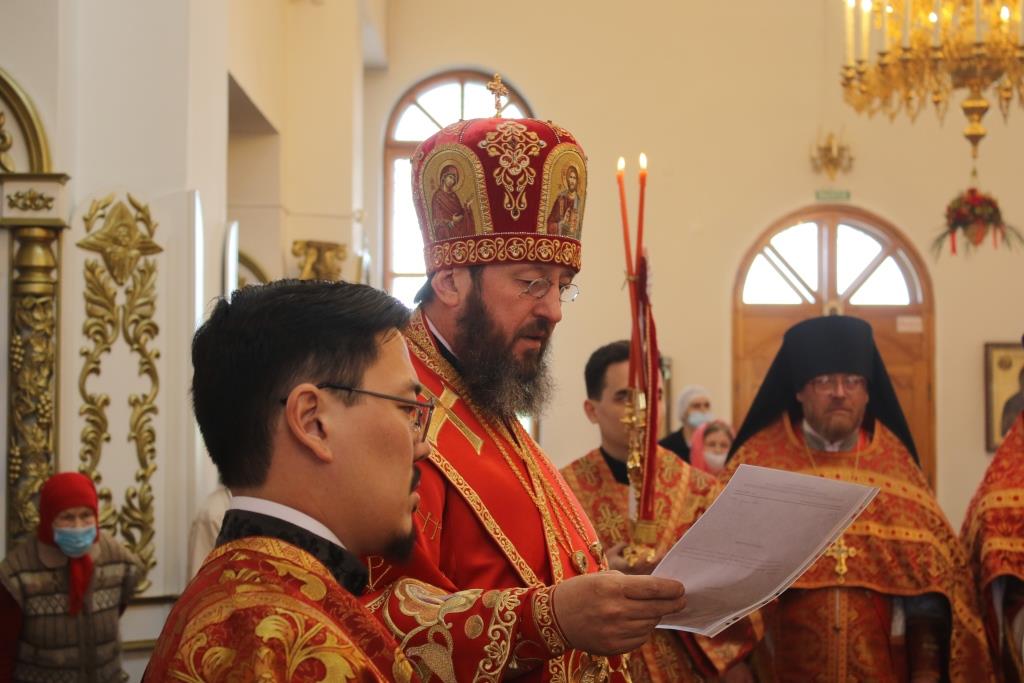 В четверг Светлой седмицы Преосвященнейший епископ Усть-Каменогорский и Семипалатинский Амфилохий совершил Божественную Литургию святителя Иоанна Златоуста пасхальным чином в Свято-Андреевском кафедральном соборе столицы Рудного Алтая. Его Преосвященству сослужили клирики Усть-Каменогорской и Семипалатинской епархии. Диаконский чин возглавил протодиакон Георгий Засыпкин.