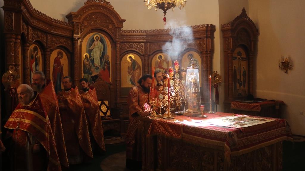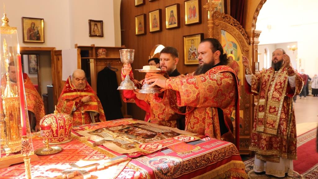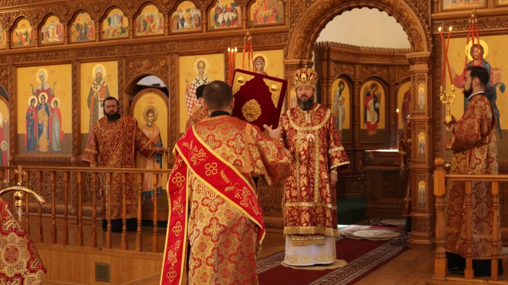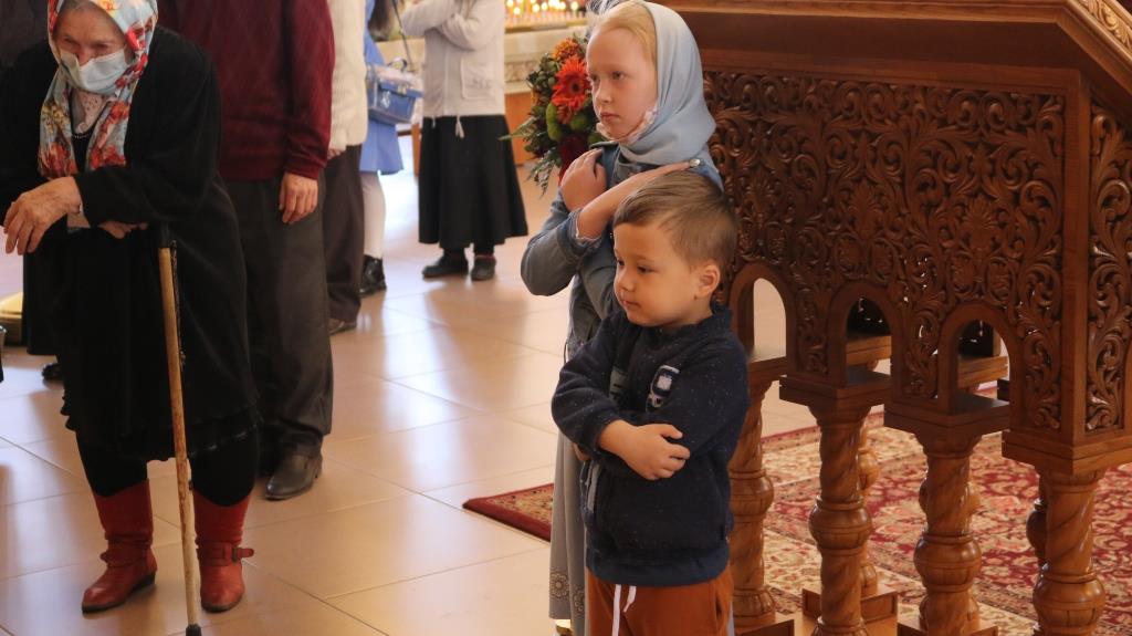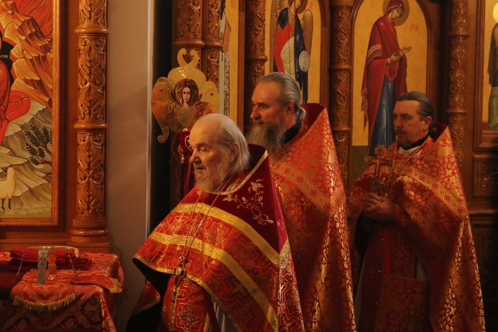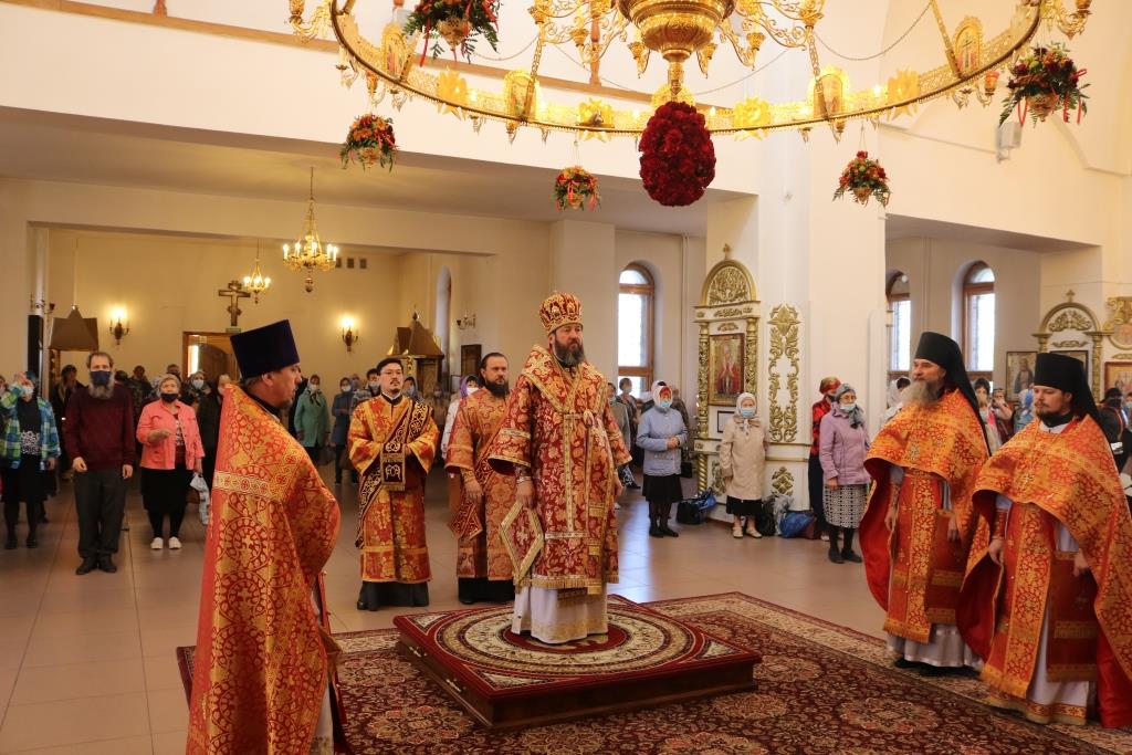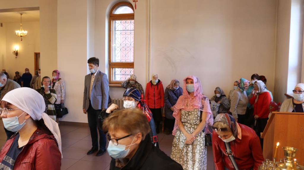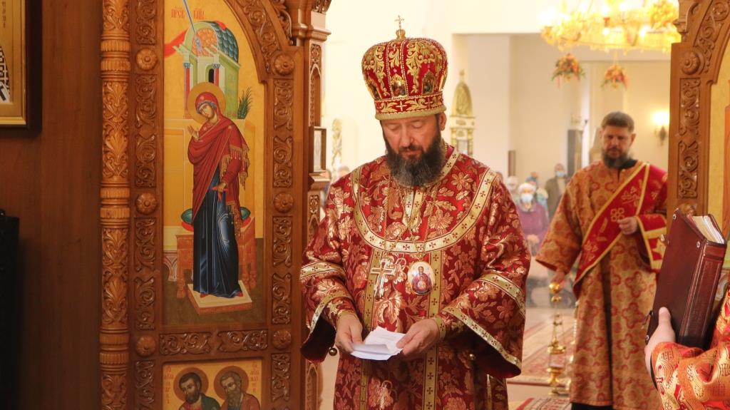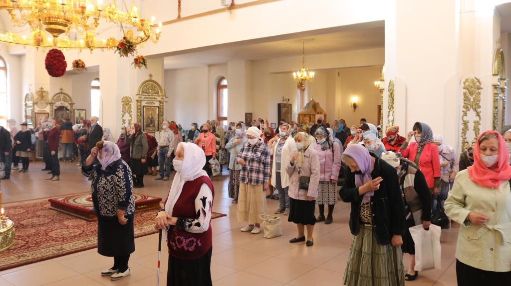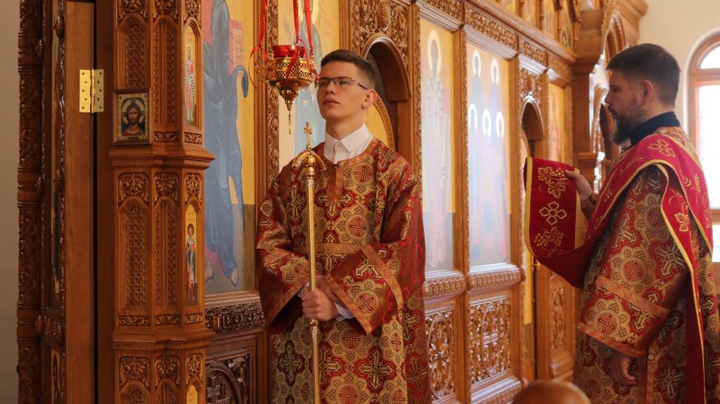 За богослужением молились прихожане Андреевского собора, сотрудники епархиального управления и насельники Свято-Троицкого мужского монастыря города Усть-Каменогорска. Хор под управлением регента Н. Романцовой исполнял песнопения Божественной Литургии. На запричастном стихе проповедовал иеромонах Силуан (Магилев).