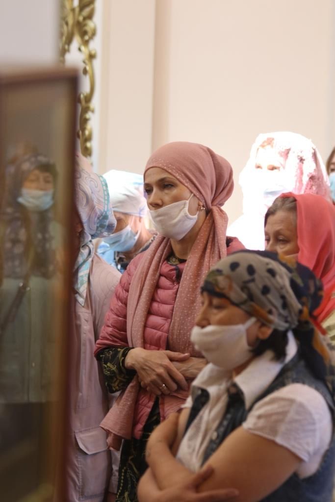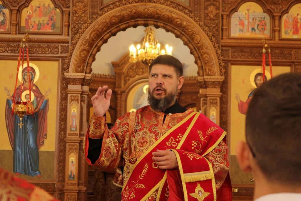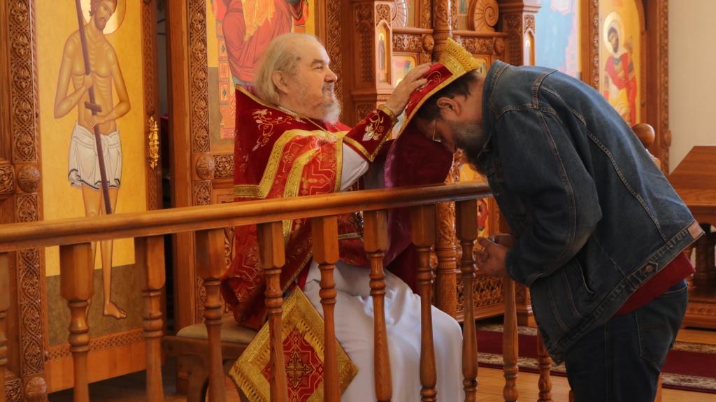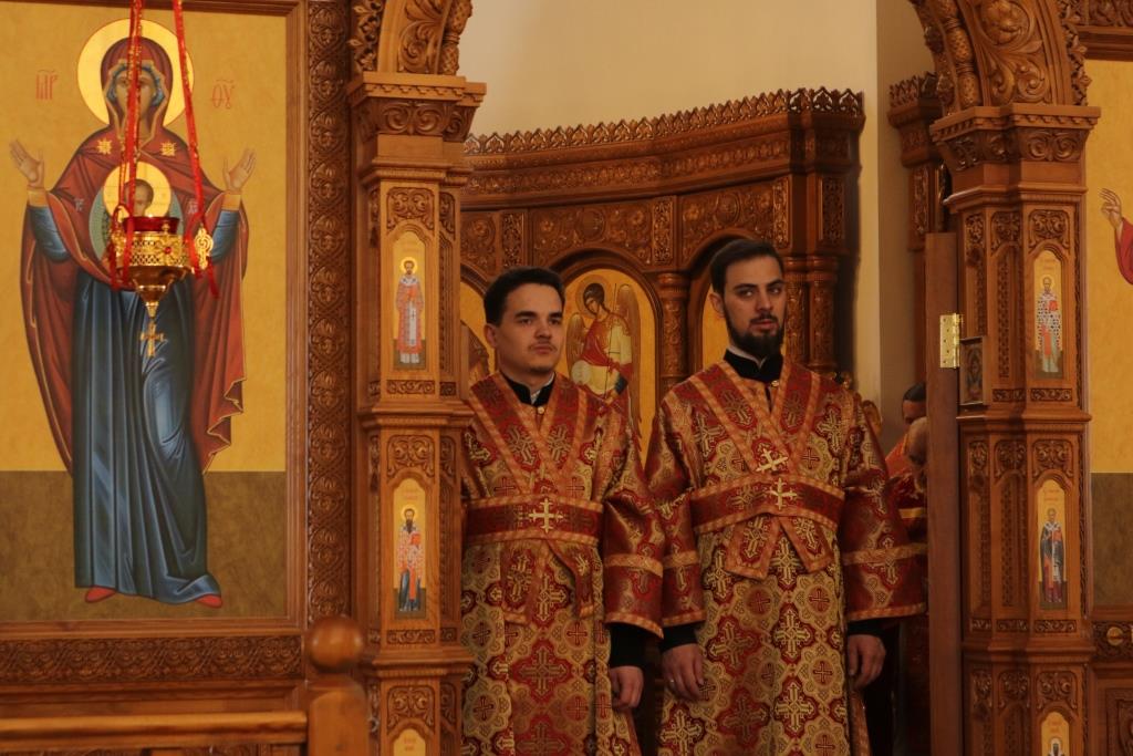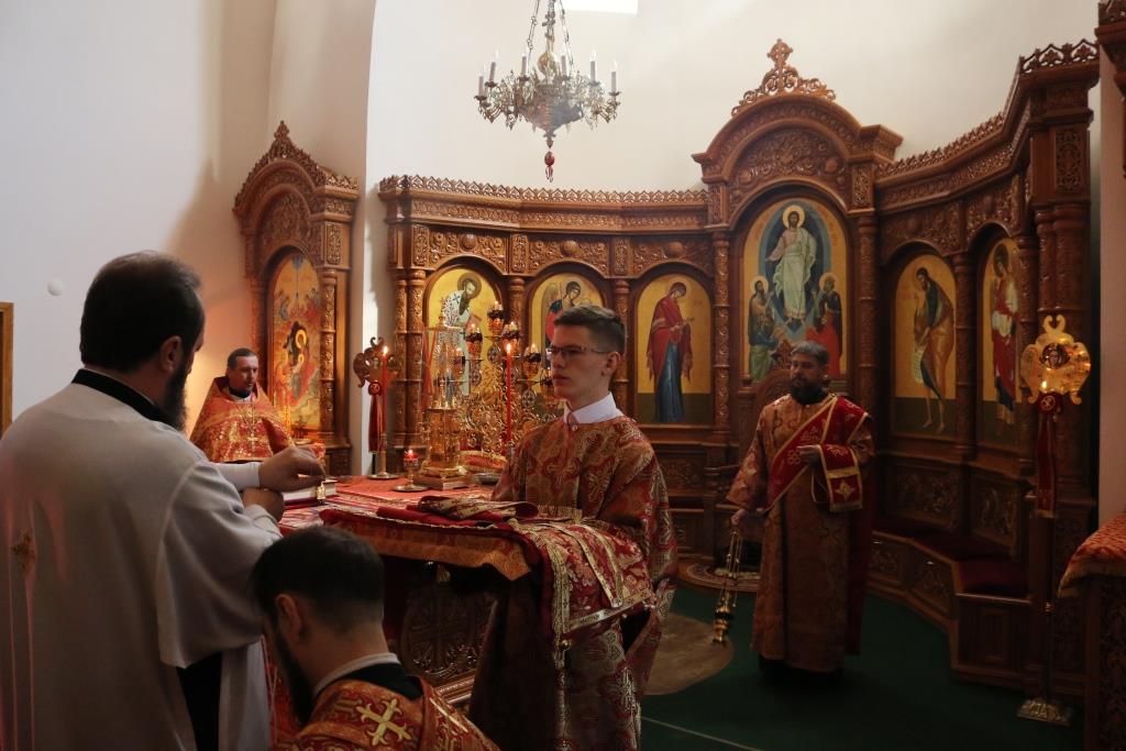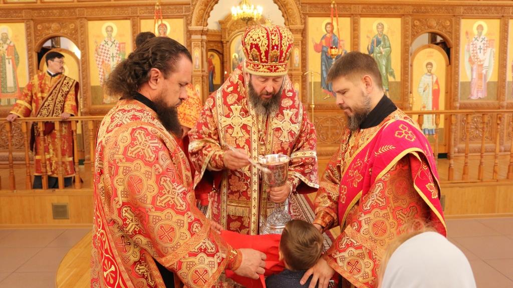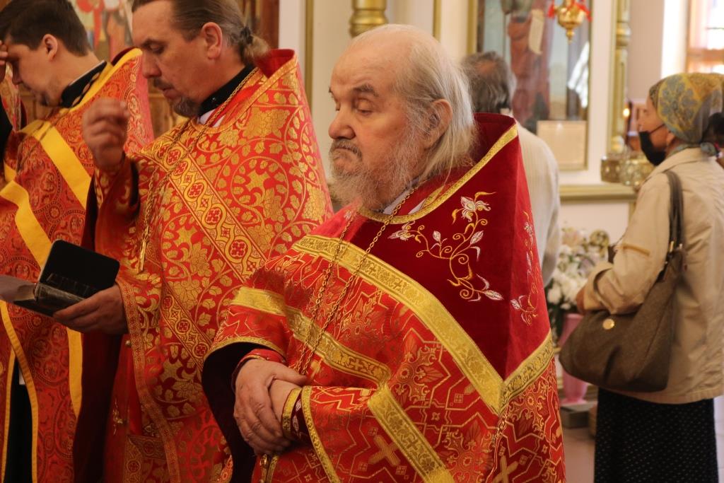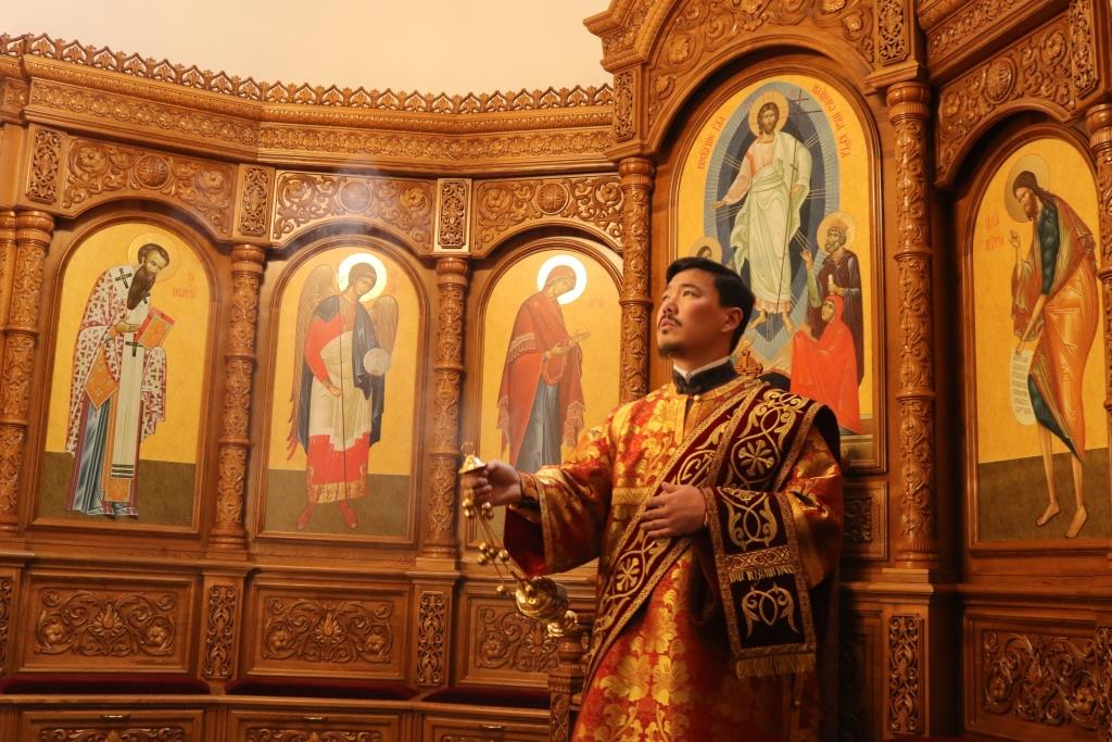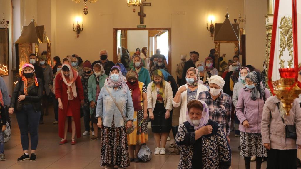За богослужением молились прихожане Андреевского собора, сотрудники епархиального управления и насельники Свято-Троицкого мужского монастыря города Усть-Каменогорска. Хор под управлением регента Н. Романцовой исполнял песнопения Божественной Литургии. На запричастном стихе проповедовал иеромонах Силуан (Магилев).