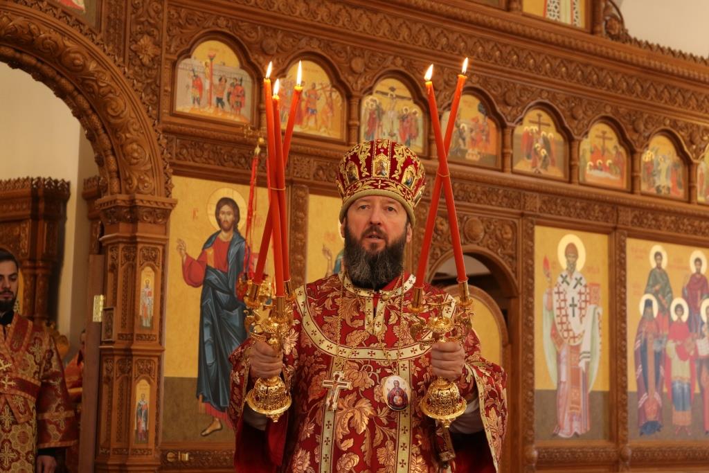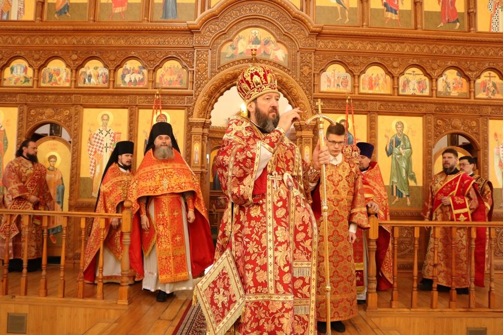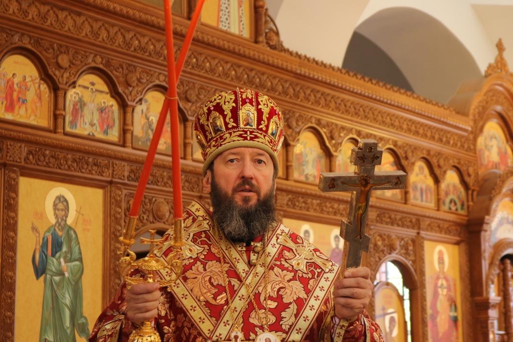 Затем Владыка епископ поздравил собравшихся с праздником Пасхи Господней и обратился к народу Божию с Архипастырским словом.
