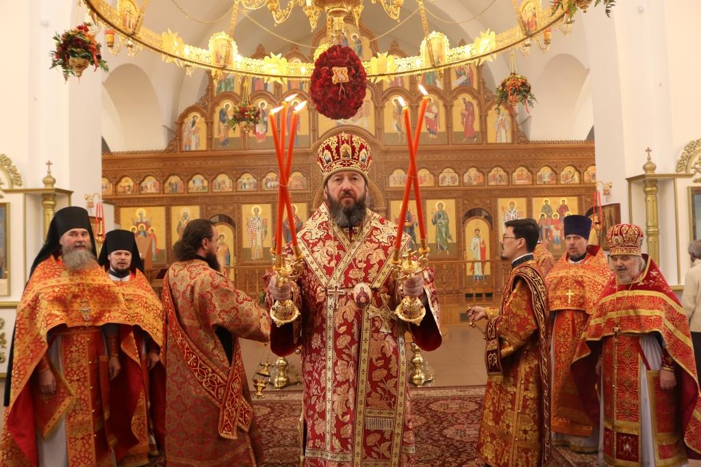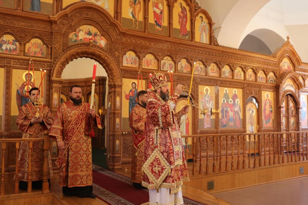 Управляющий Усть-Каменогорской и Семипалатинской епархией Преосвященнейший епископ Амфилохий возглавил служение Божественной Литургии святителя Иоанна Златоуста в главном храме Восточного Казахстана – кафедральном соборе во имя святого апостола Андрея Первозванного города Усть-Каменогорска. Его Преосвященству сослужили: духовник епархии архимандрит Спиридон (Теплухин), ключарь кафедрального собора иеромонах Никодим (Авдеев), клирики собора иерей Алексий Клепиков и иеромонах Силуан (Магилев), секретарь епархии диакон Илия Кван, протодиакон Георгий Засыпкин, протодиакон Андрей Дудник.
