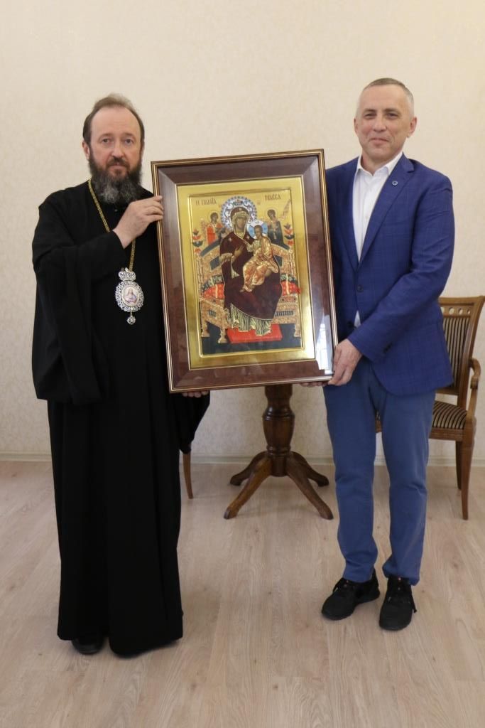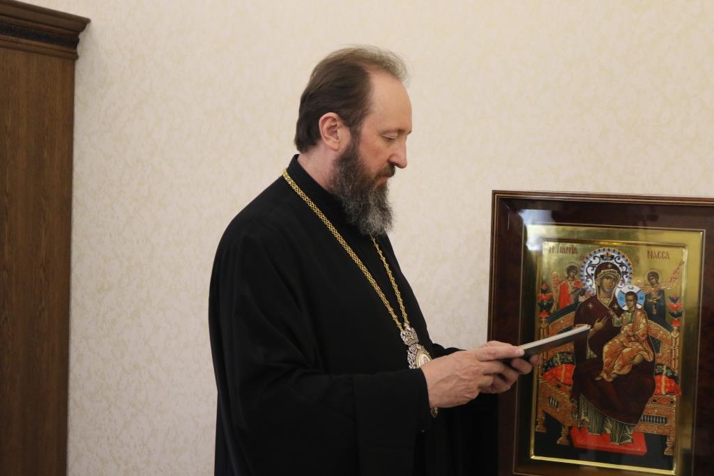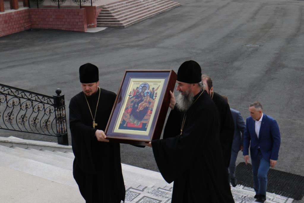 После встречи святого образа была вознесена молитва Пресвятой Богородице. Далее владыка епископ обратился со словами благодарности за принесённый дар, выразив надежду на молитвенное предстательство и заступление Матери Божией ко всем приходящим к этому чудному образу.
