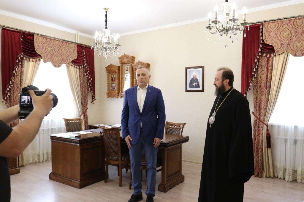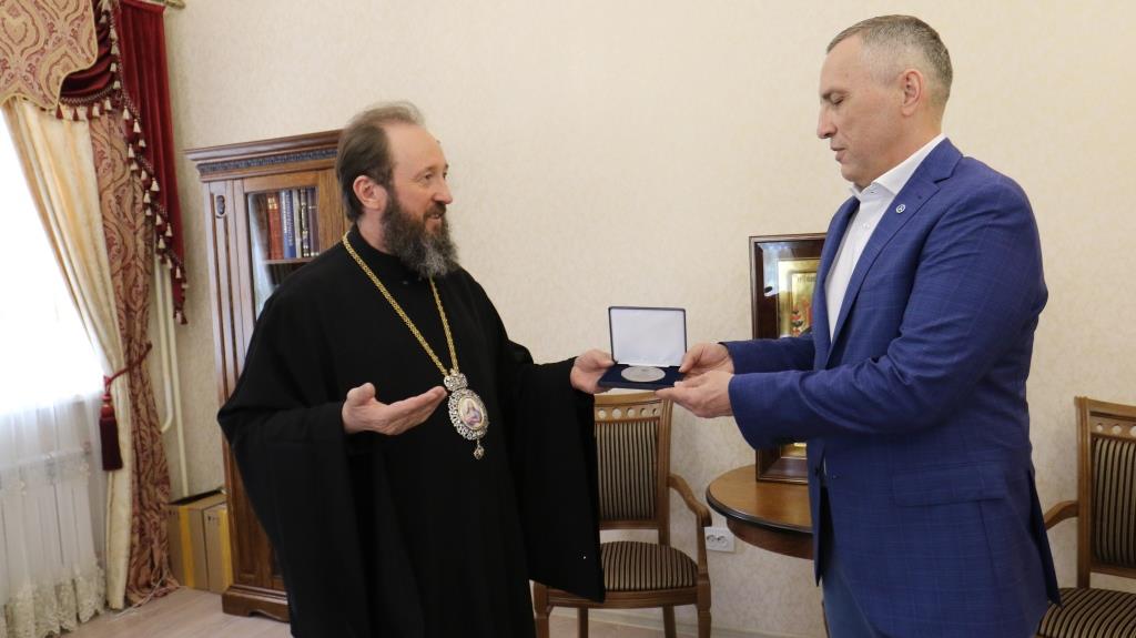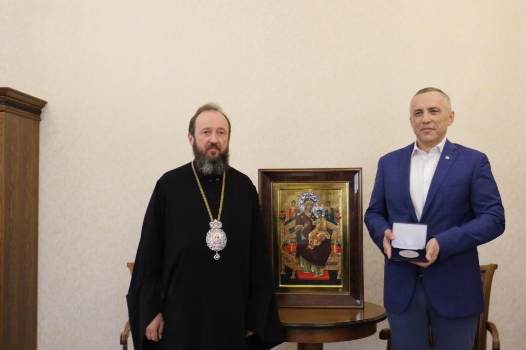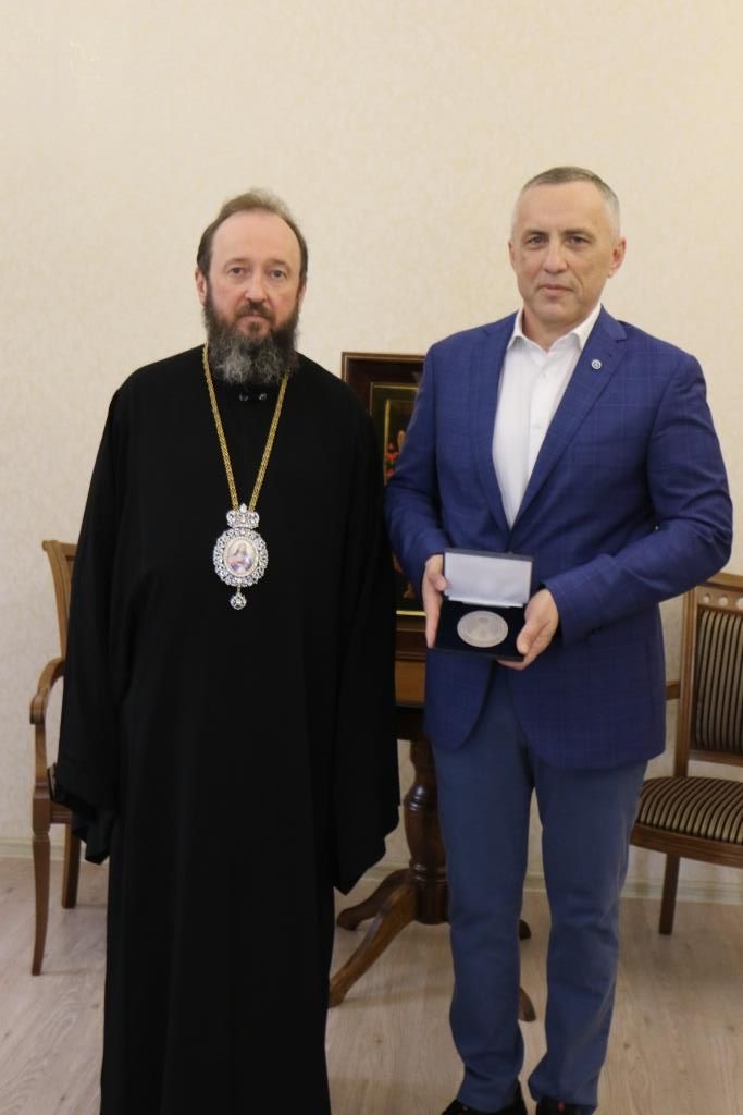 На молитвенную память епископ Амфилохий вручил А.В. Холдину памятную медаль «100-летие мученической кончины сщмч. Александра Дагаева», пожелав благодетелю и его сподвижникам здравия, крепости душевных и телесных сил, помощи Божией в добрых делах и начинаниях.