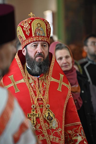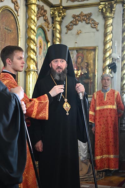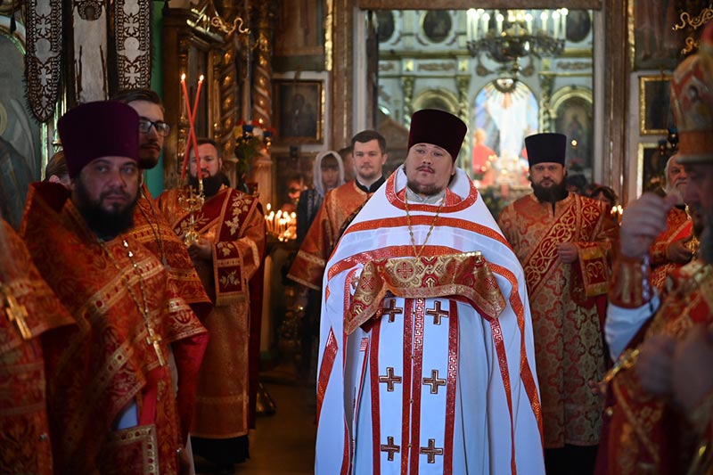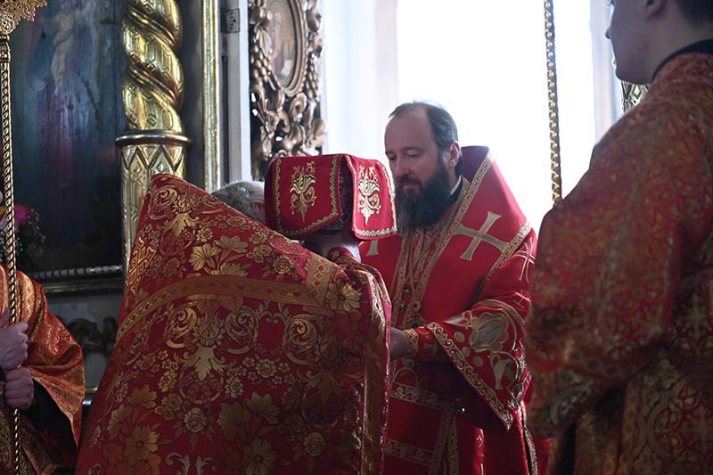 Также Его Высокопреосвященству сослужили: настоятель алма-атинского храма в честь иконы Божией Матери «Всех скорбящих Радость» митрофорный протоиерей Евгений Воробьев, настоятель Никольского храма села Бородулиха иеромонах Агапит (Никонов), клирик Андреевского кафедрального собора Усть-Каменогорска иеромонах Силуан (Магилев), настоятель Воскресенского кафедрального собора иерей Вячеслав Гутов, руководитель административного секретариата Главы Митрополичьего округа иерей Георгий Сидоров, руководитель службы протокола митрополита протодиакон Роман Головин, протодиакон Георгий Засыпкин, протодиакон Владимир Сыровацкий, протодиакон Андрей Дудник, диакон Димитрий Савченко, диакон Александр Мокий, диакон Богдан Бойко.