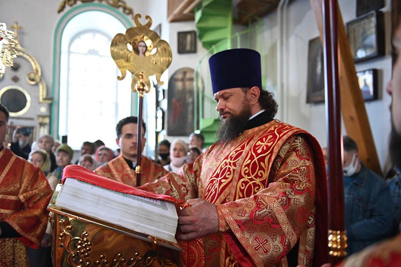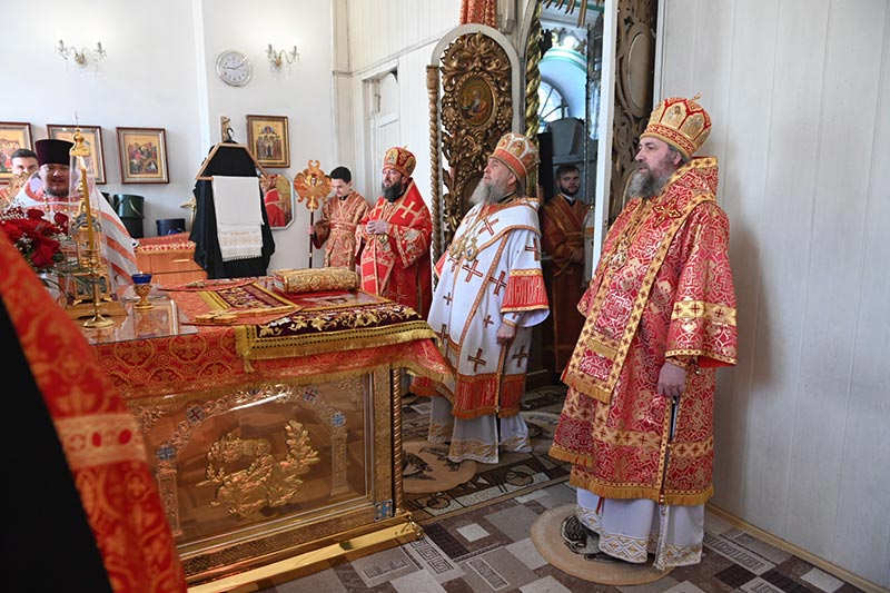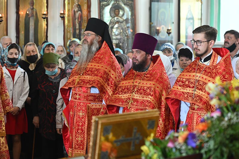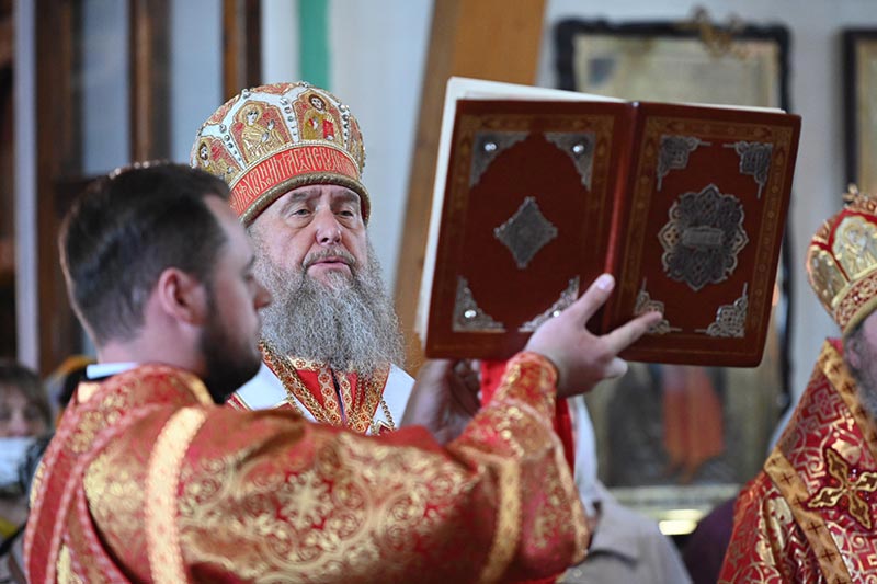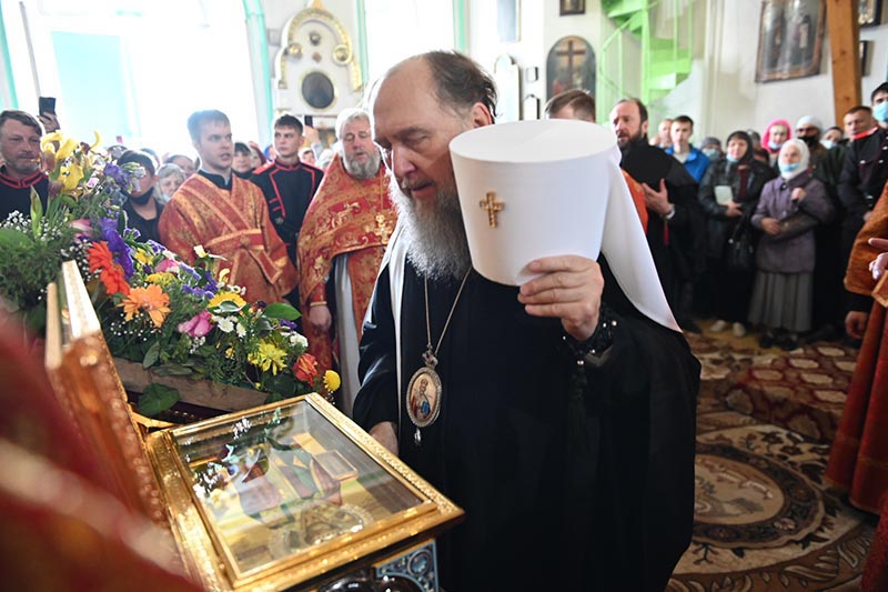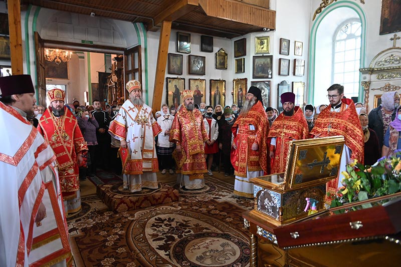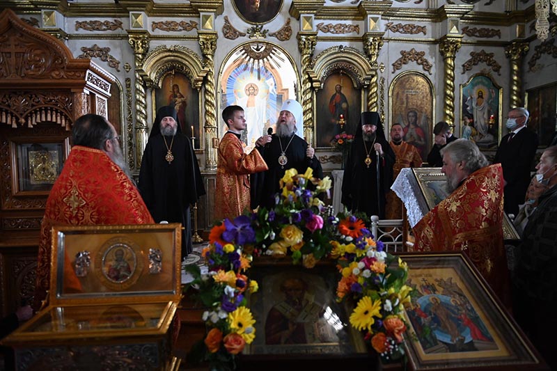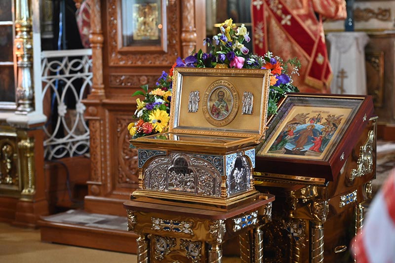 На Литургии в соборе пребывал ковчег с мощами святителя и чудотворца Николая, доставленный накануне владыкой митрополитом.