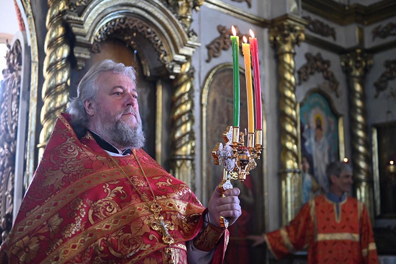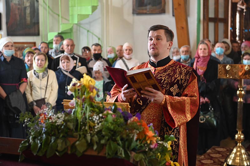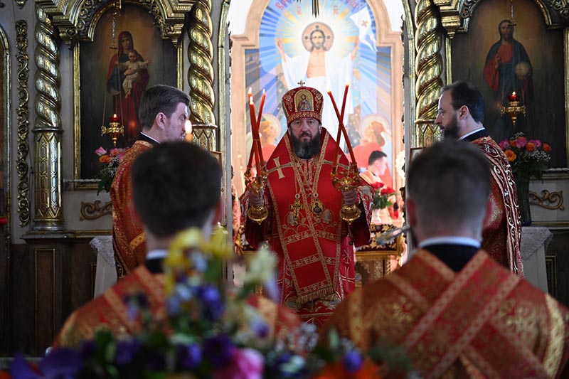 В завершение Литургии духовенство совершило славление Светлому Христову Воскресению и Мирликийскому архипастырю. Владыка митрополит произнес возглас «Христос воскресе!» на разных языках – древних и современных.