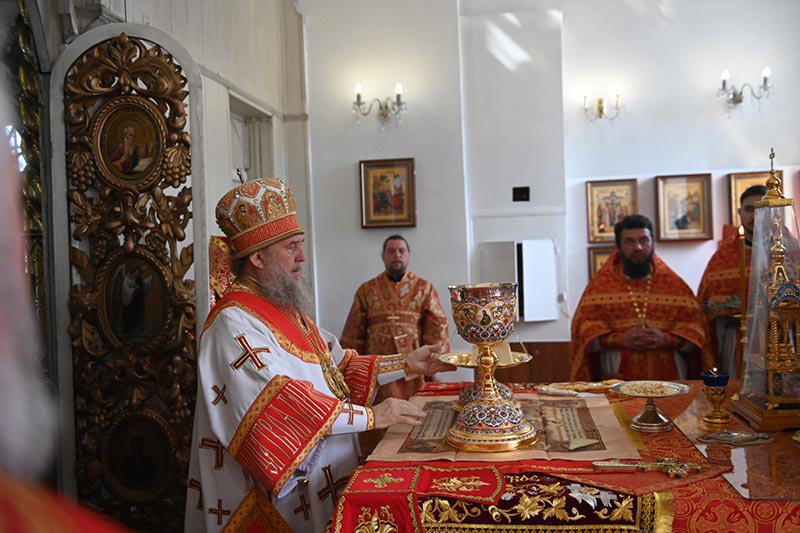 Митрополит Астанайский и Казахстанский Александр совершил Божественную Литургию в Воскресенском кафедральном соборе города Семипалатинска.