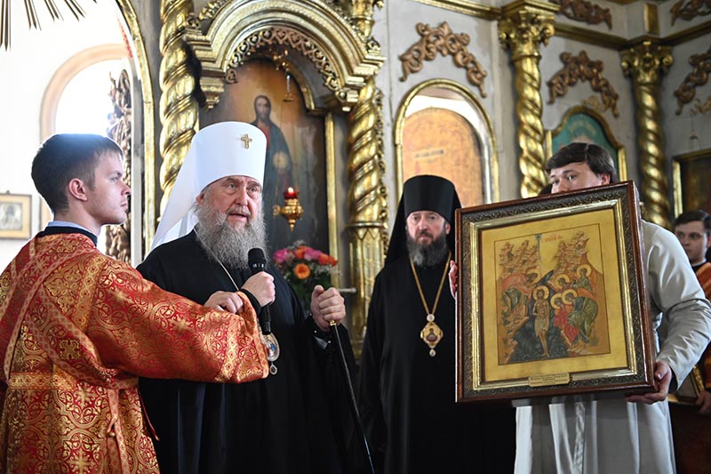 Владыка митрополит поблагодарил епископа Амфилохия за радость общей молитвы в старинном соборе Семипалатинска. В дар кафедральному храму Глава Митрополичьего округа передал икону Крещения Господня и портрет приснопамятного Святейшего Патриарха Алексия I (Симанского), который, будучи епископом Ямбургским, посещал город Семипалатинск, пребывая в Каркаралинской ссылке с 1922 по 1926 гг..