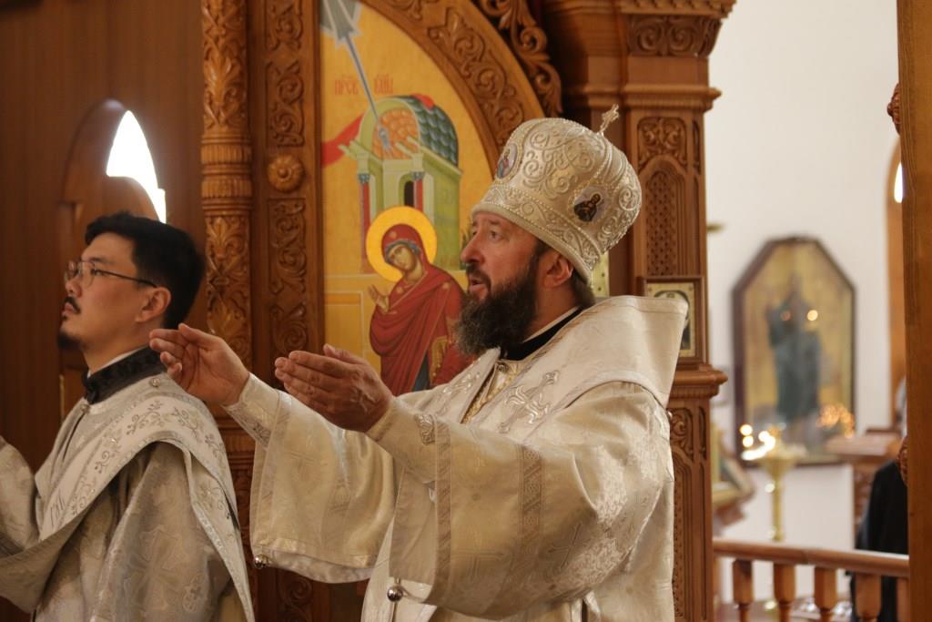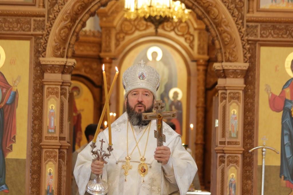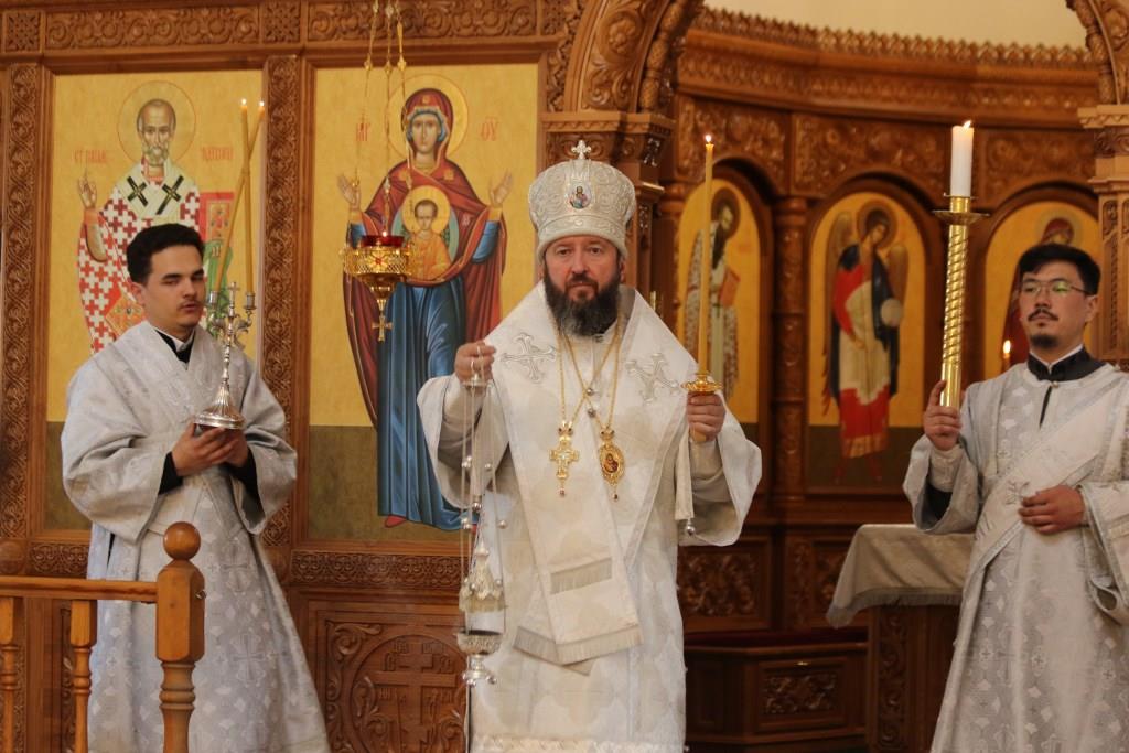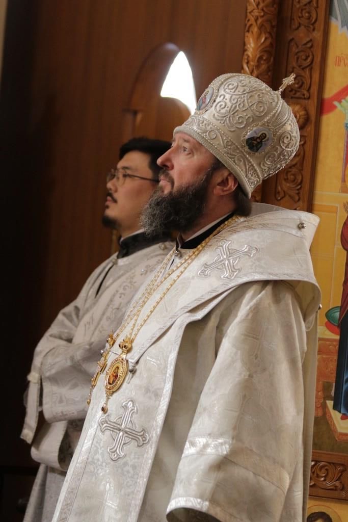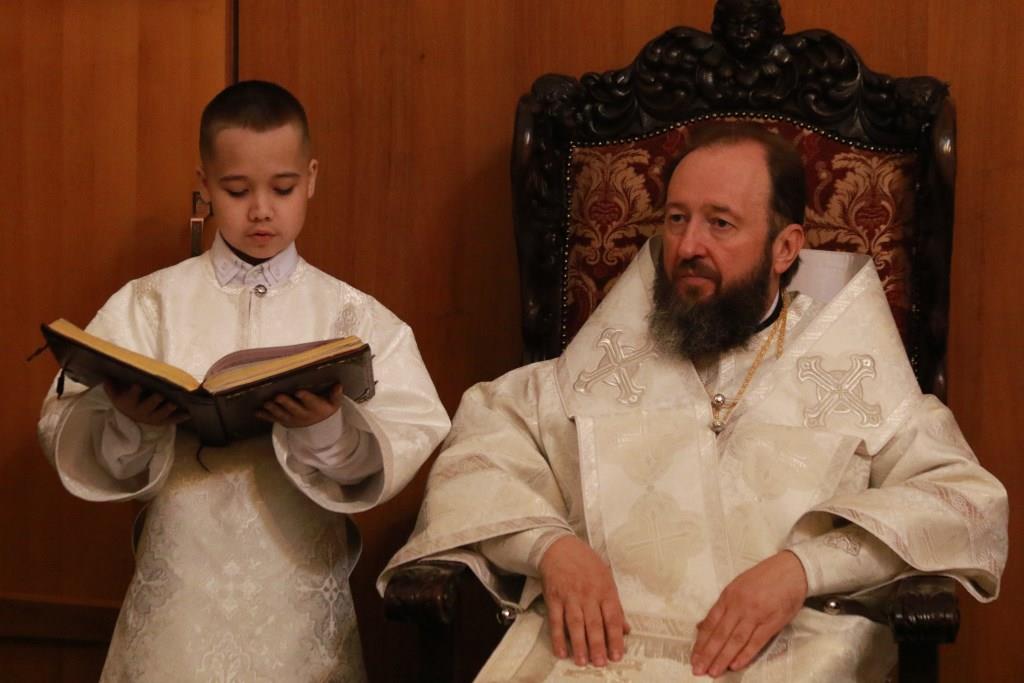Архипастырю сослужили: ключарь кафедрального собора иеромонах Никодим (Авдеев), клирики собора иеромонах Силуан (Магилев), иерей Роман Подрезов, секретарь епархии диакон Илия Кван.