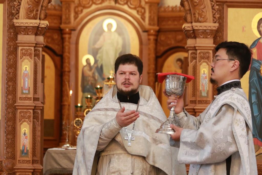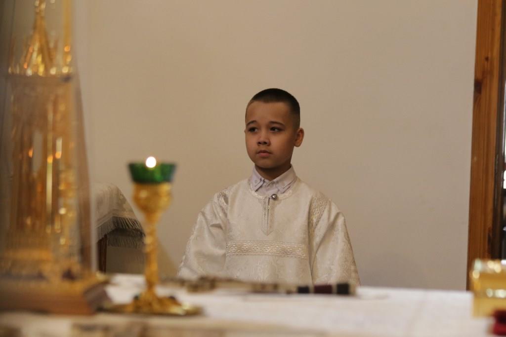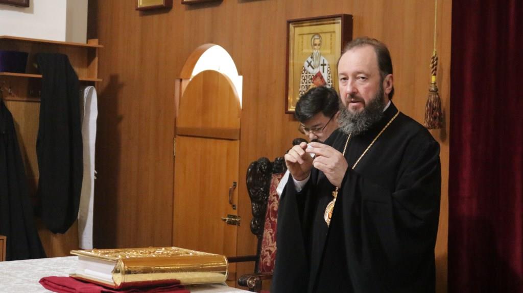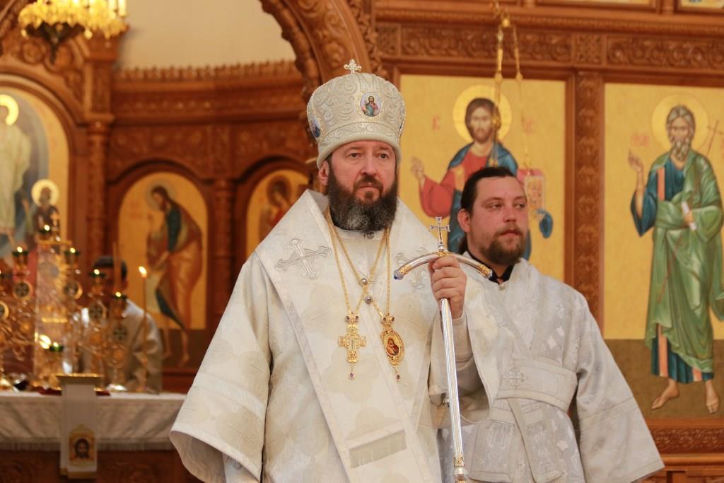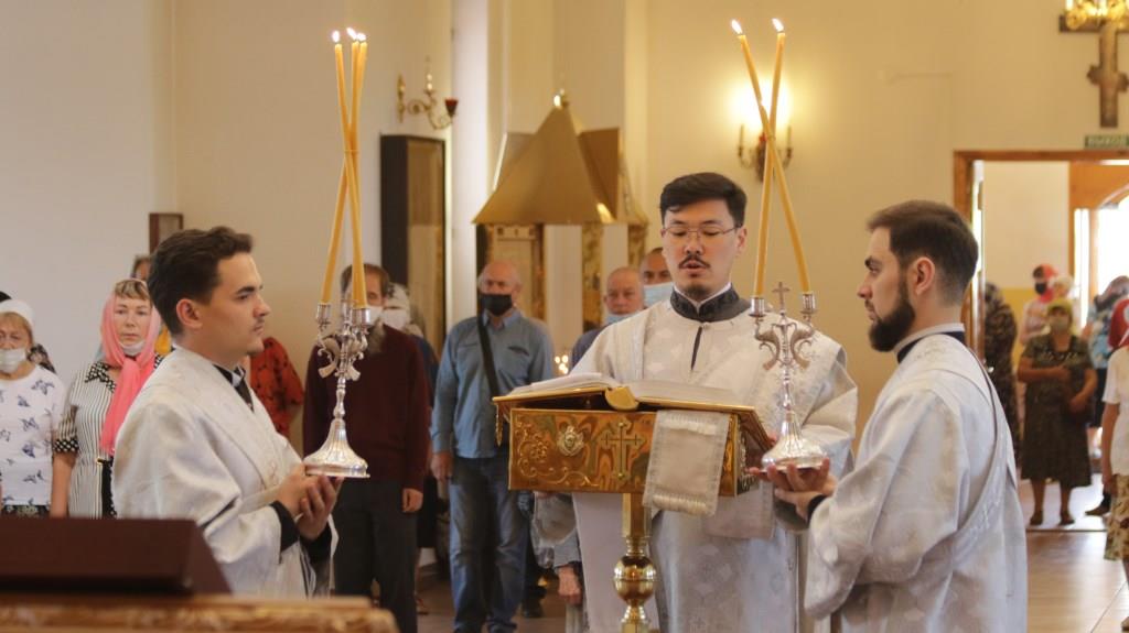 Архипастырю сослужили: ключарь кафедрального собора иеромонах Никодим (Авдеев), клирики собора иеромонах Силуан (Магилев), иерей Роман Подрезов, секретарь епархии диакон Илия Кван.