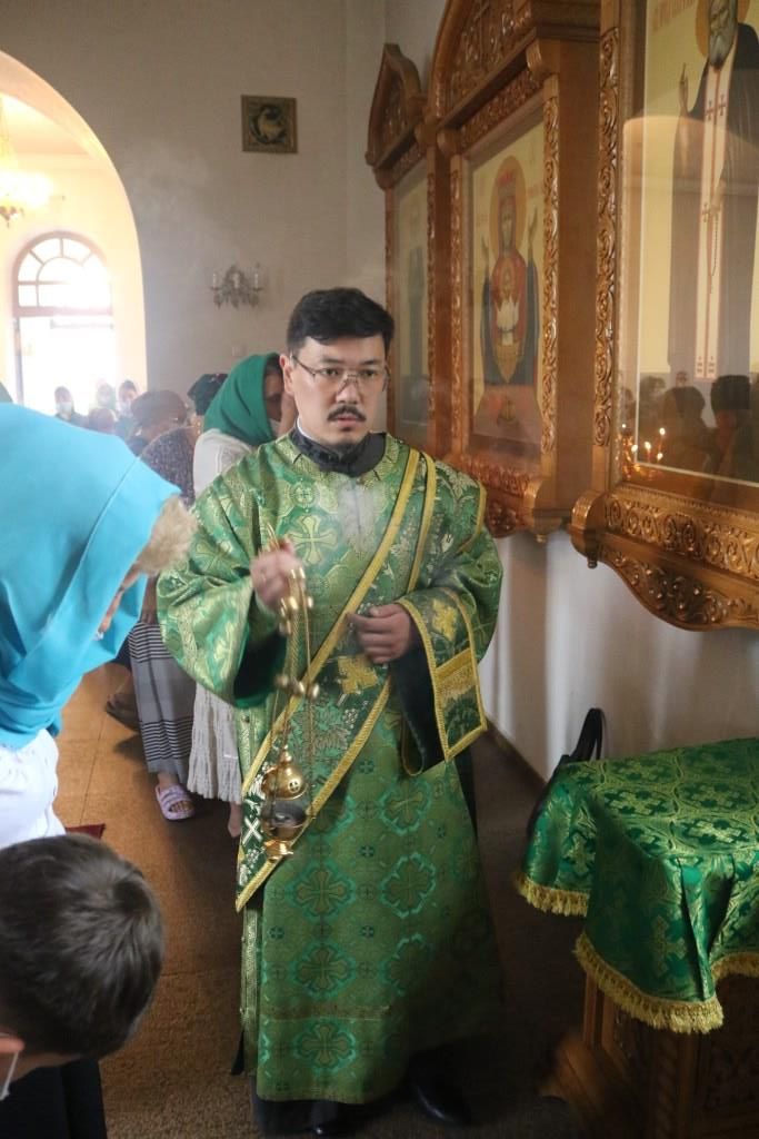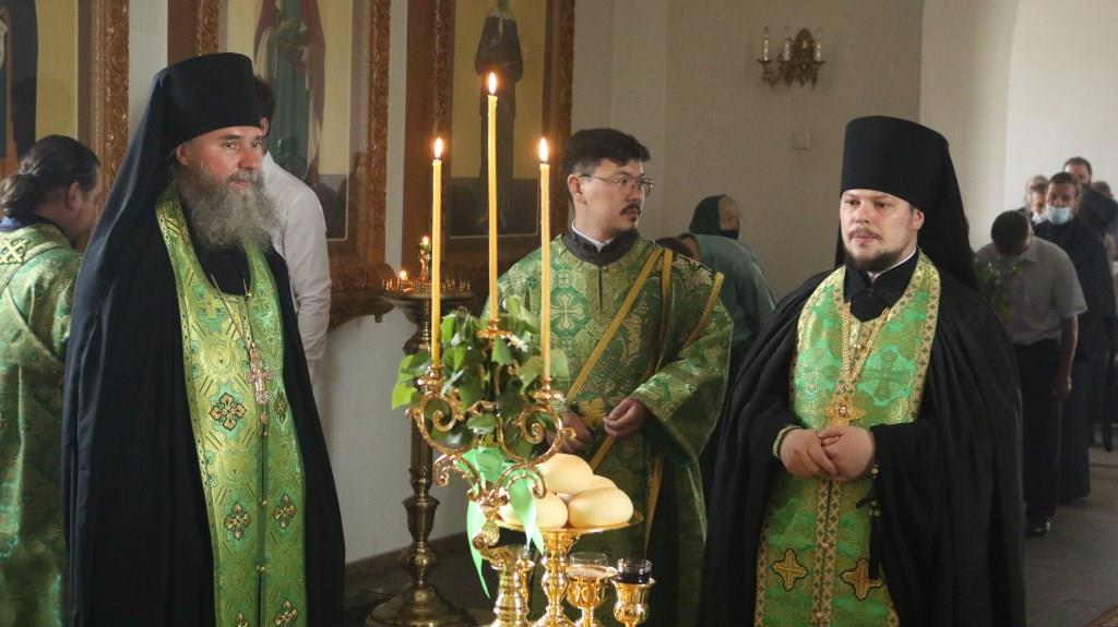 Владыке епископу сослужили: ключарь Андреевского кафедрального собора иеромонах Никодим (Авдеев), клирики собора иерей Алексий Клепиков, иеромонах Силуан (Магилев), иерей Роман Подрезов, секретарь епархии диакон Илия Кван.