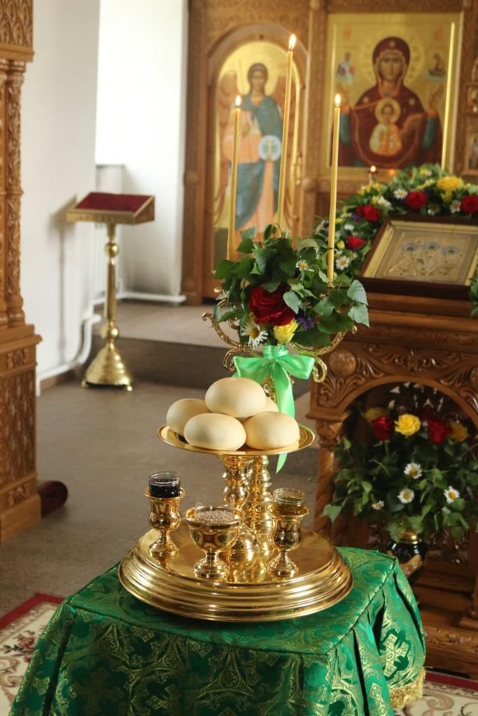 За праздничным богослужением совершалась лития – уставное сугубое моление с освящением хлеба, пшеницы, вина и елея.