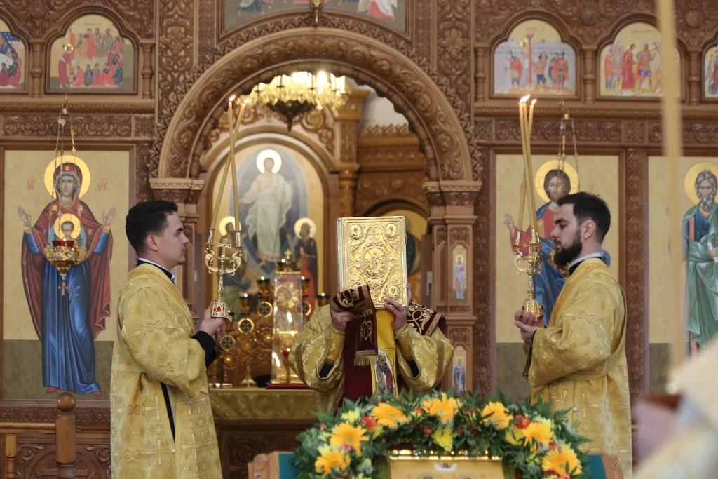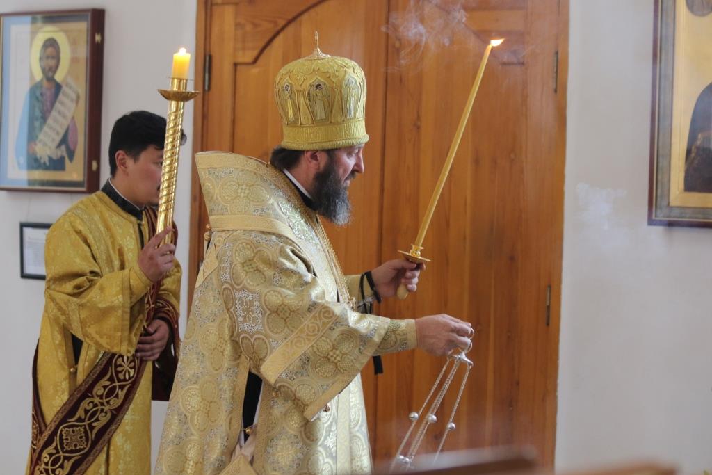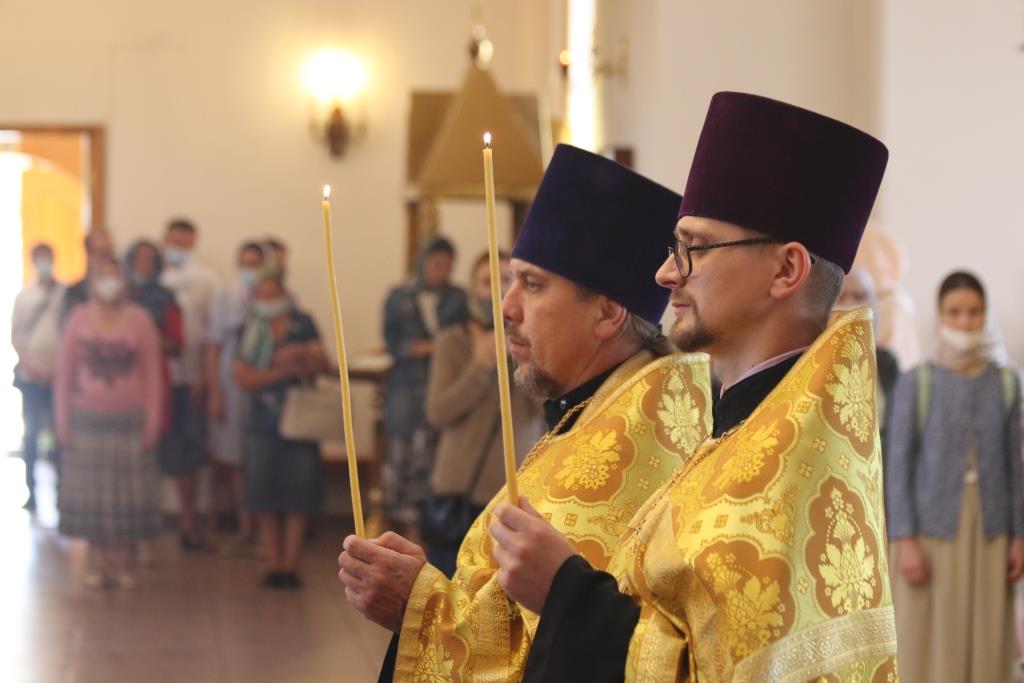 За вечерним богослужением совершалась лития – уставное сугубое моление с освящением пшеницы, вина и елея. Хор Андреевского собора под управлением регента Н. Романцовой исполнял песнопения праздника. За богослужением молились прихожане кафедрального собора, сотрудники епархиального управления и насельники Свято-Троицкого мужского монастыря города Усть-Каменогорска. На полиелее прихожане кафедрального собора были помазаны освященным елеем.