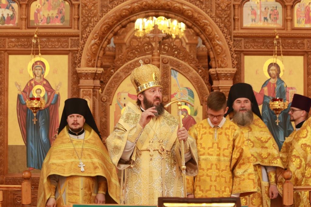 В завершение воскресного богослужения Преосвященнейший Архипастырь поздравил прихожан с праздником и обратился к богомольцам со словом проповеди.