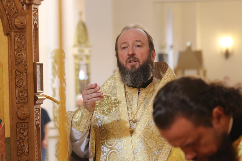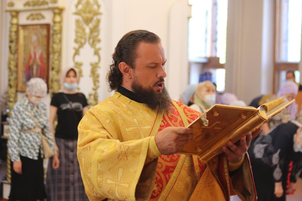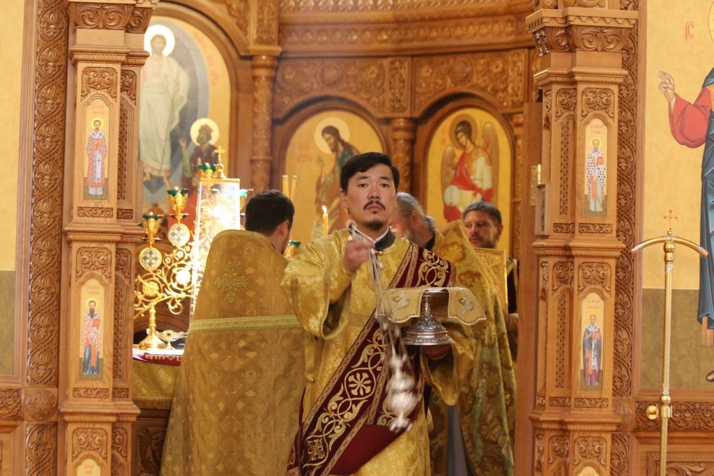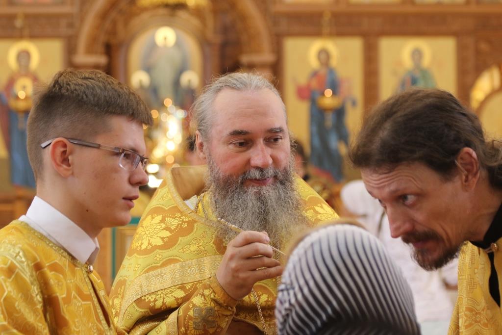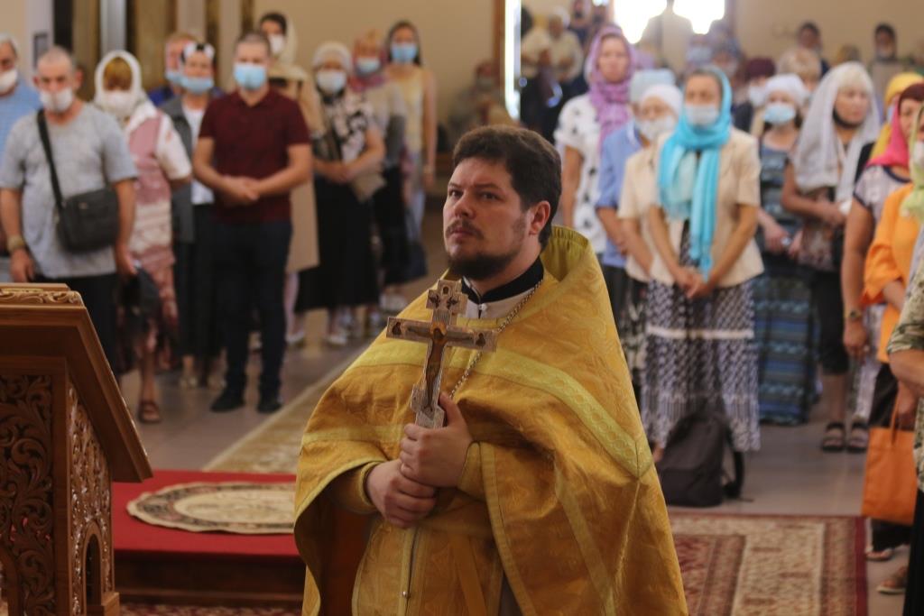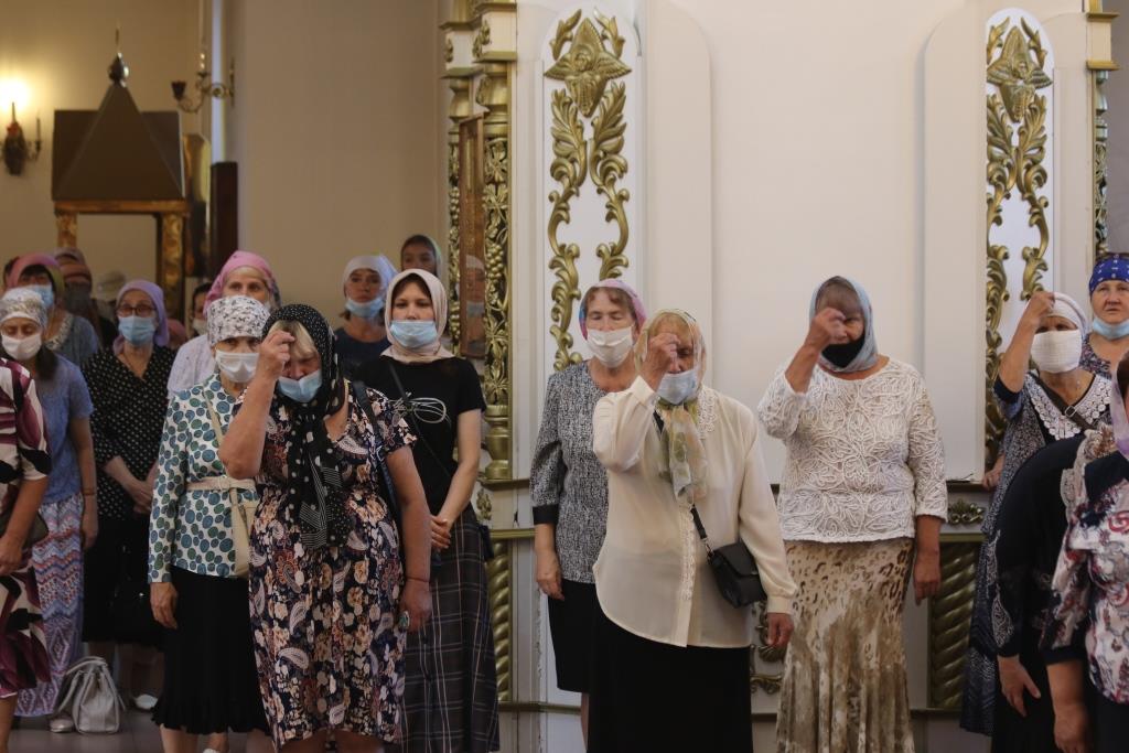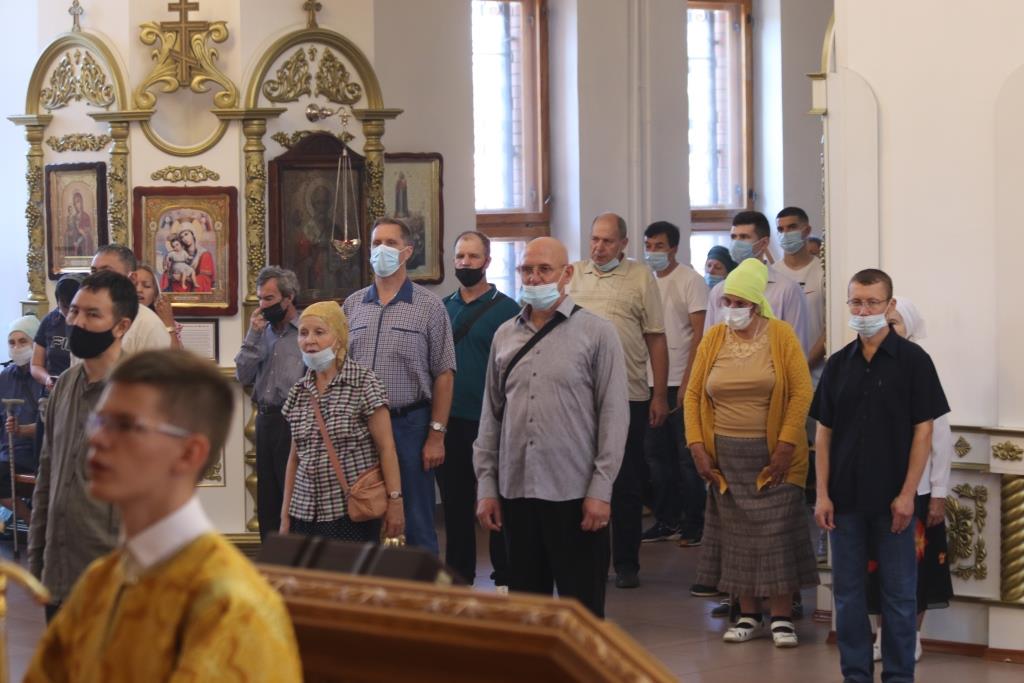 За праздничным богослужением молились сотрудники епархиального управления, насельники Свято-Троицкого мужского монастыря города Усть-Каменогорска и прихожане кафедрального собора. Песнопения Божественной Литургии исполнял хор под управлением регента В. Федоровой. Проповедь перед причастием мирян произнес иеромонах Силуан (Магилев).