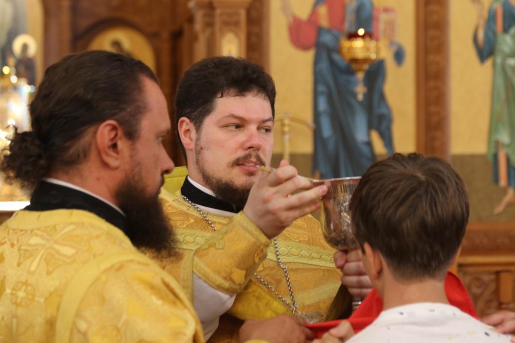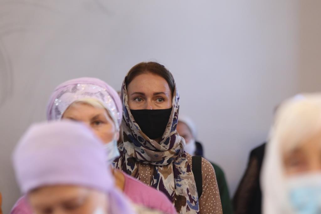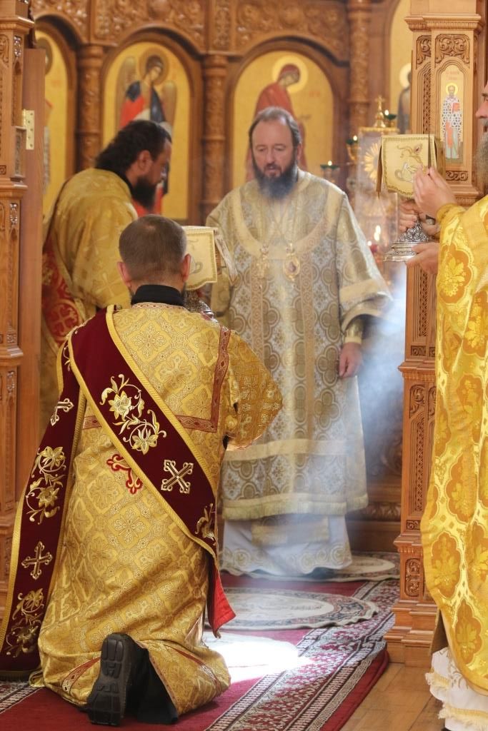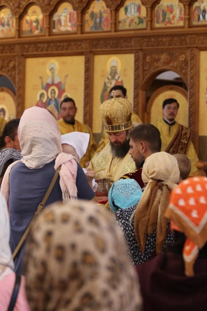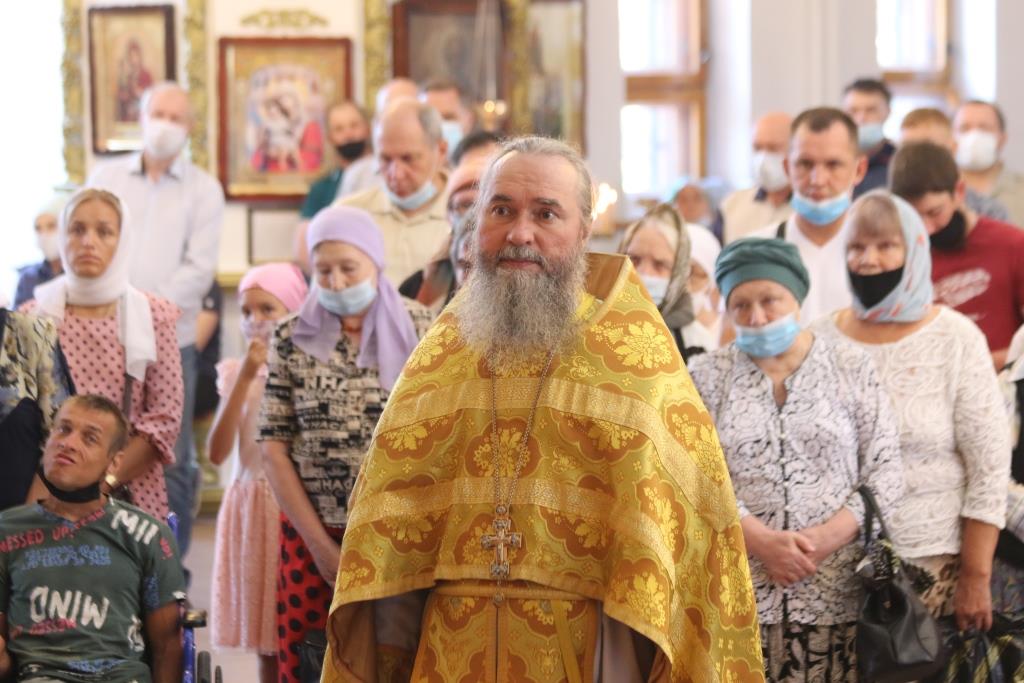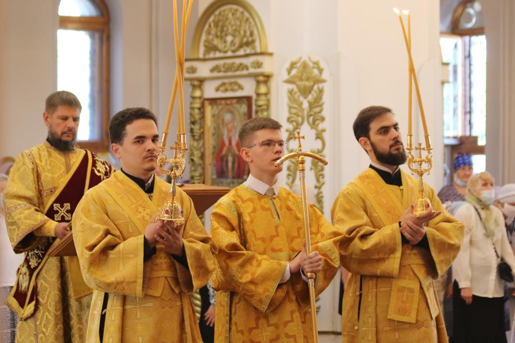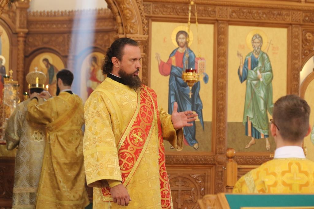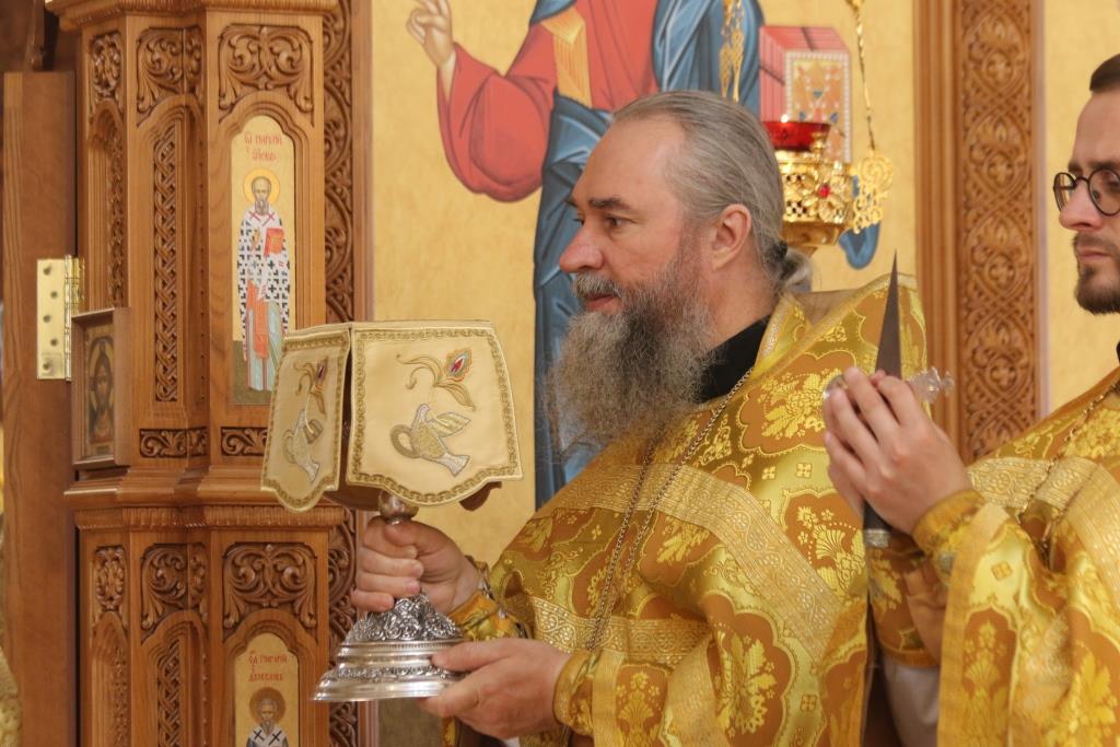 За праздничным богослужением молились сотрудники епархиального управления, насельники Свято-Троицкого мужского монастыря города Усть-Каменогорска и прихожане кафедрального собора. Песнопения Божественной Литургии исполнял хор под управлением регента В. Федоровой. Проповедь перед причастием мирян произнес иеромонах Силуан (Магилев).