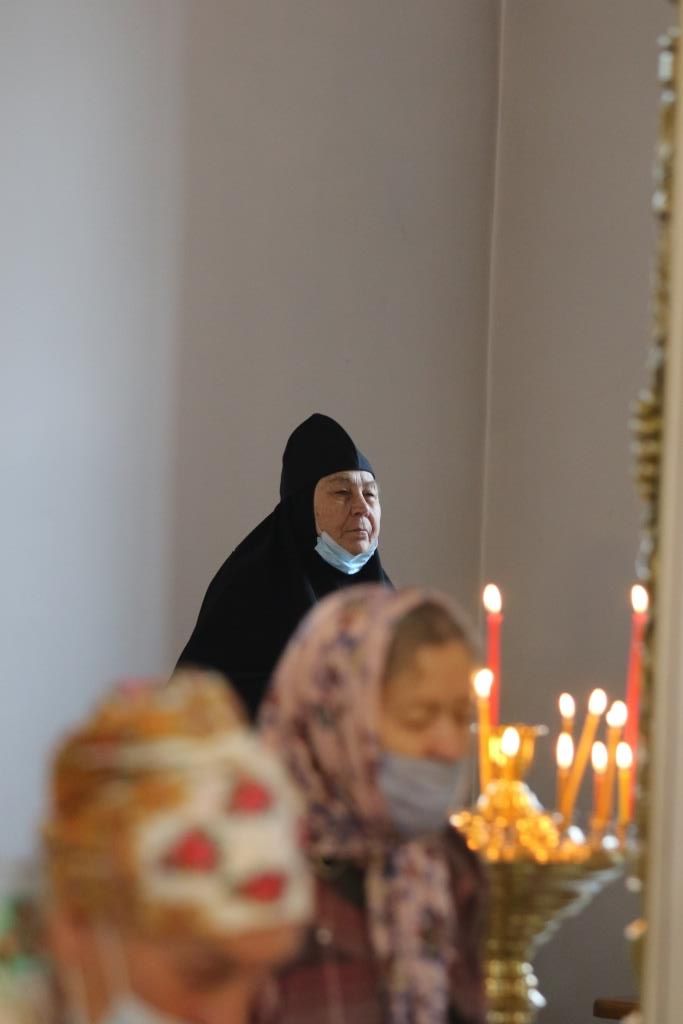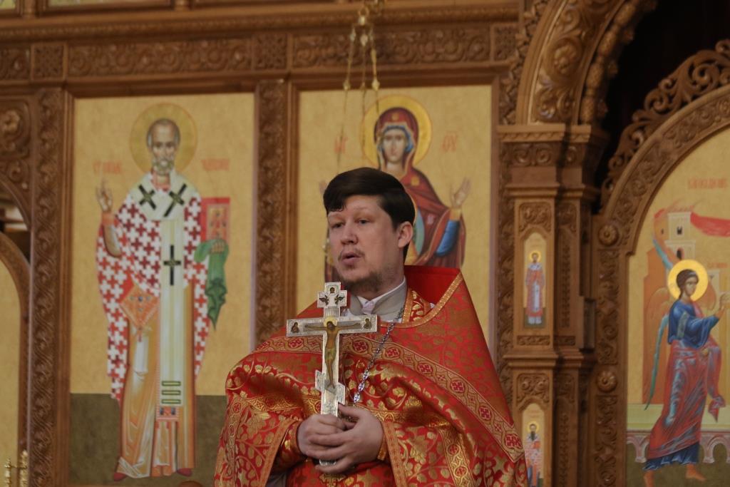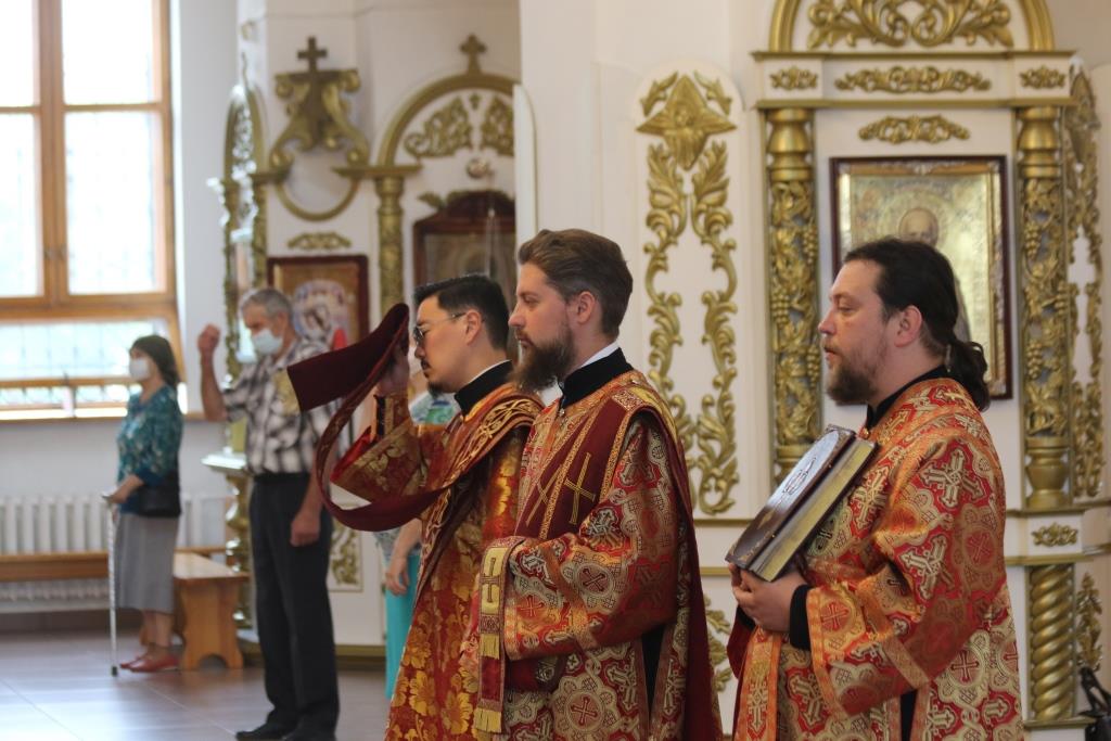За богослужением молились прихожане кафедрального собора, сотрудники епархиального управления и насельники Свято-Троицкого мужского монастыря города Усть-Каменогорска. Песнопения Божественной Литургии исполнял хор под управлением регента Н. Романцовой. Проповедь перед причастием мирян произнес священник Роман Подрезов.