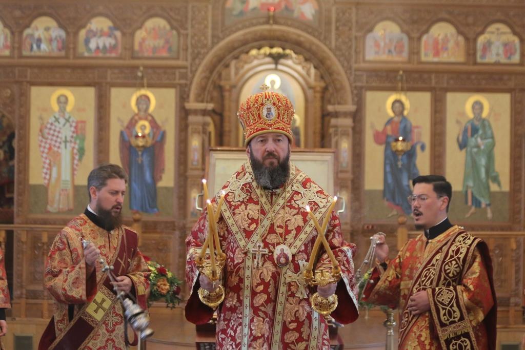 В праздничный день Преосвященнейший епископ Усть-Каменогорский и Семипалатинский Амфилохий возглавил служение Божественной Литургии святителя Иоанна Златоуста в кафедральном соборе святого апостола Андрея Первозванного города Усть-Каменогорска. Архипастырю сослужили: ключарь кафедрального собора иеромонах Никодим (Авдеев), клирик собора иерей Роман Подрезов, секретарь епархии диакон Илия Кван, протодиакон Георгий Засыпкин, иеродиакон Мефодий (Шевчук).