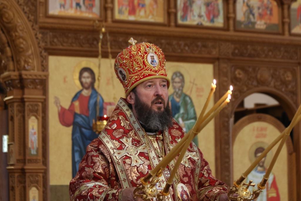 В завершение богослужения было совершено славление великомученику Христову, после чего епископ Амфилохий обратился к богомольцам со словом проповеди.