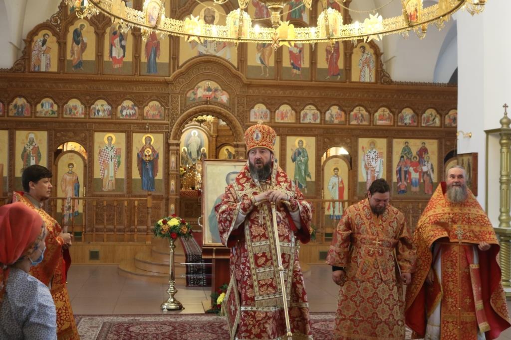 После проповеди Преосвященнейший Архипастырь призвал благословение Божие на молящихся и окропил прихожан святой водой.