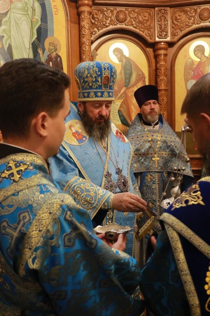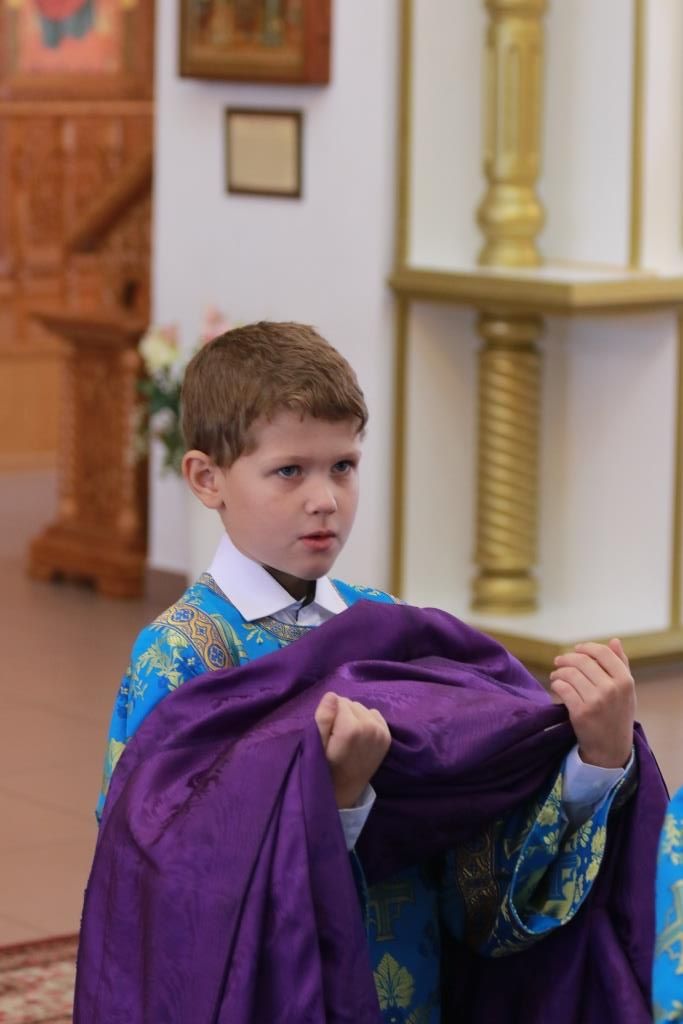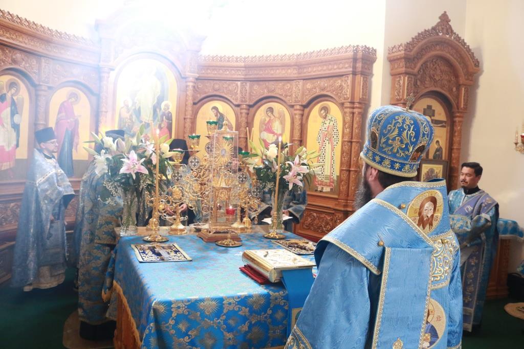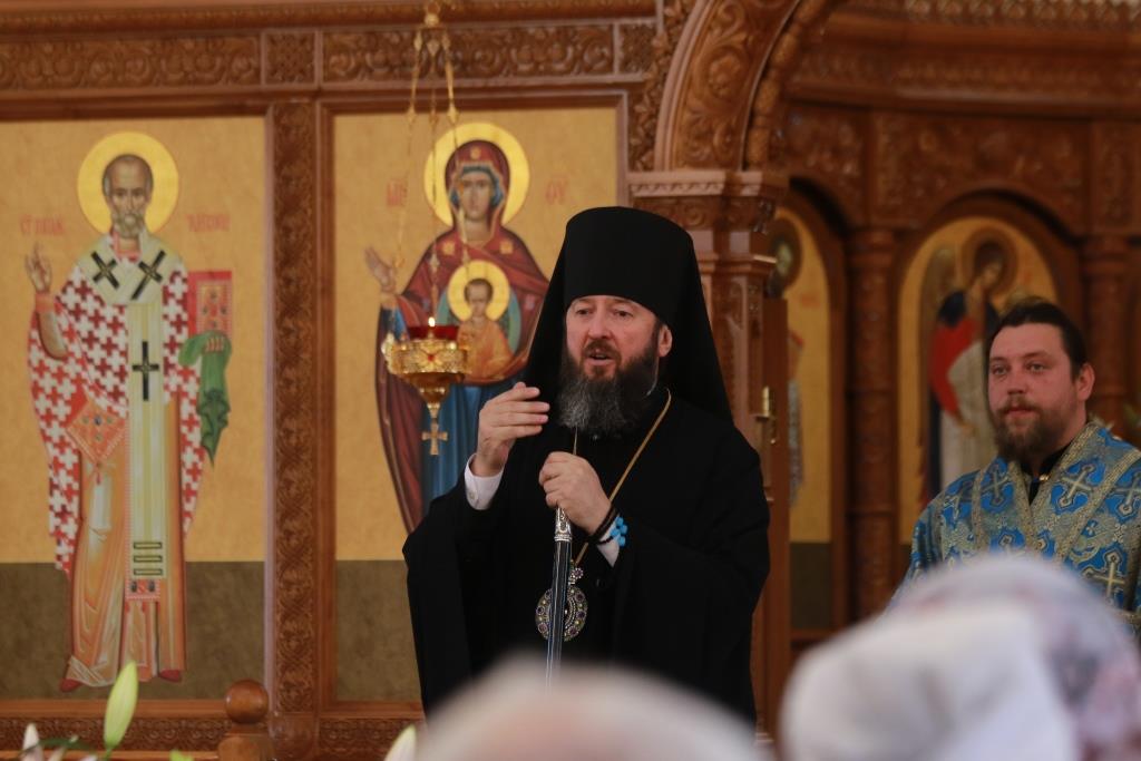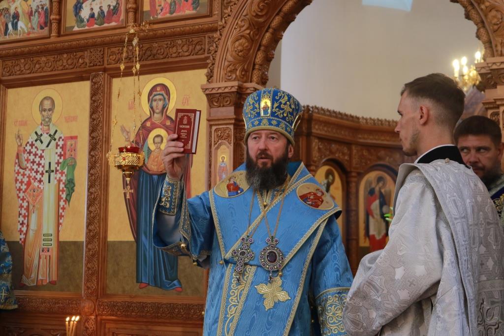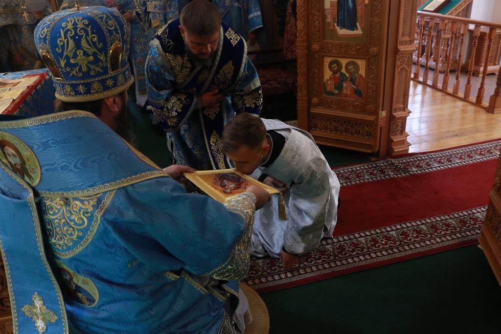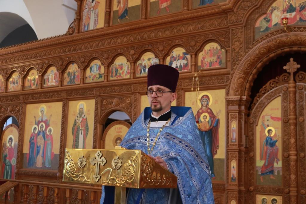 За богослужением Владыка епископ рукоположил в сан диакона студента Алматинской православной духовной семинарии, алтарника Покровского храма города Усть-Каменогорска Кирилла Нарушина. Перед причастием мирян проповедовал священник Константин Дьяков. В завершение воскресного богослужения епископ Амфилохий обратился к молящимся со словами проповеди.