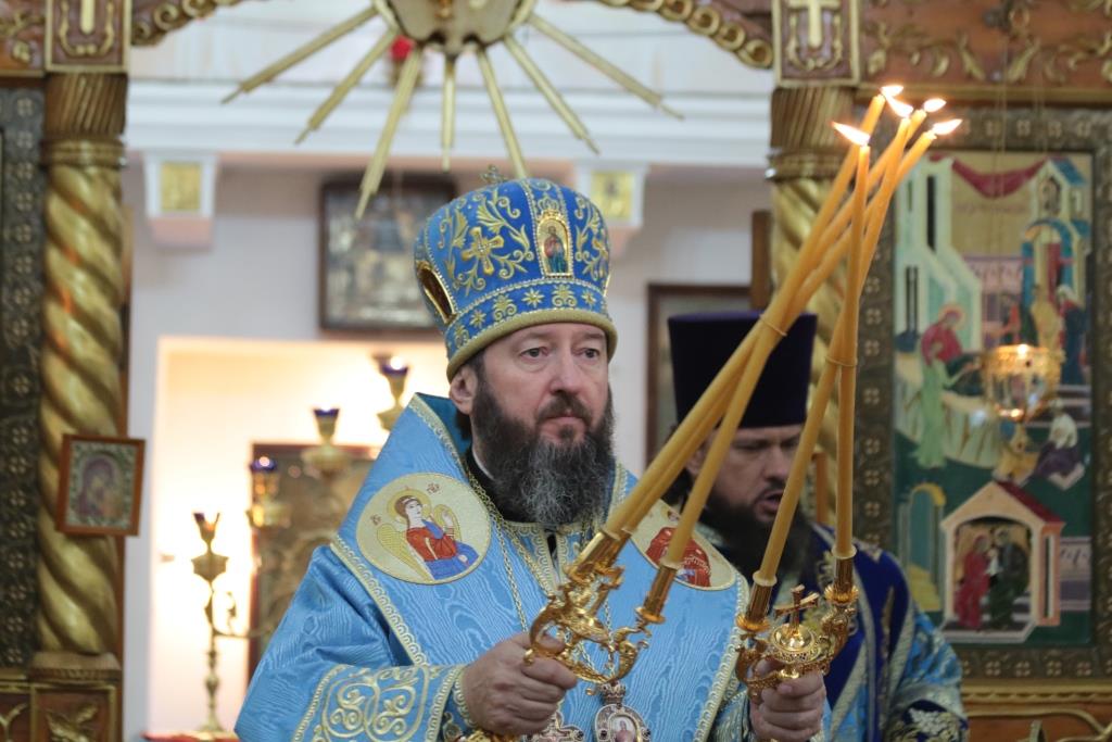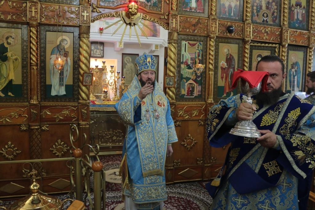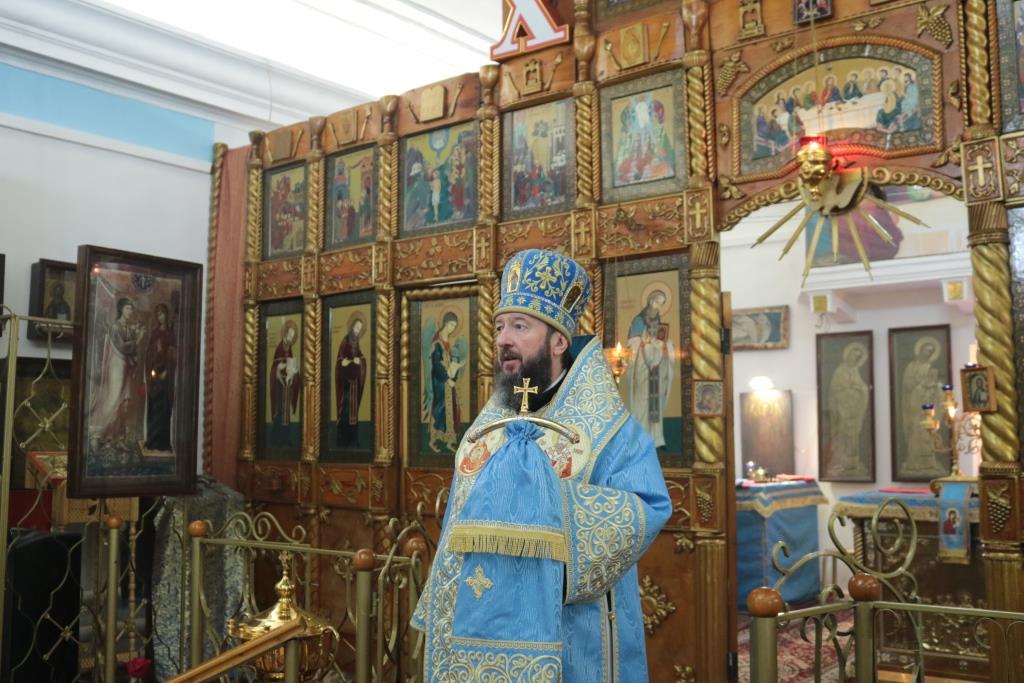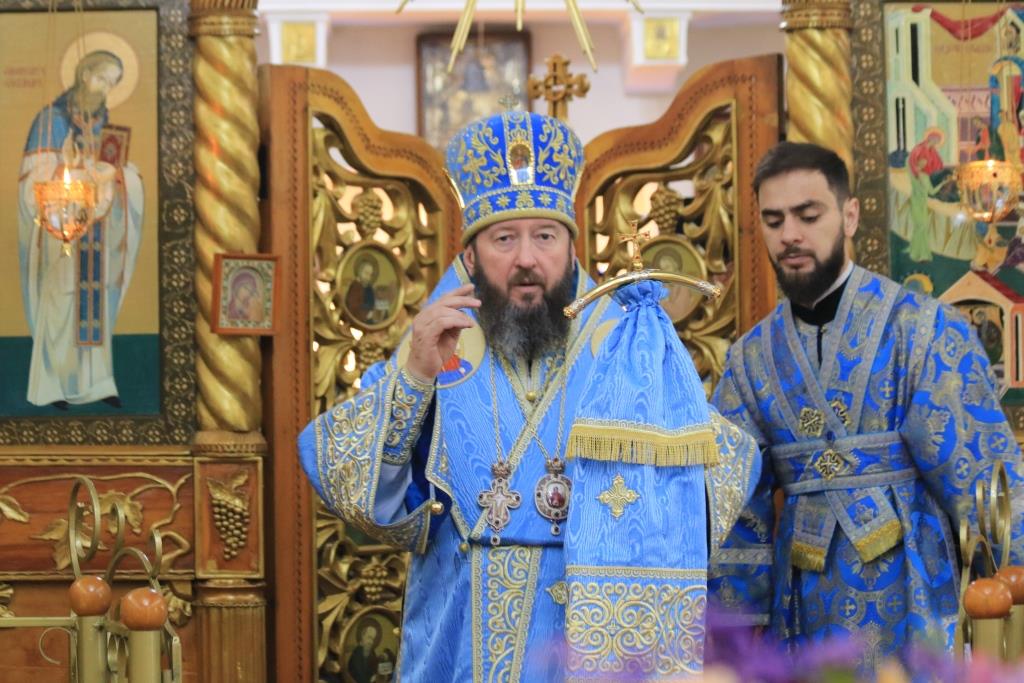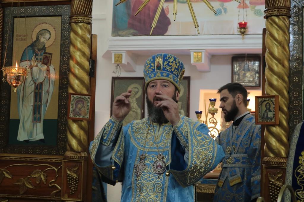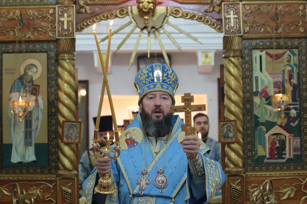 Божественная Литургия завершилась славлением Божией Матери, после которого епископ Амфилохий поздравил собравшихся с праздником и обратился к народу Божию со словами Архипастырской проповеди.