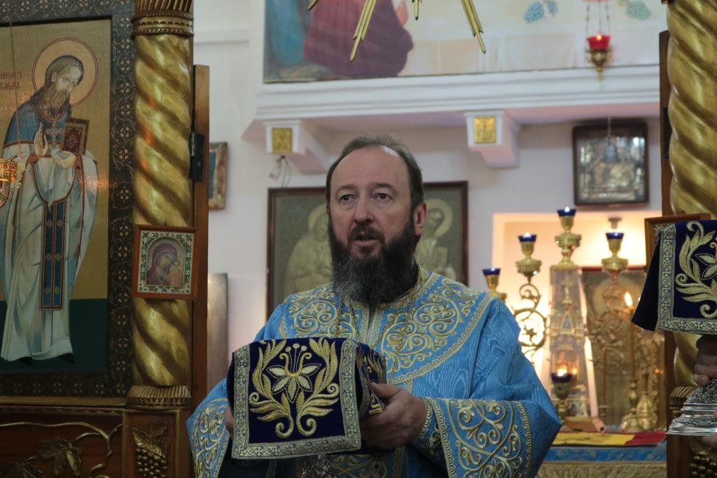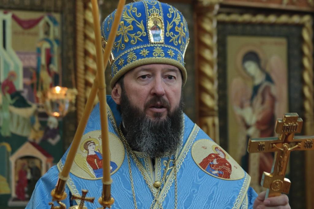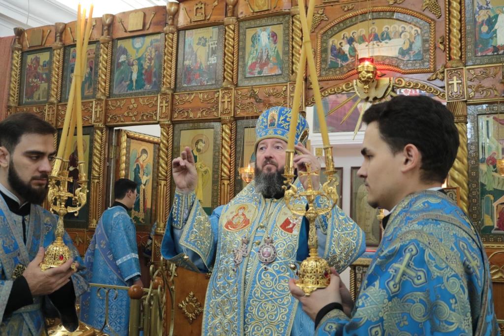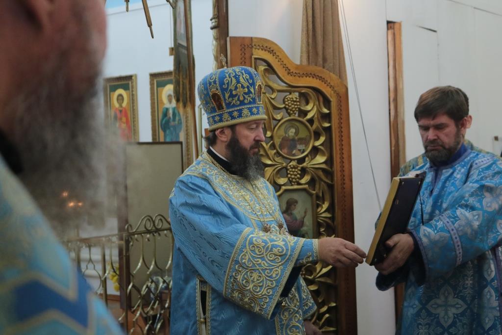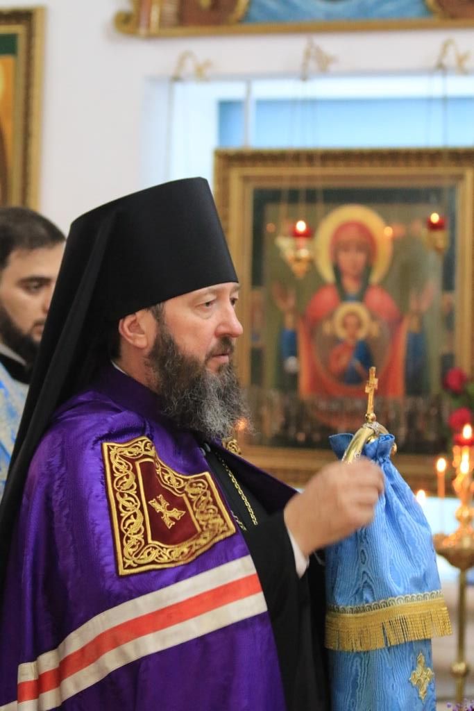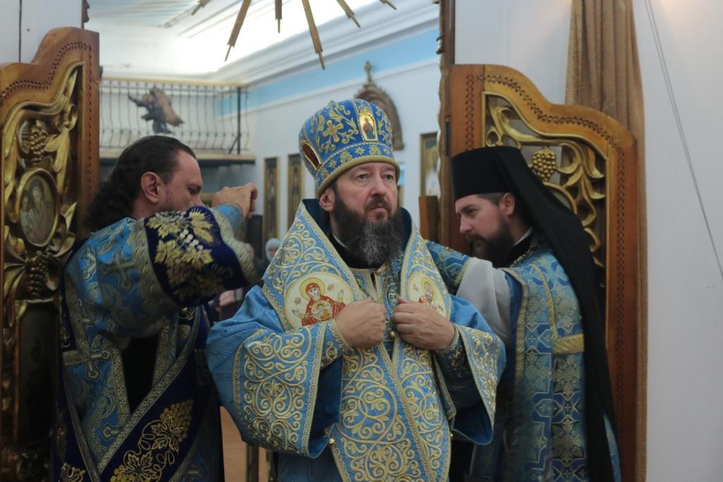 Божественная Литургия завершилась славлением Божией Матери, после которого епископ Амфилохий поздравил собравшихся с праздником и обратился к народу Божию со словами Архипастырской проповеди.