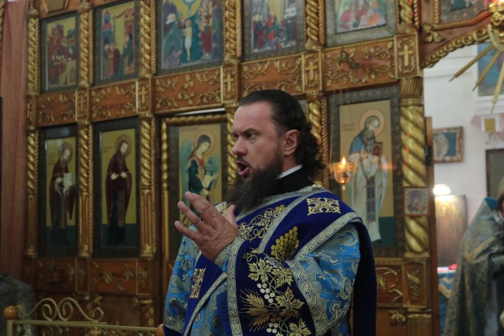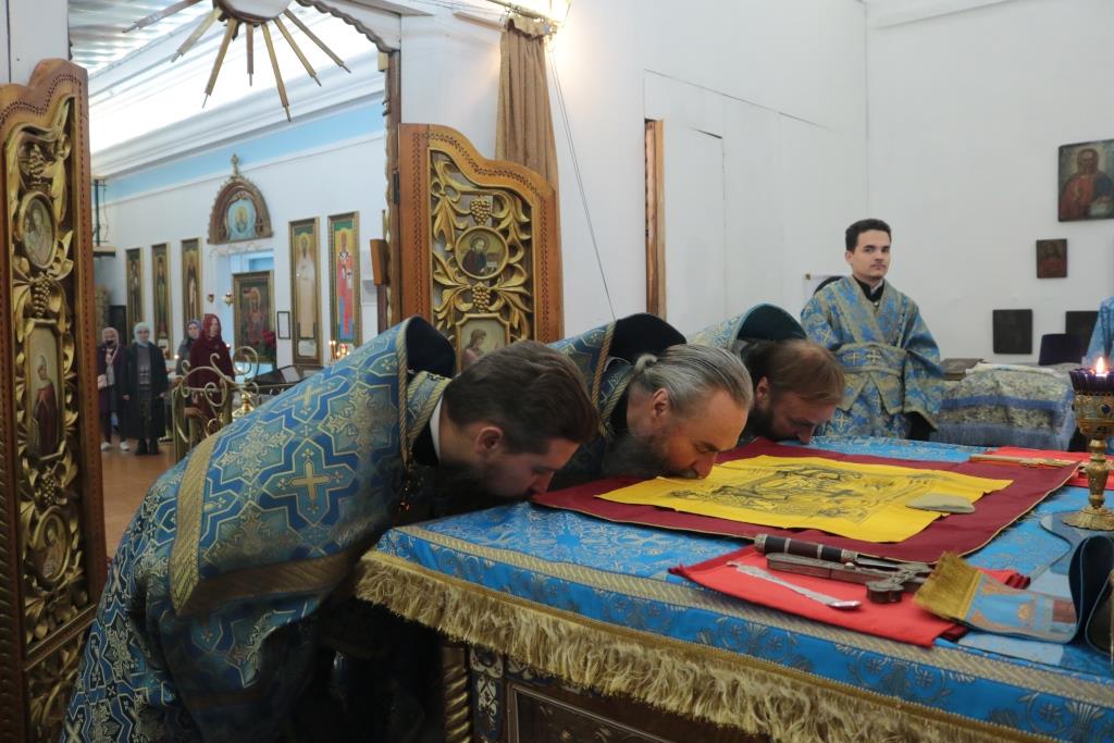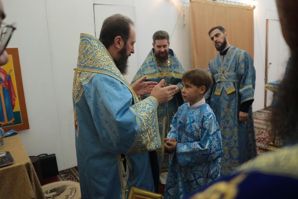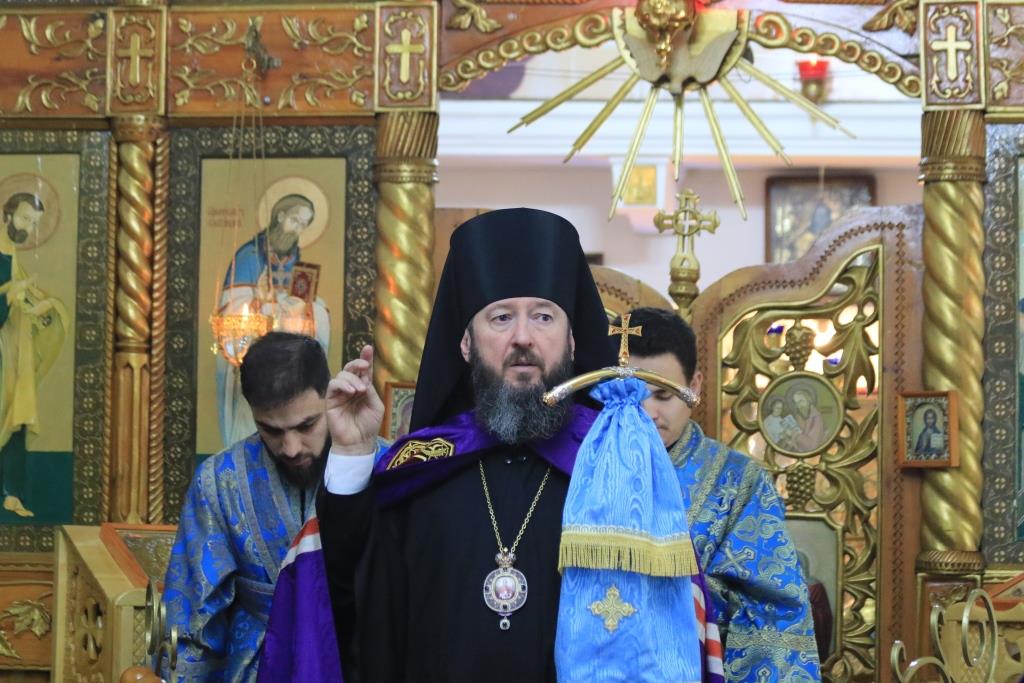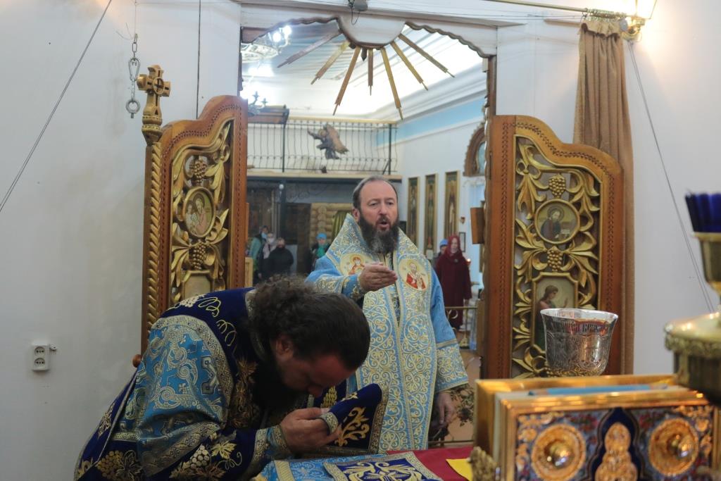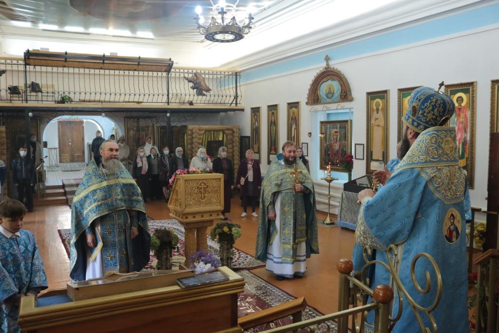 Божественная Литургия завершилась славлением Божией Матери, после которого епископ Амфилохий поздравил собравшихся с праздником и обратился к народу Божию со словами Архипастырской проповеди.