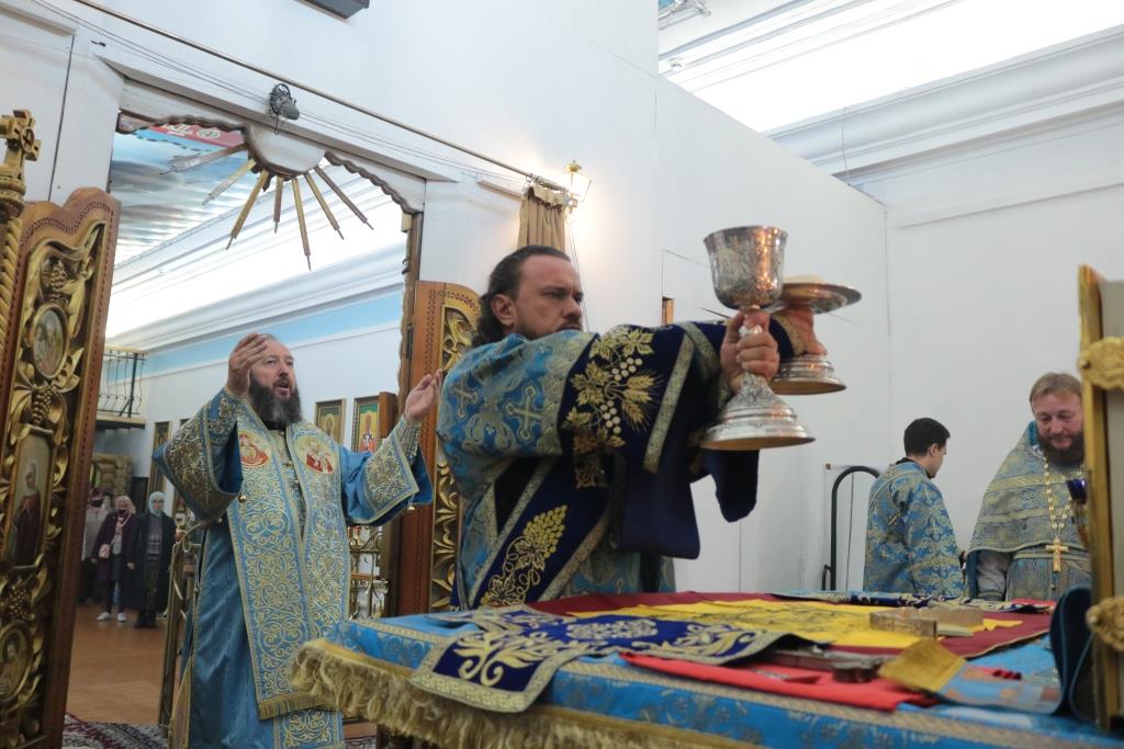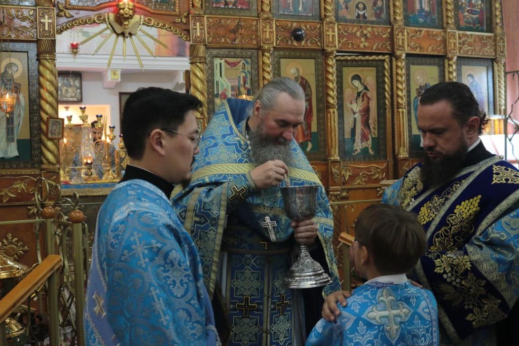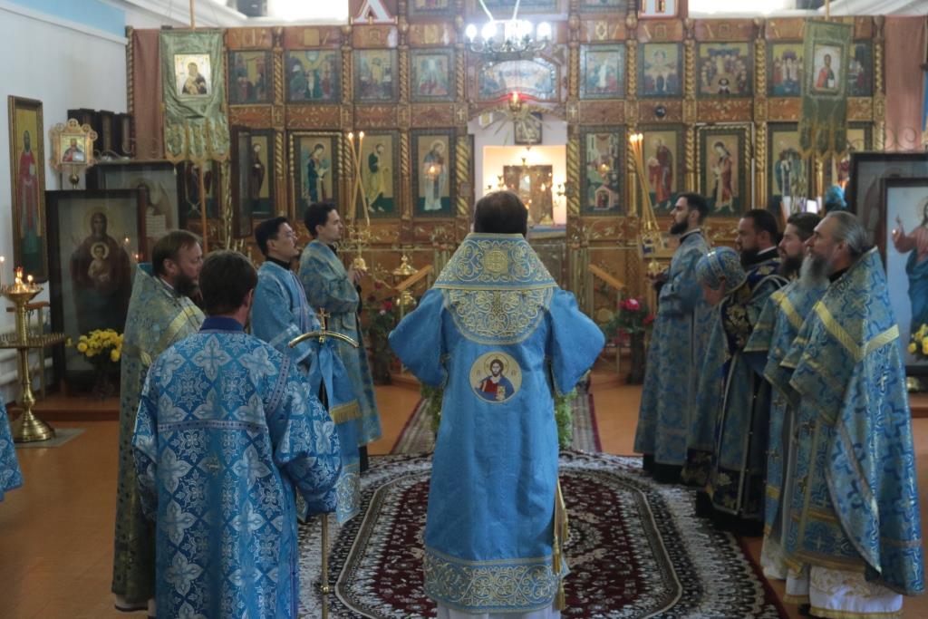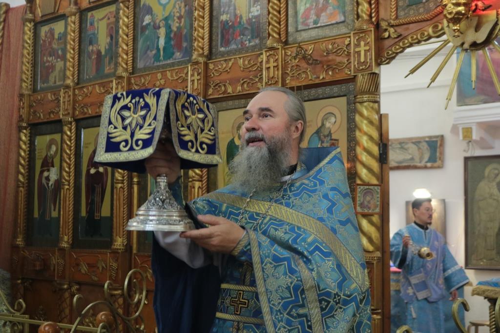 Преосвященнейший Амфилохий, епископ Усть-Каменогорский и Семипалатинский, возглавил служение Божественной Литургии святителя Иоанна Златоуста в храме в честь Рождества Божией Матери столицы Рудного Алтая. В день престольного праздника Владыке сослужили: настоятель храма протоиерей Евгений Яганов, ключарь Андреевского кафедрального собора иеромонах Никодим (Авдеев), клирик собора иеромонах Мефодий (Шевчук), секретарь епархии диакон Илия Кван, протодиакон Андрей Дудник.