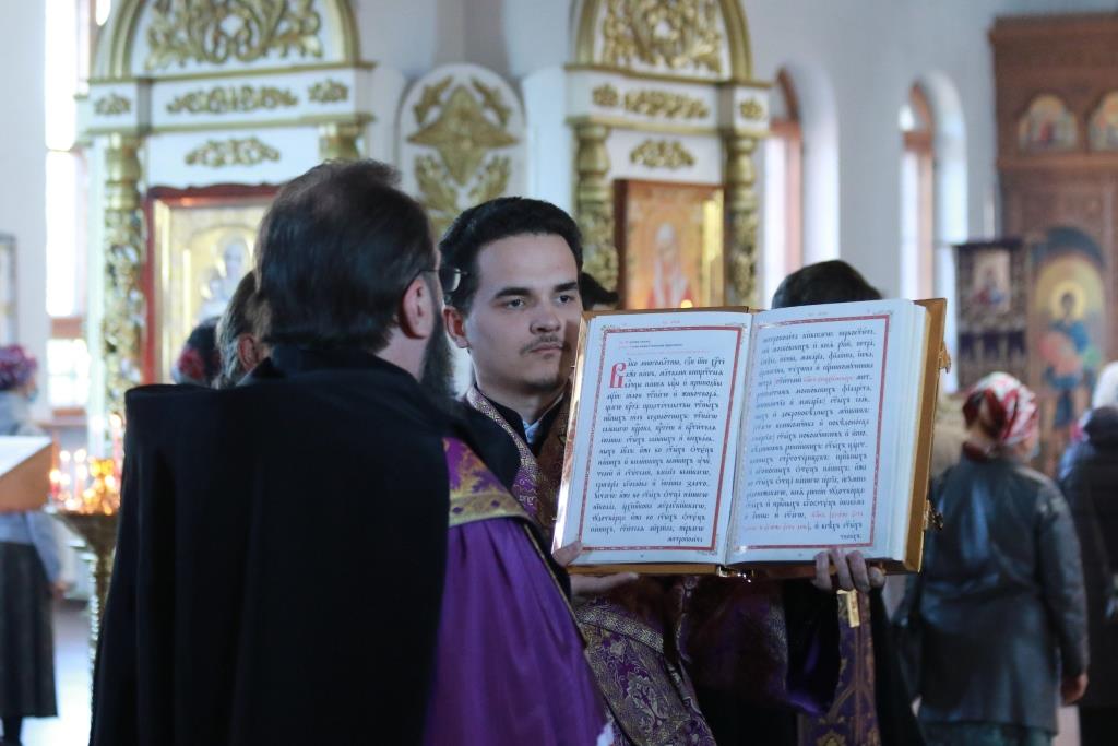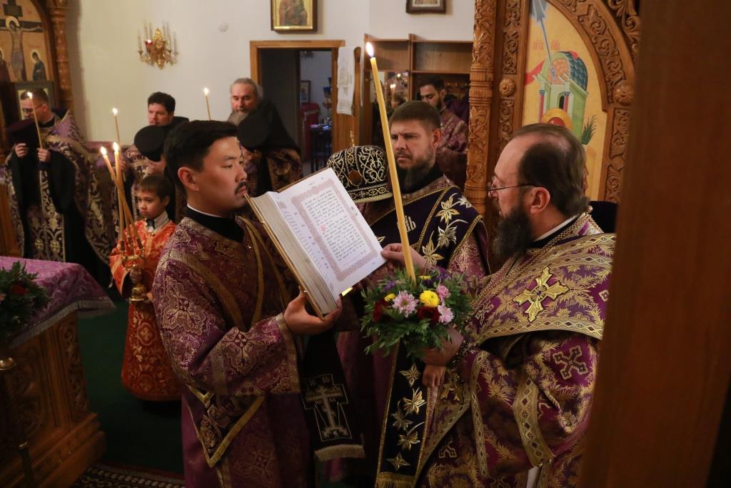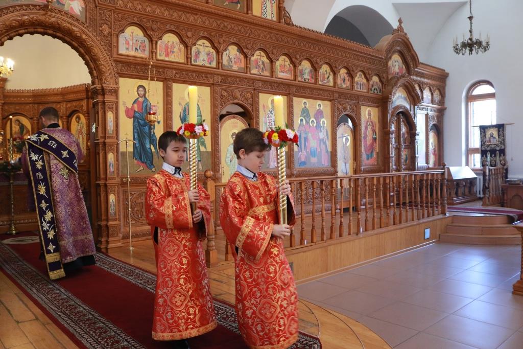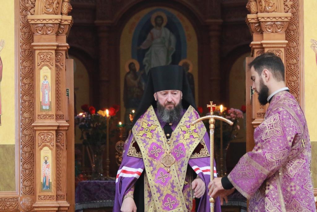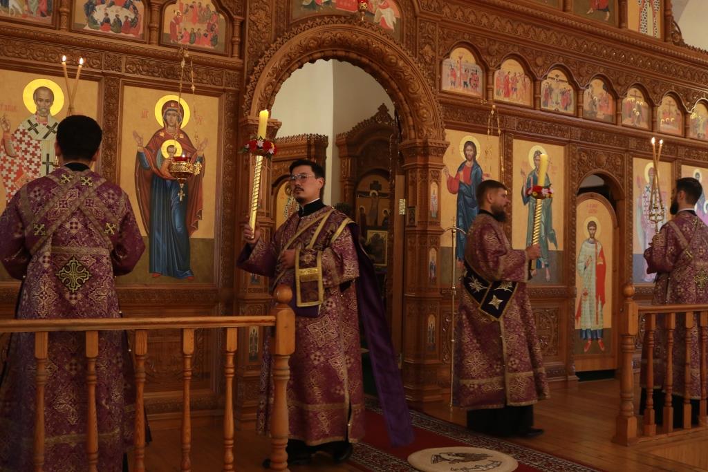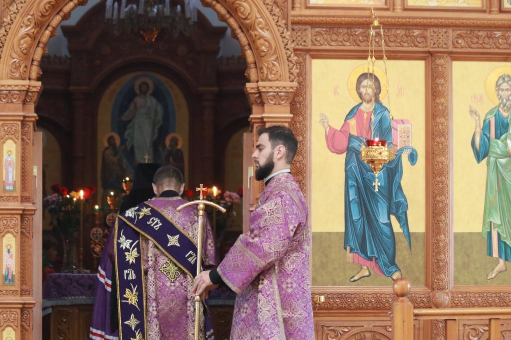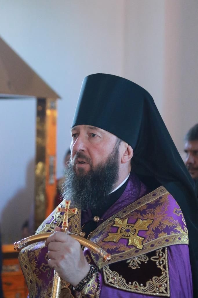 Владыке епископу сослужили ключарь собора иеромонах Никодим (Авдеев), клирики собора иерей Алексий Клепиков, иеромонах Силуан (Магилев), иерей Роман Подрезов, иерей Константин Дьяков, иеромонах Мефодий (Шевчук), секретарь епархии диакон Илия Кван и протодиакон Георгий Засыпкин.