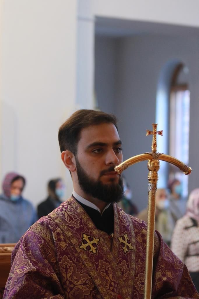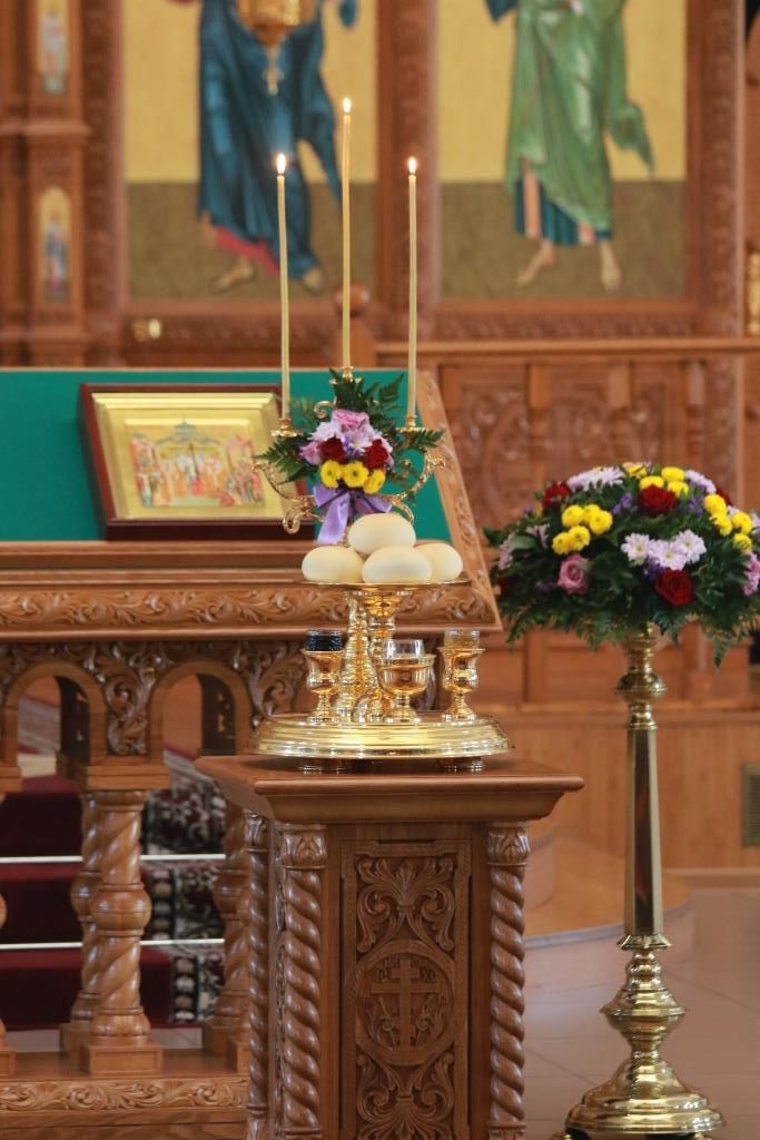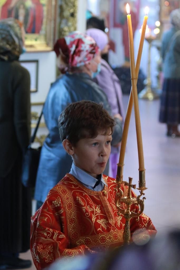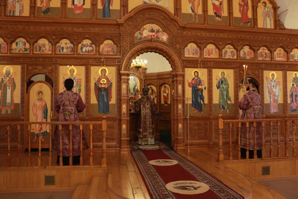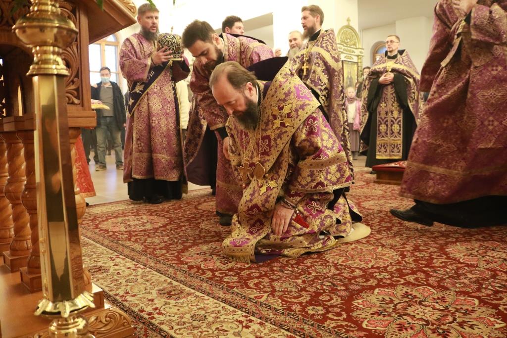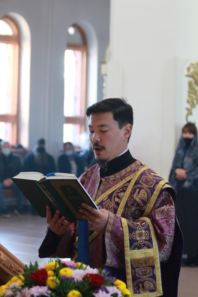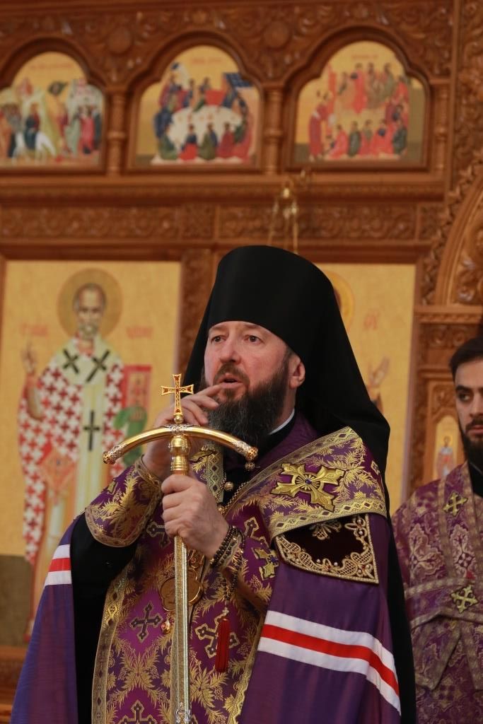 Владыке епископу сослужили ключарь собора иеромонах Никодим (Авдеев), клирики собора иерей Алексий Клепиков, иеромонах Силуан (Магилев), иерей Роман Подрезов, иерей Константин Дьяков, иеромонах Мефодий (Шевчук), секретарь епархии диакон Илия Кван и протодиакон Георгий Засыпкин.