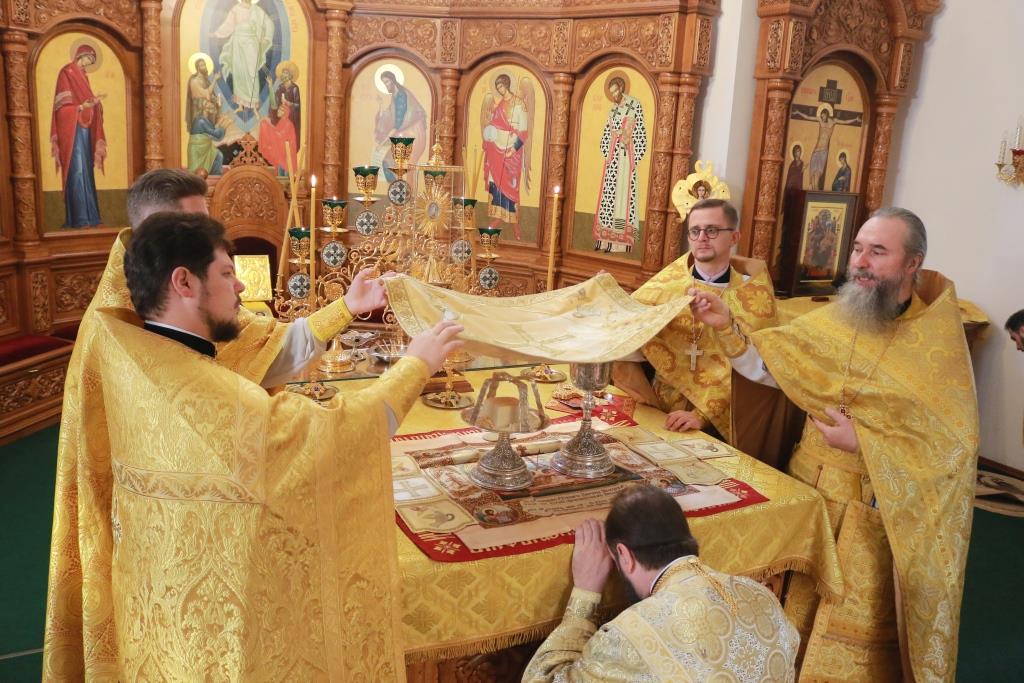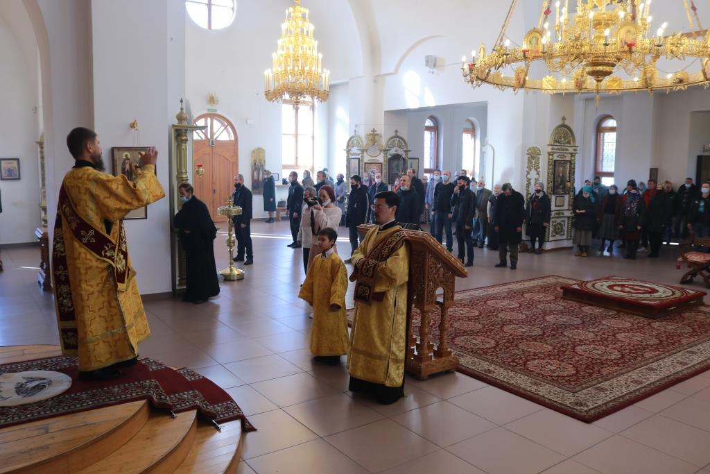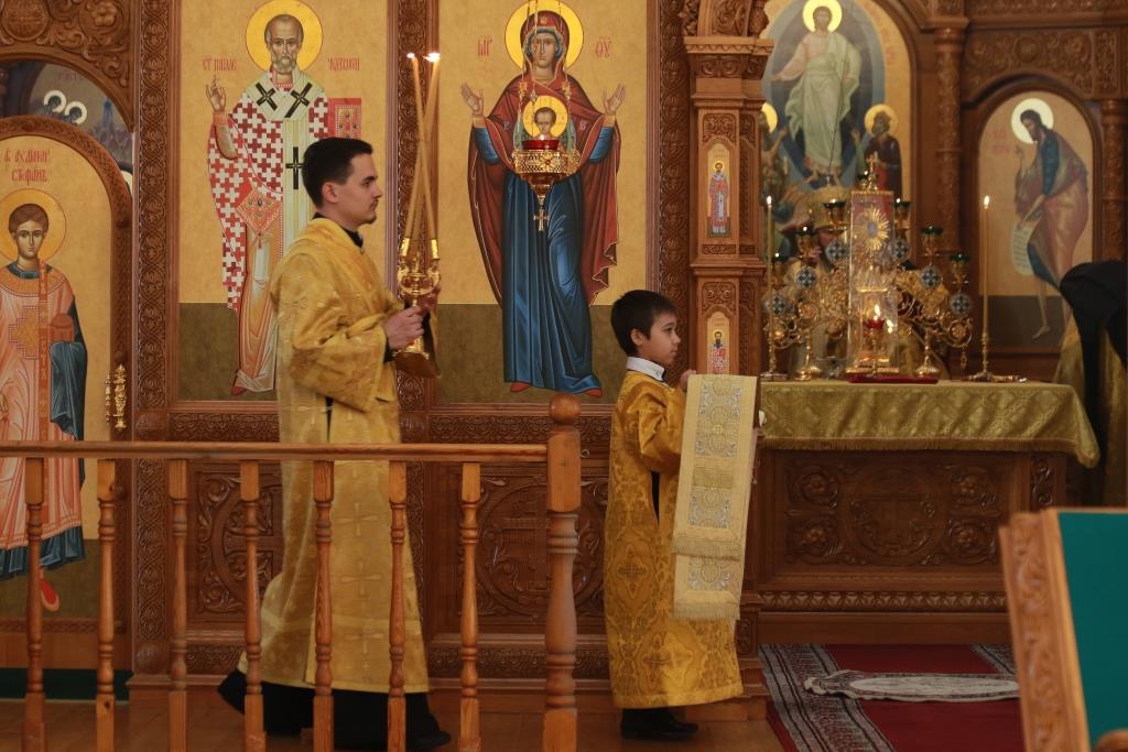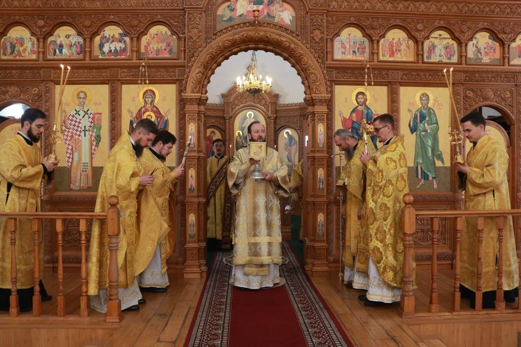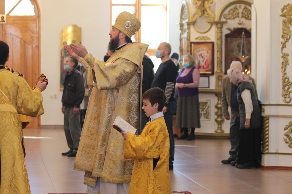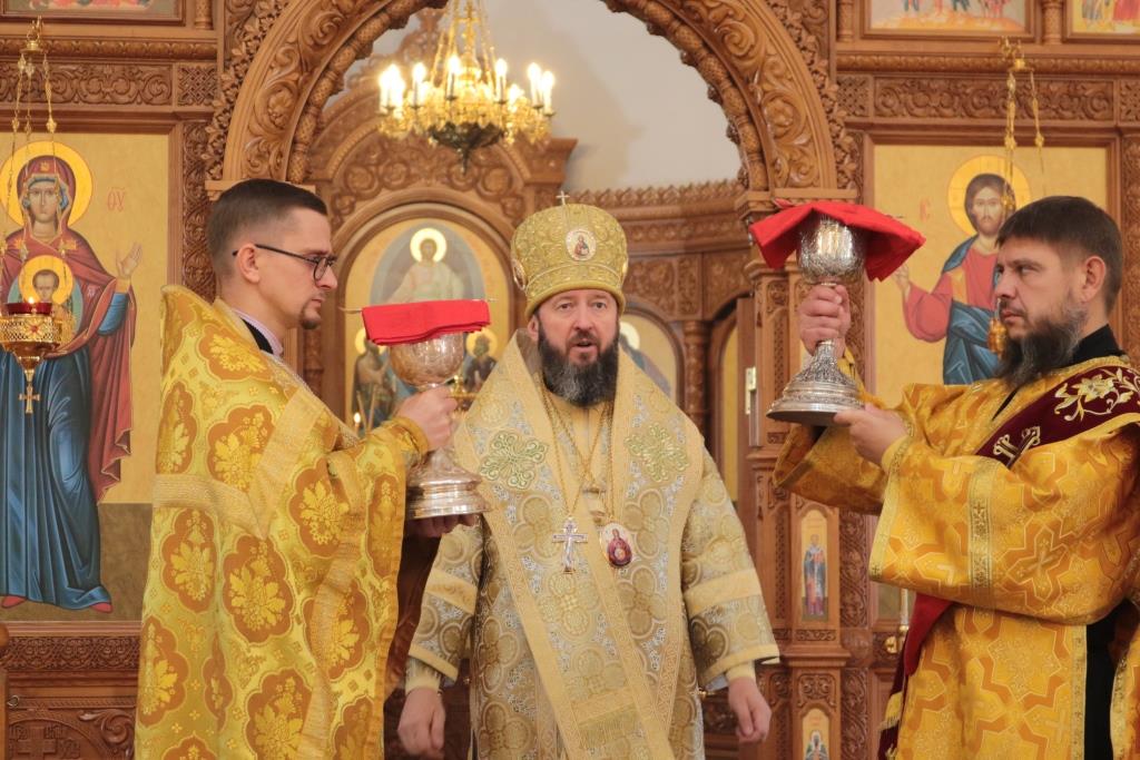 Песнопения Божественной Литургии исполнял хор под управлением регента Н. Романцовой. Перед причастием мирян проповедь произнес священник Константин Дьяков. После отпуста епископ Амфилохий обратился к собравшимся со словами проповеди.