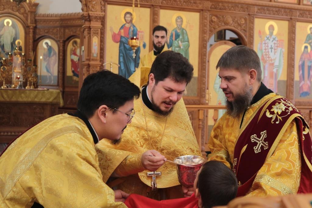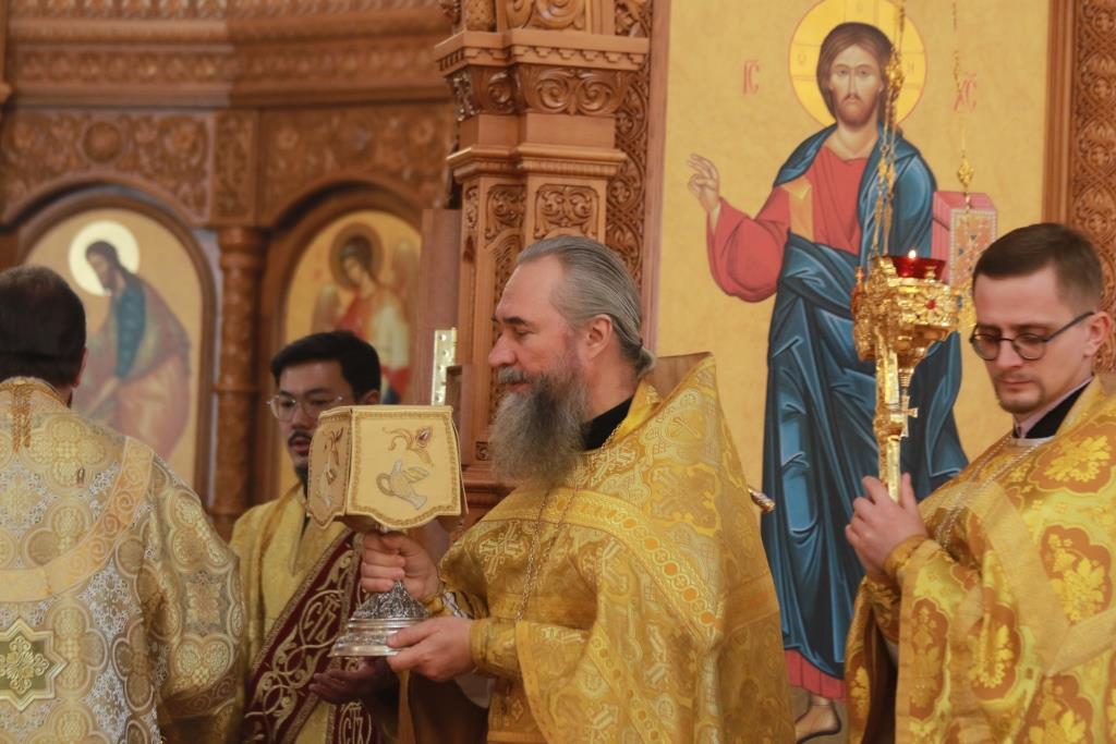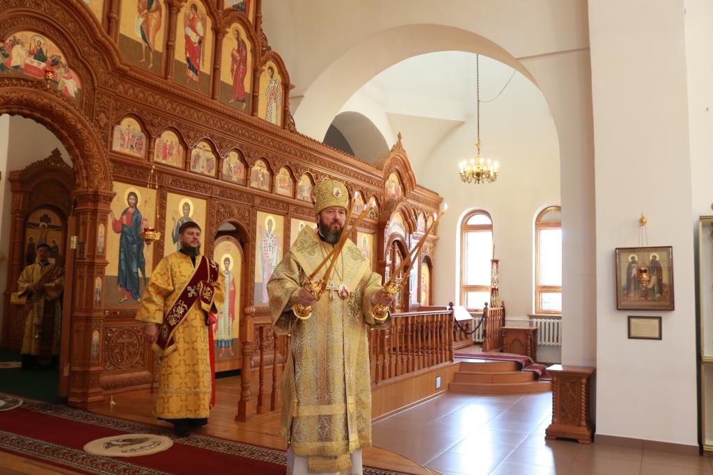 Управляющий Усть-Каменогорской и Семипалатинской епархией Преосвященнейший епископ Амфилохий совершил Божественную Литургию святителя Иоанна Златоуста в Андреевском кафедральном соборе города Усть-Каменогорска. Архипастырю сослужили: ключарь собора иеромонах Никодим (Авдеев), клирики собора иеромонах Силуан (Магилев), иерей Константин Дьяков, иеромонах Мефодий (Шевчук), секретарь епархии диакон Илия Кван, протодиакон Георгий Засыпкин.