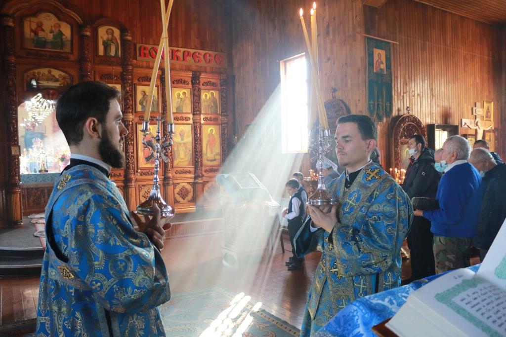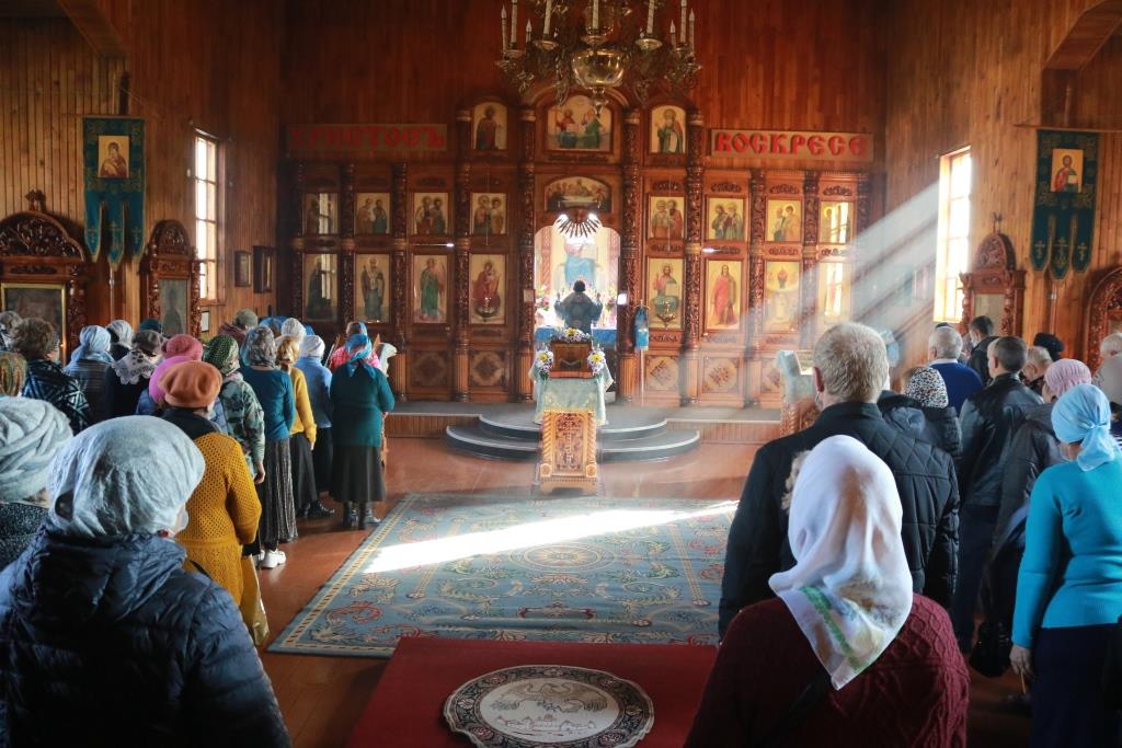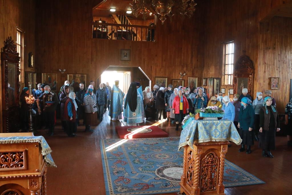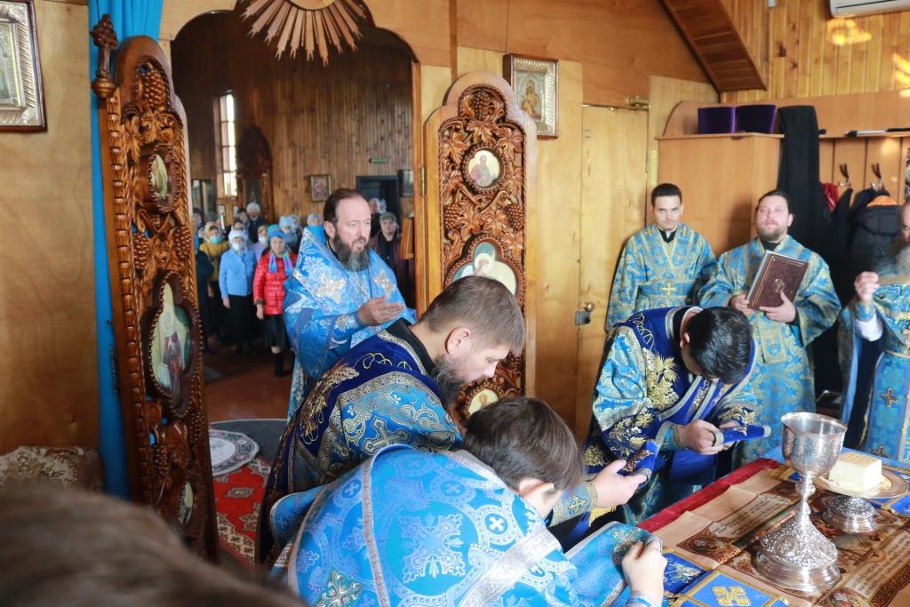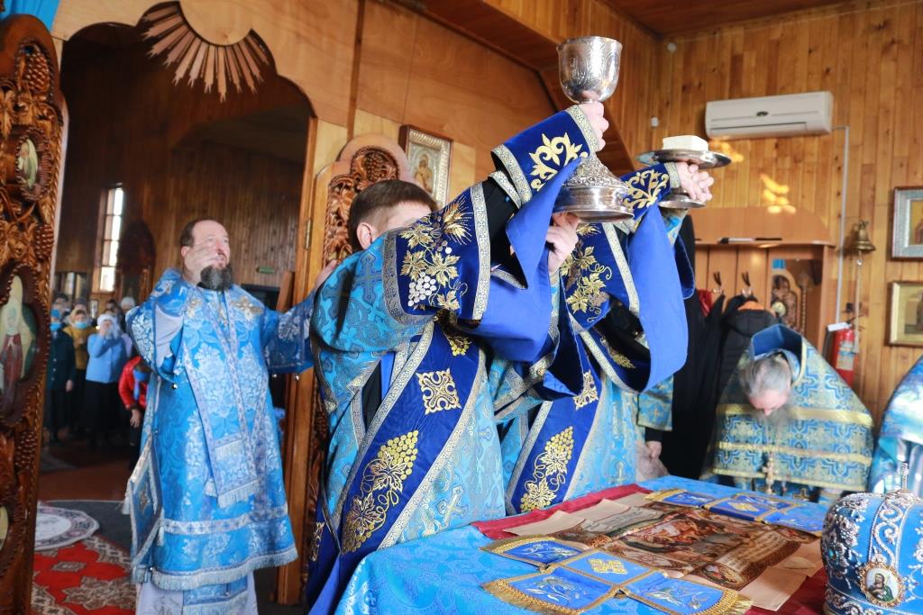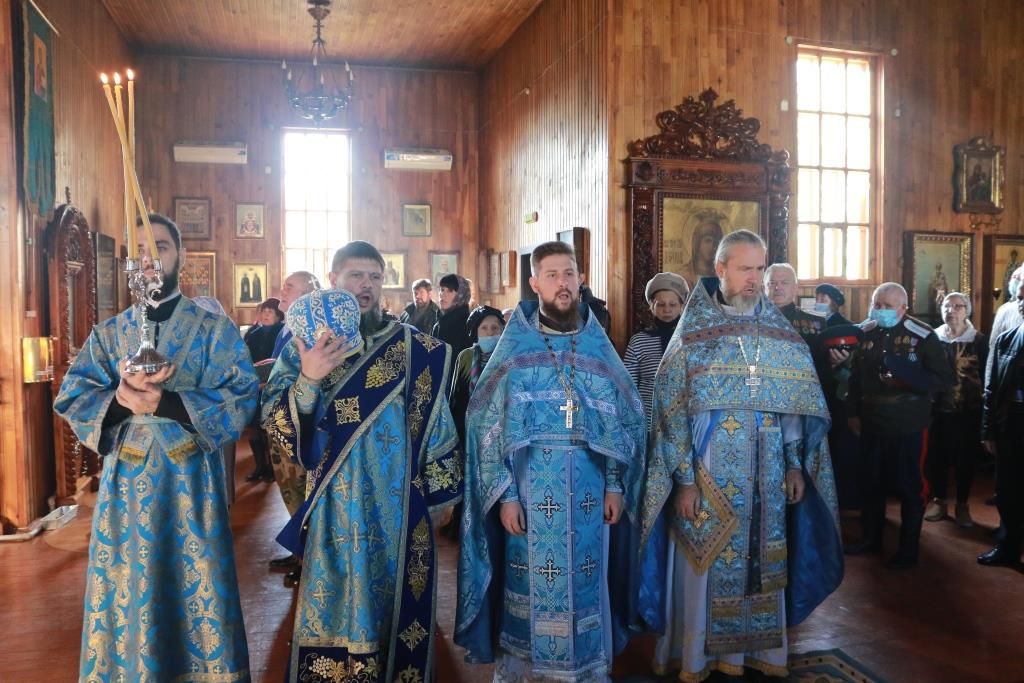 За праздничным богослужением молились прихожане и паломники Покровского храма. Песнопения Божественной Литургии и праздника Пресвятой Богородицы исполнял приходской хор под управлением регента А. Король. Перед причастием мирян проповедовал