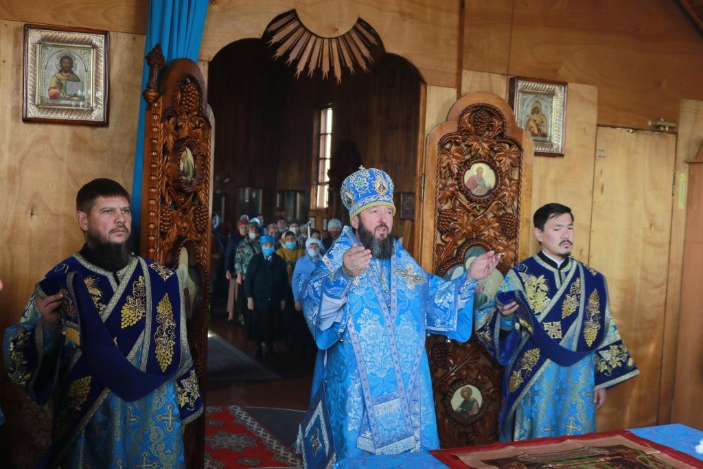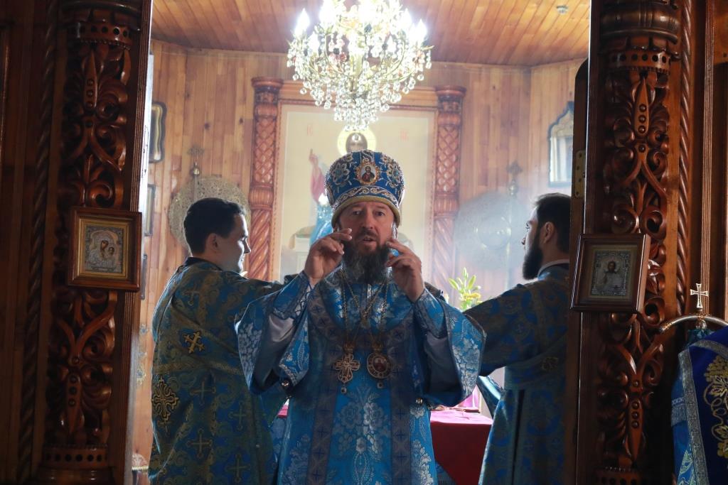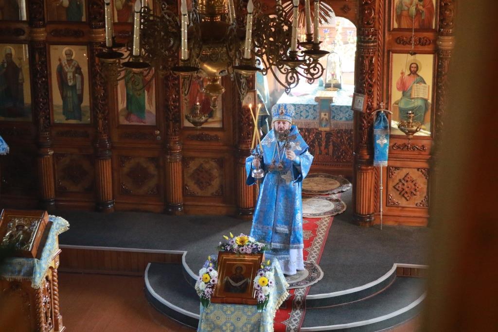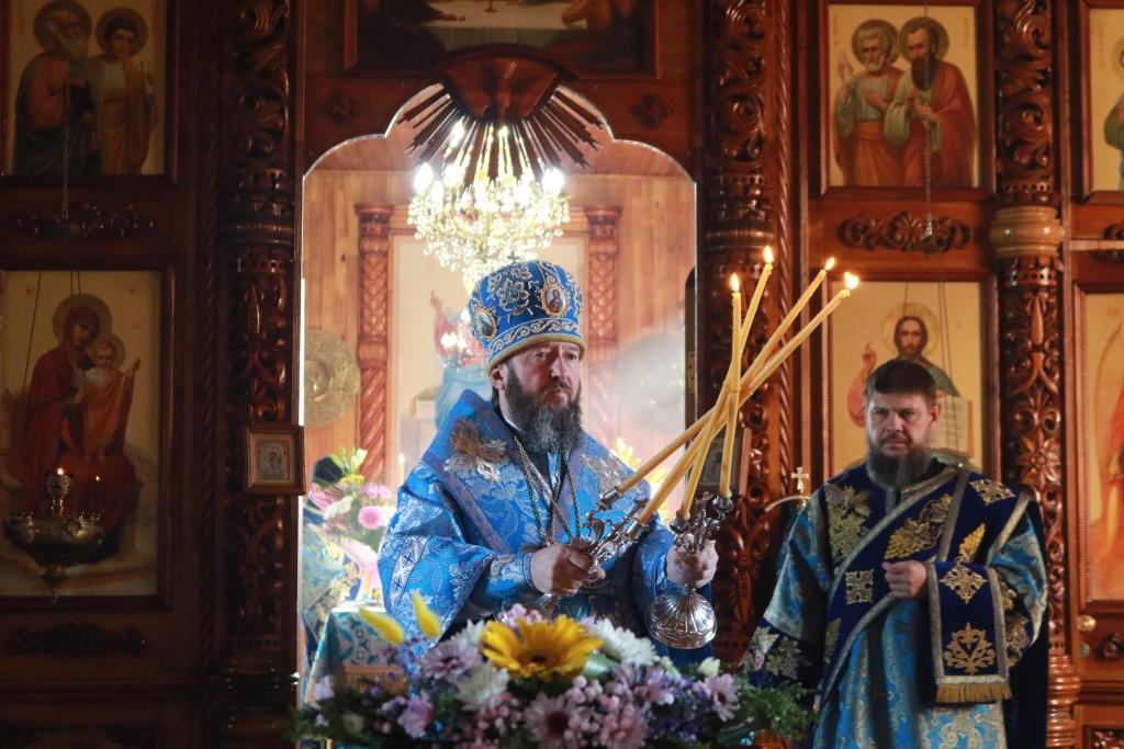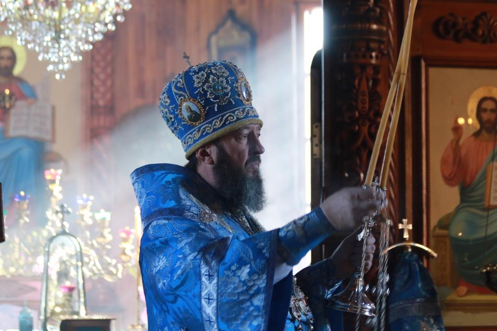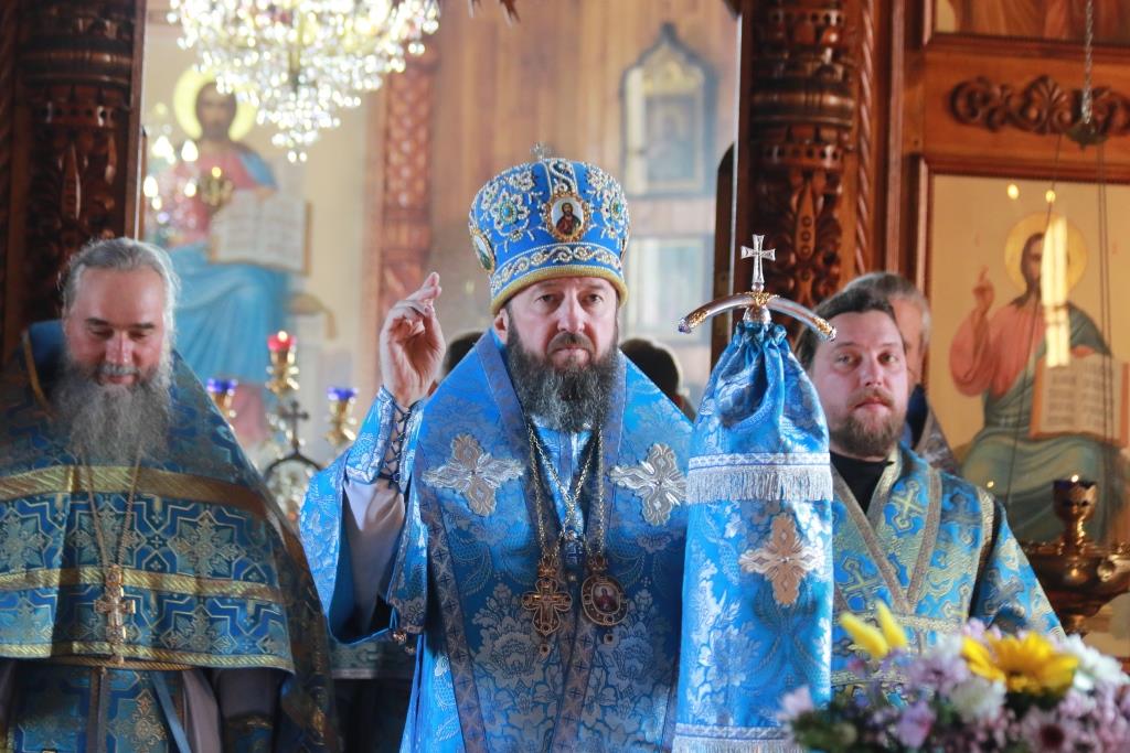 После заамвонной молитвы епископ Амфилохий с духовенством и молящимися воспели славление Пресвятой Богородице и вознесли Невесте Неневестной соборную молитву. В завершение праздничной Литургии Преосвященнейший епископ Амфилохий поздравил настоятеля, духовенство и прихожан с престольным торжеством и обратился ко всем собравшимся со словами проповеди.