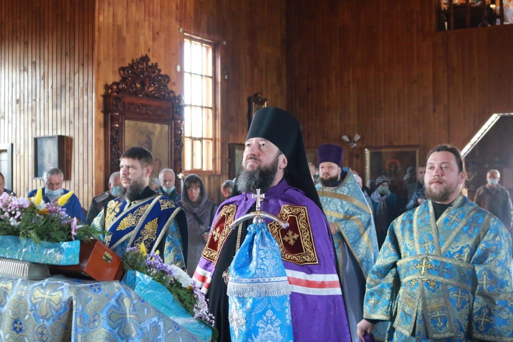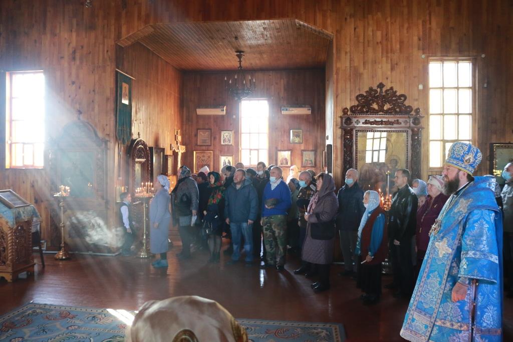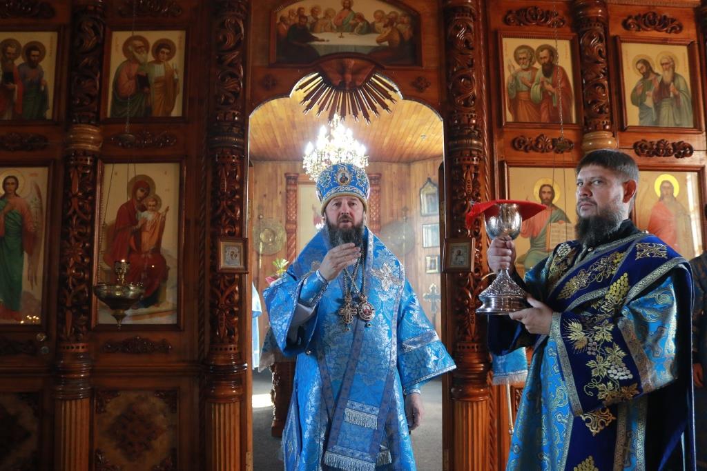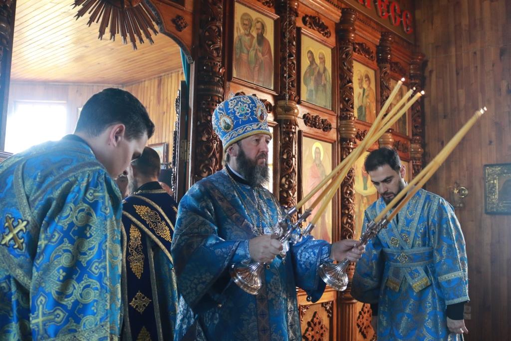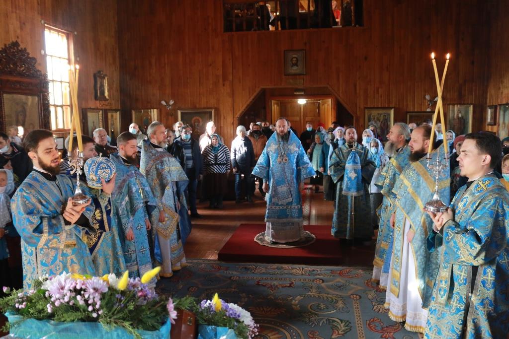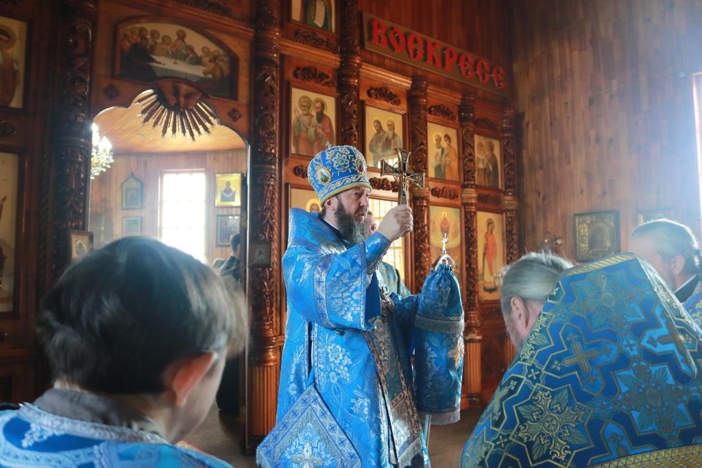 После заамвонной молитвы епископ Амфилохий с духовенством и молящимися воспели славление Пресвятой Богородице и вознесли Невесте Неневестной соборную молитву. В завершение праздничной Литургии Преосвященнейший епископ Амфилохий поздравил настоятеля, духовенство и прихожан с престольным торжеством и обратился ко всем собравшимся со словами проповеди.