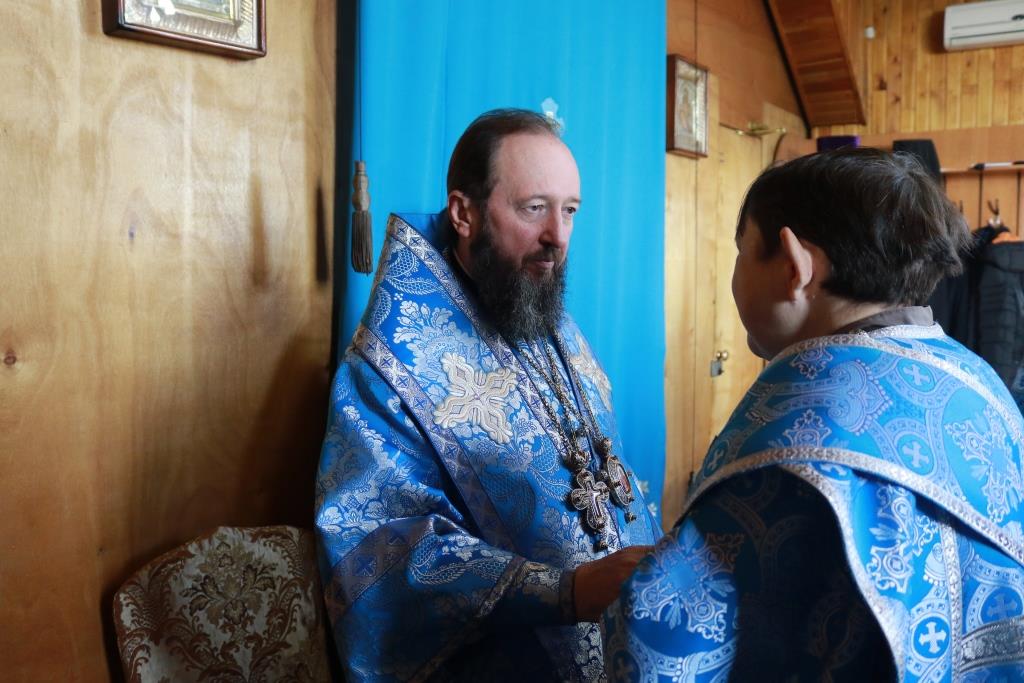 Владыке епископу сослужили: настоятель Покровской церкви, благочинный Усть-Каменогорского церковного округа иерей Алексий Анищенко, ключарь Андреевского кафедрального собора иеромонах Никодим (Авдеев), настоятель Серафимовского храма посёлка Белоусовка иерей Георгий Гуцалов, настоятель Зиновьевского храма города Усть-Каменогорска иерей Алексий Горбунов, клирик кафедрального собора иеромонах Мефодий (Шевчук), секретарь епархии диакон Илия Кван, протодиакон Георгий Засыпкин, диакон Александр Якушев.