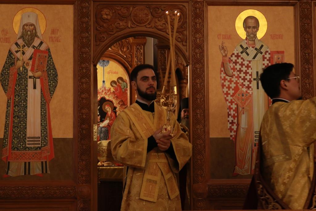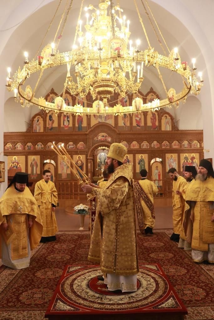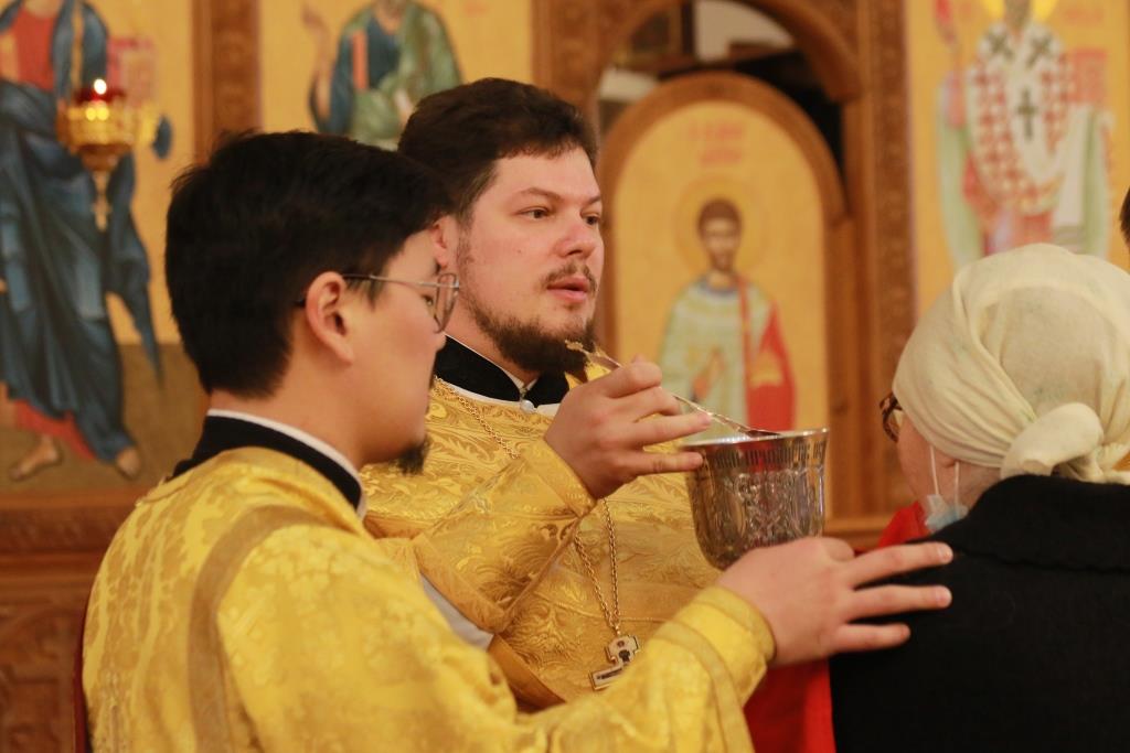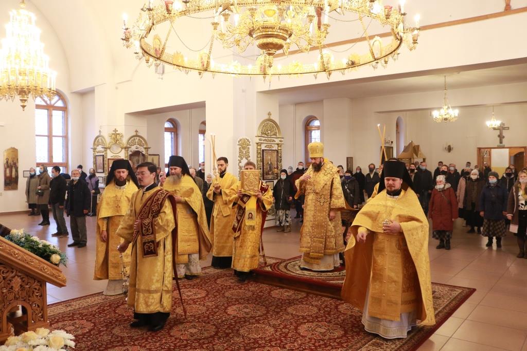Песнопения Божественной Литургии исполнял хор под управлением регента Н. Романцовой. Перед причастием мирян проповедовал иеромонах Силуан (Магилев). После окончания воскресной Божественной Литургии Владыка епископ обратился к прихожанам со словами Архипастырской проповеди.