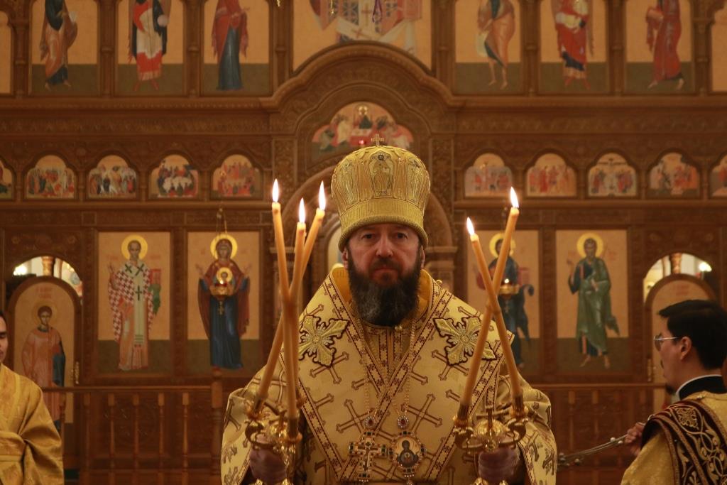 Преосвященнейший епископ Усть-Каменогорский и Семипалатинский епископ Амфилохий возглавил служение Божественной Литургии святителя Иоанна Златоуста в кафедральном соборе святого апостола Андрея Первозванного столицы Восточного Казахстана. Его Преосвященству сослужили: ключарь собора иеромонах Никодим (Авдеев), клирики собора иеромонах Силуан (Магилев), иеромонах Мефодий (Шевчук), секретарь епархии диакон Илия Кван, протодиакон Георгий Засыпкин.
