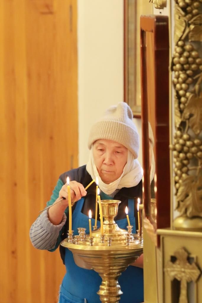 За богослужением молились насельники Свято-Троицкого мужского монастыря города Усть-Каменогорска, сотрудники епархиального управления, прихожане кафедрального собора и прихожане кафедрального собора и воспитанники Центральной воскресной школы.