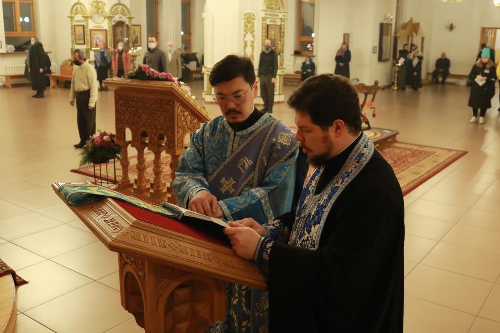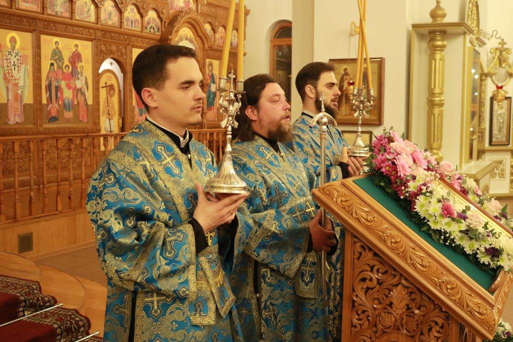 Песнопения Всенощного бдения и праздника Введения во храм Пресвятой Богородицы исполнял хор Андреевского собора под управлением регента Н. Романцовой. За богослужением совершалась лития – сугубое моление с освящением хлеба, пшеницы, вина и елея.
