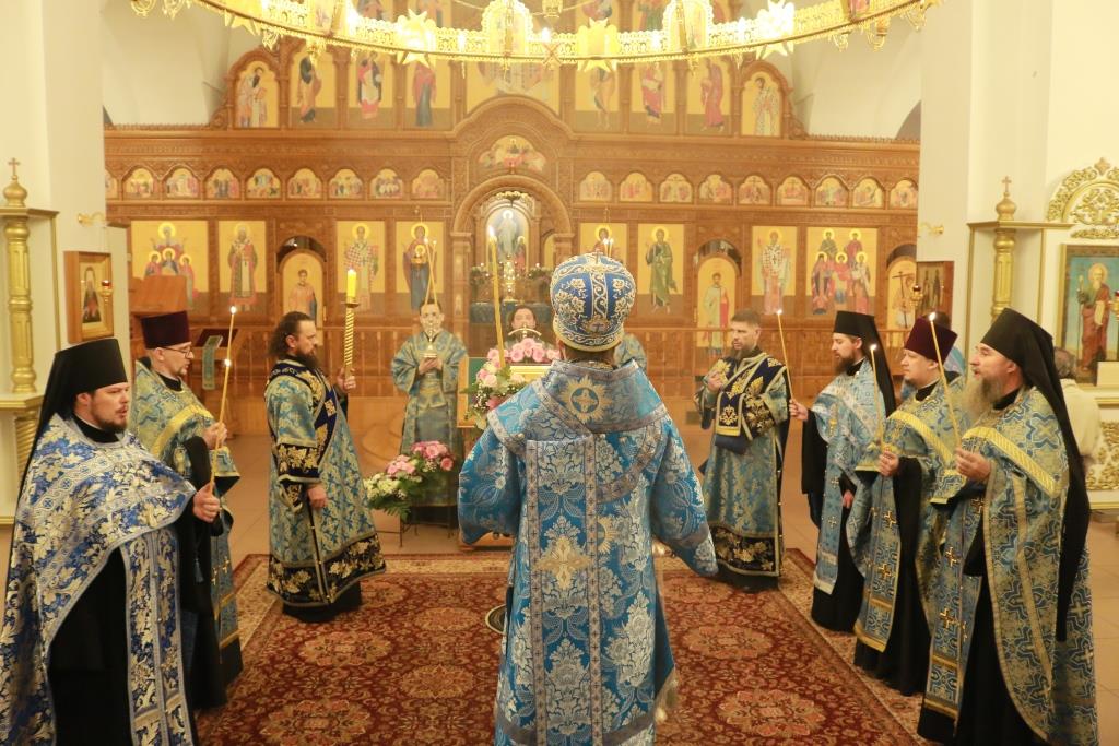 Управляющий Усть-Каменогорской и Семипалатинской епархией Преосвященнейший епископ Амфилохий возглавил служение Всенощного бдения в главном храме Рудного Алтая – кафедральном соборе во имя святого апостола Андрея Первозванного города Усть-Каменогорска. Владыке Амфилохию сослужили: ключарь кафедрального собора иеромонах Никодим (Авдеев), клирики собора иеромонах Силуан (Магилев), иерей Роман Подрезов, иерей Константин Дьяков, иеромонах Мефодий (Шевчук), секретарь епархии диакон Илия Кван, протодиакон Георгий Засыпкин, протодиакон Андрей Дудник.