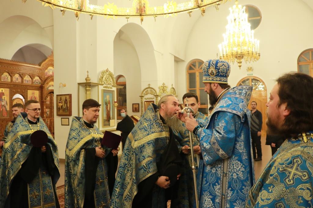 После чтения праздничного евангельского зачала Преосвященнейший Архипастырь помазал духовенство и народ Божий освященным елеем. В день праздника Введения во храм Пресвятой Богородицы, 4 декабря 2021 года, епископ Амфилохий совершит Божественную Литургию в Андреевском кафедральном соборе. Начало богослужения в 8:30.