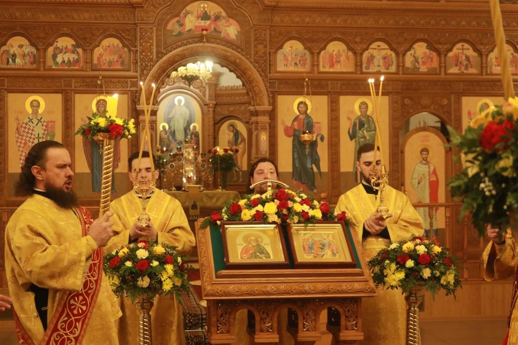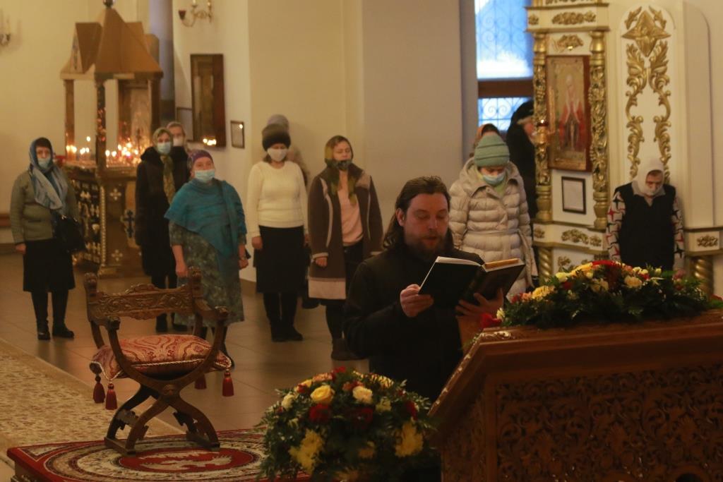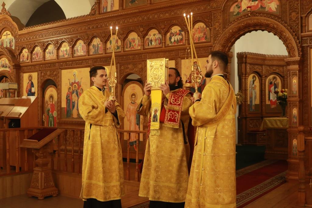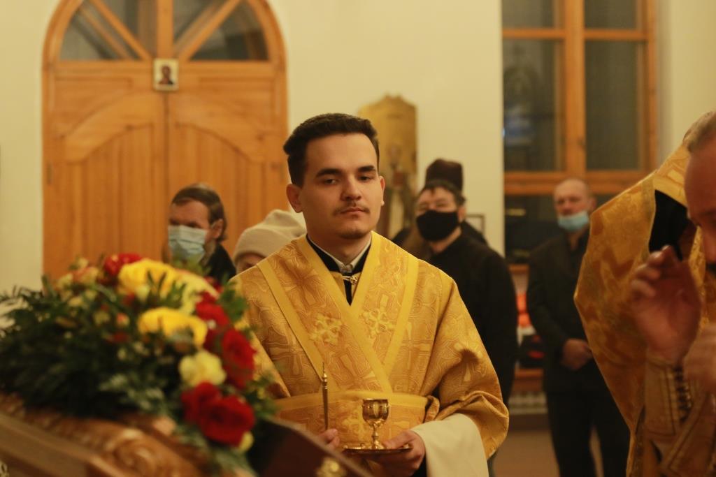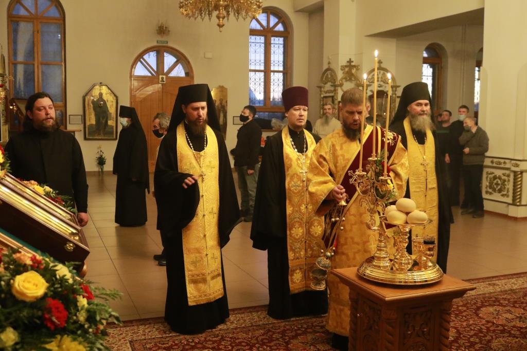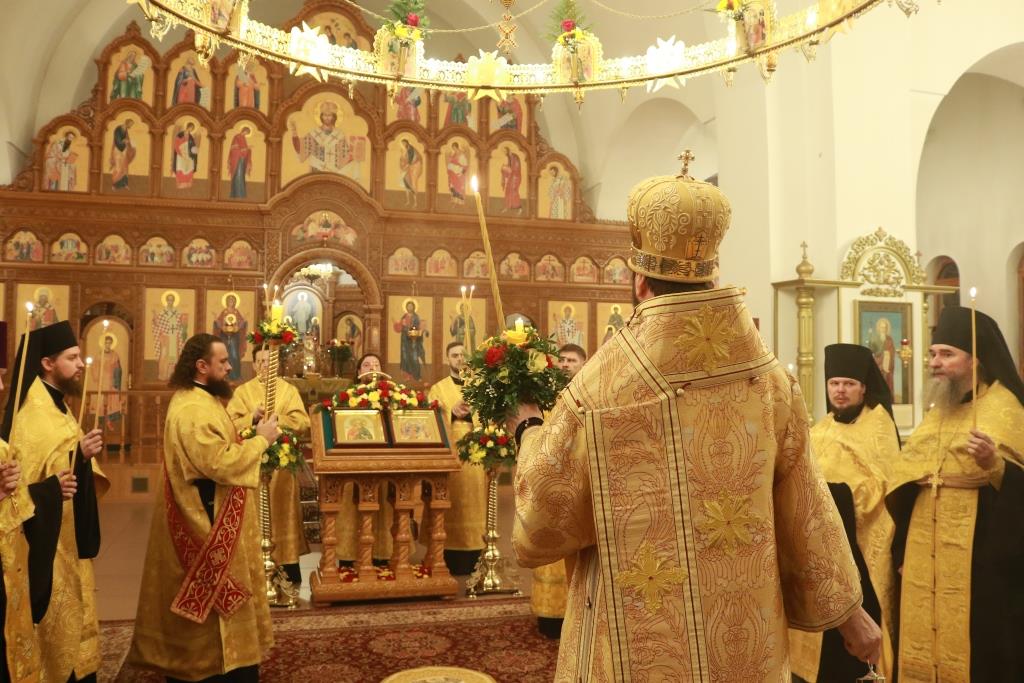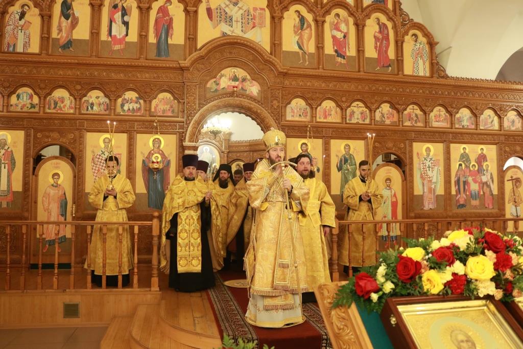 Песнопения престольного праздника исполнял хор кафедрального собора (регент – Н. Романцова). За вечерним богослужением совершалась лития – сугубое моление с освящением пшеницы, вина и елея. В храме молились насельники Свято-Троицкого мужского монастыря города Усть-Каменогорска, сотрудники епархиального управления и прихожане кафедрального собора.