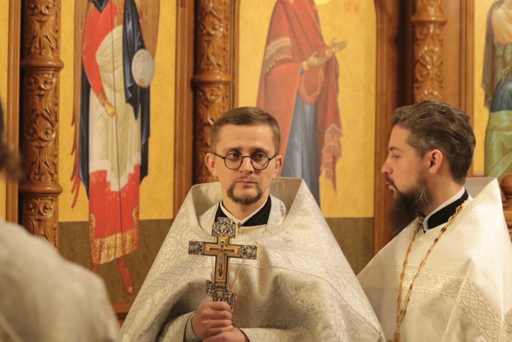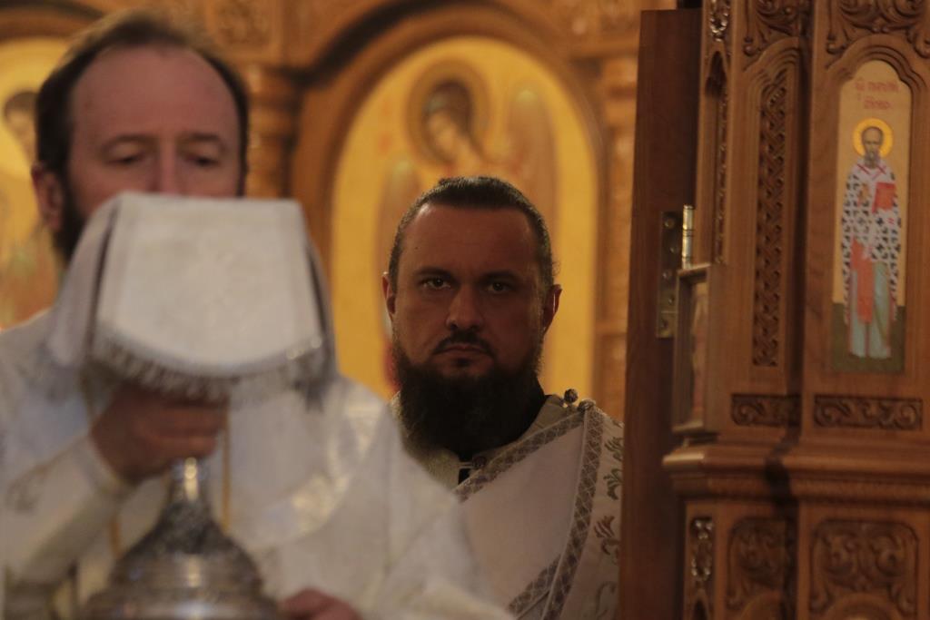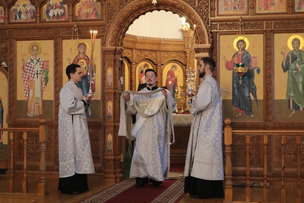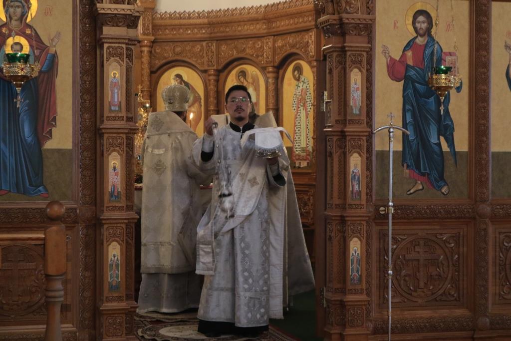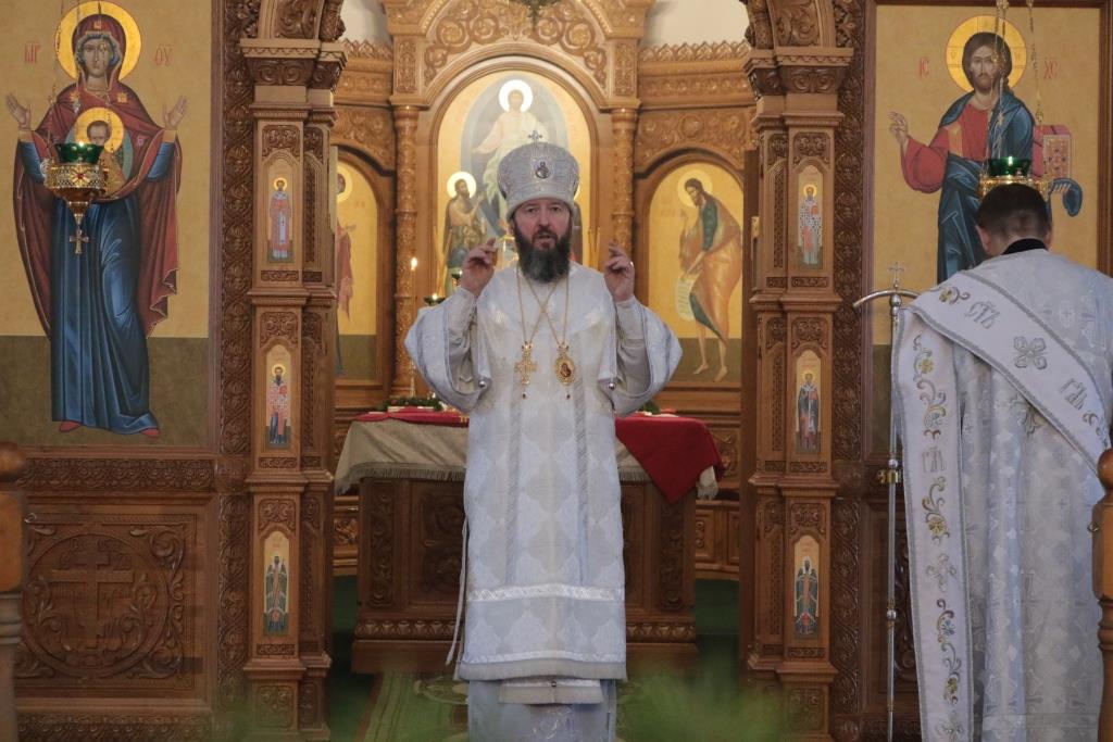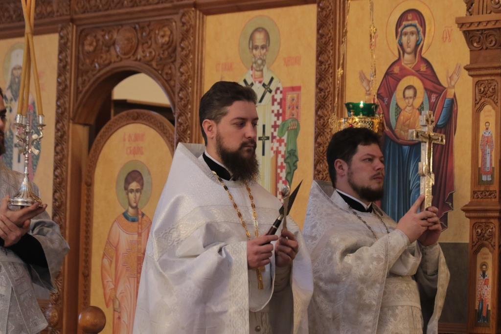 Его Преосвященству сослужили: ключарь Андреевского собора иеромонах Никодим (Авдеев), клирики собора иеромонах Силуан (Магилев), иерей Роман Подрезов, иерей Константин Дьяков, иеромонах Мефодий (Шевчук), секретарь епархии диакон Илия Кван, протодиакон Георгий Засыпкин и протодиакон Андрей Дудник.