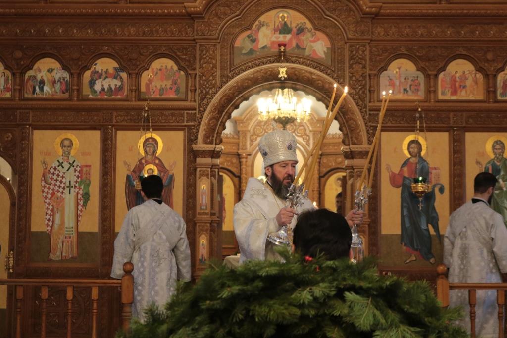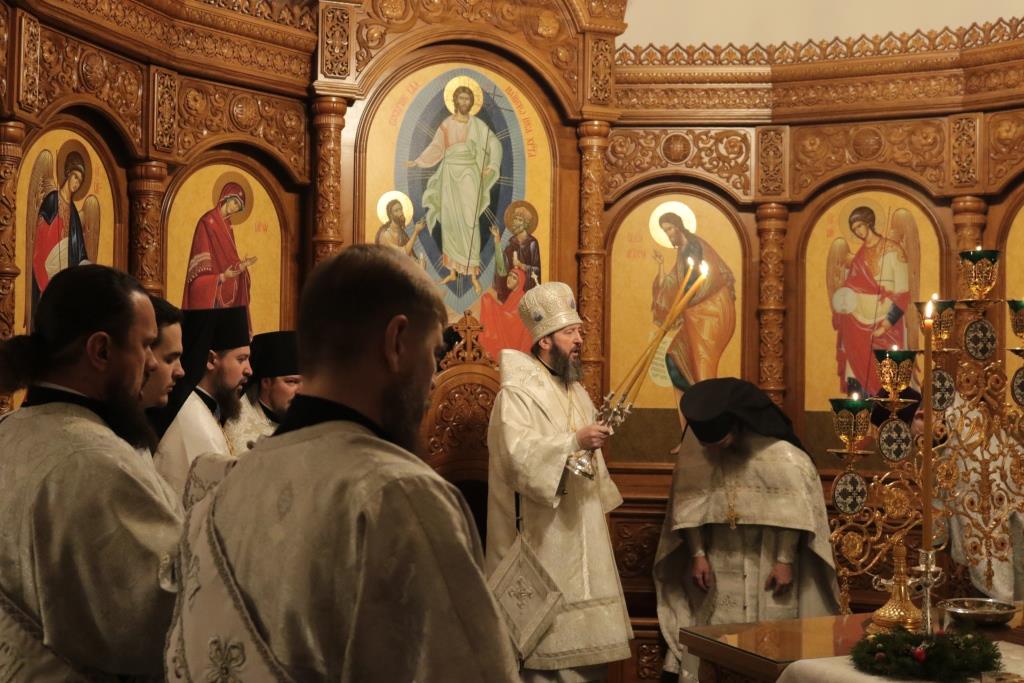 За богослужением читались отрывки из Священного Писания Ветхого и Нового Заветов, в частности, 8 паремий, повествующие о пророчествах, посвященных рождению Мессии – Сына Божия и Спасителя мира.
