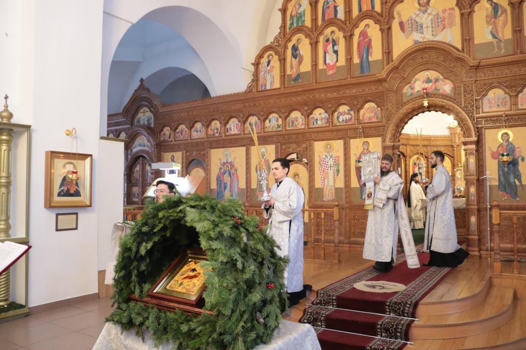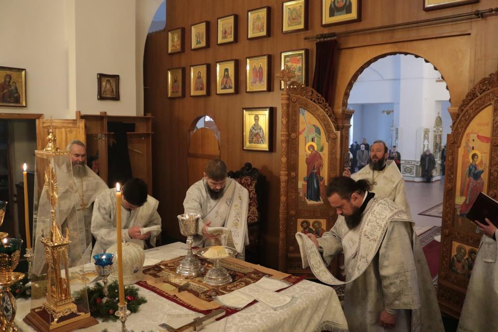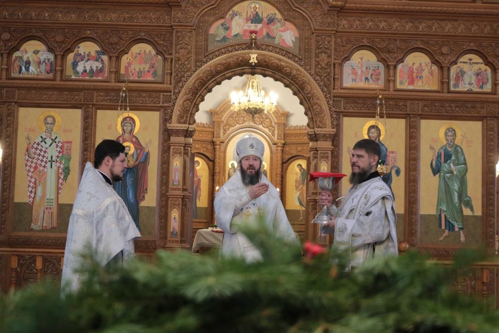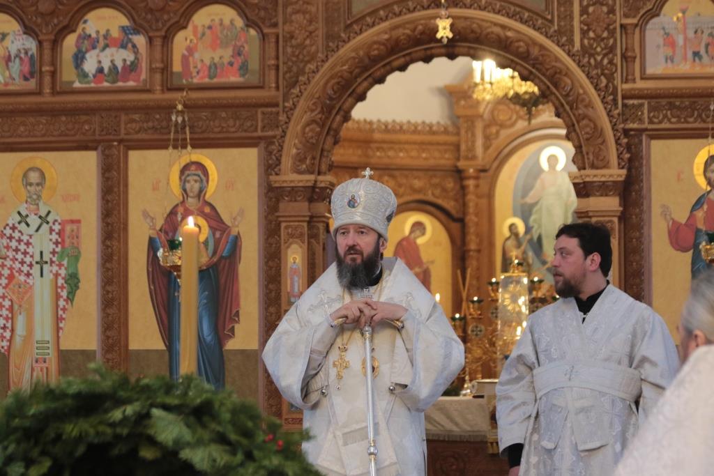 Перед причастием мирян проповедовал иеромонах Силуан (Магилев). После отпуста Божественной Литургии духовенство и молящиеся воспели у праздничной иконы тропарь и кондак Рождества Христова.